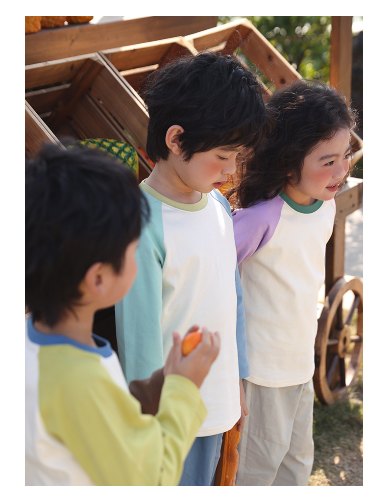 BBQB 어린이 긴팔 티셔츠 봄 뉴 보이즈 크루 넥 탑베이스 셔츠 여성용 보물 대비 순수 코튼 라글란 소매