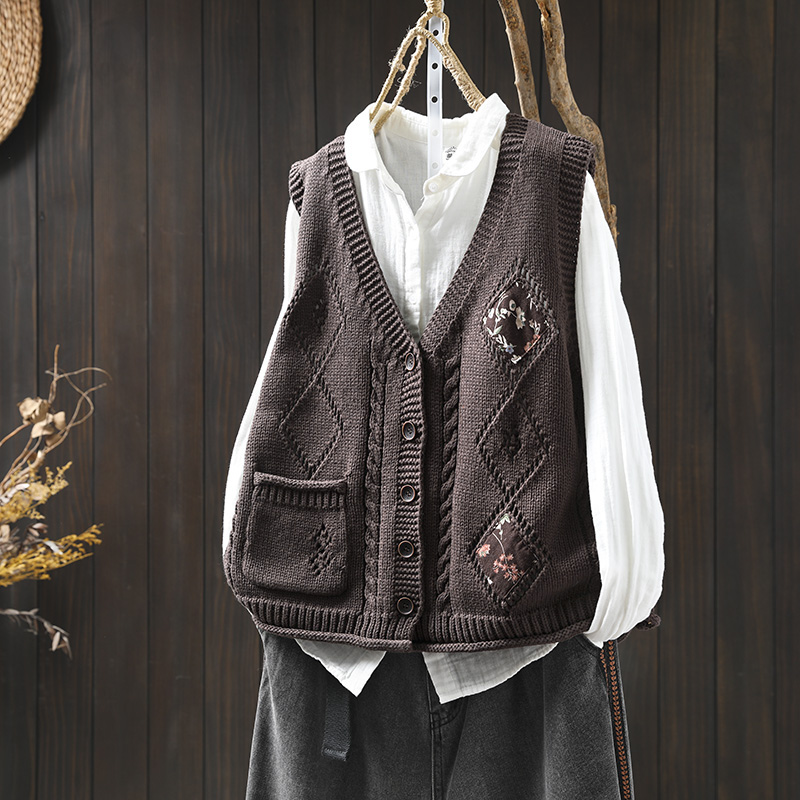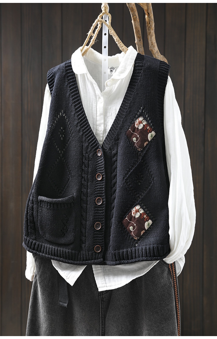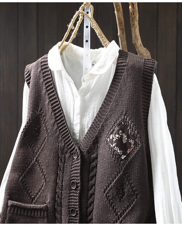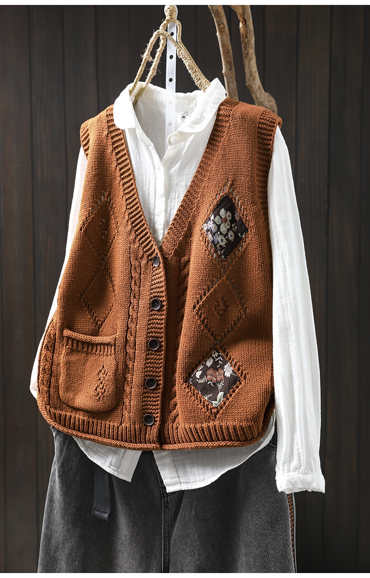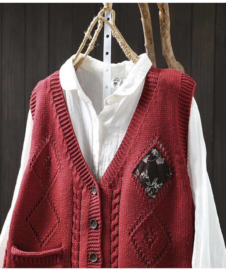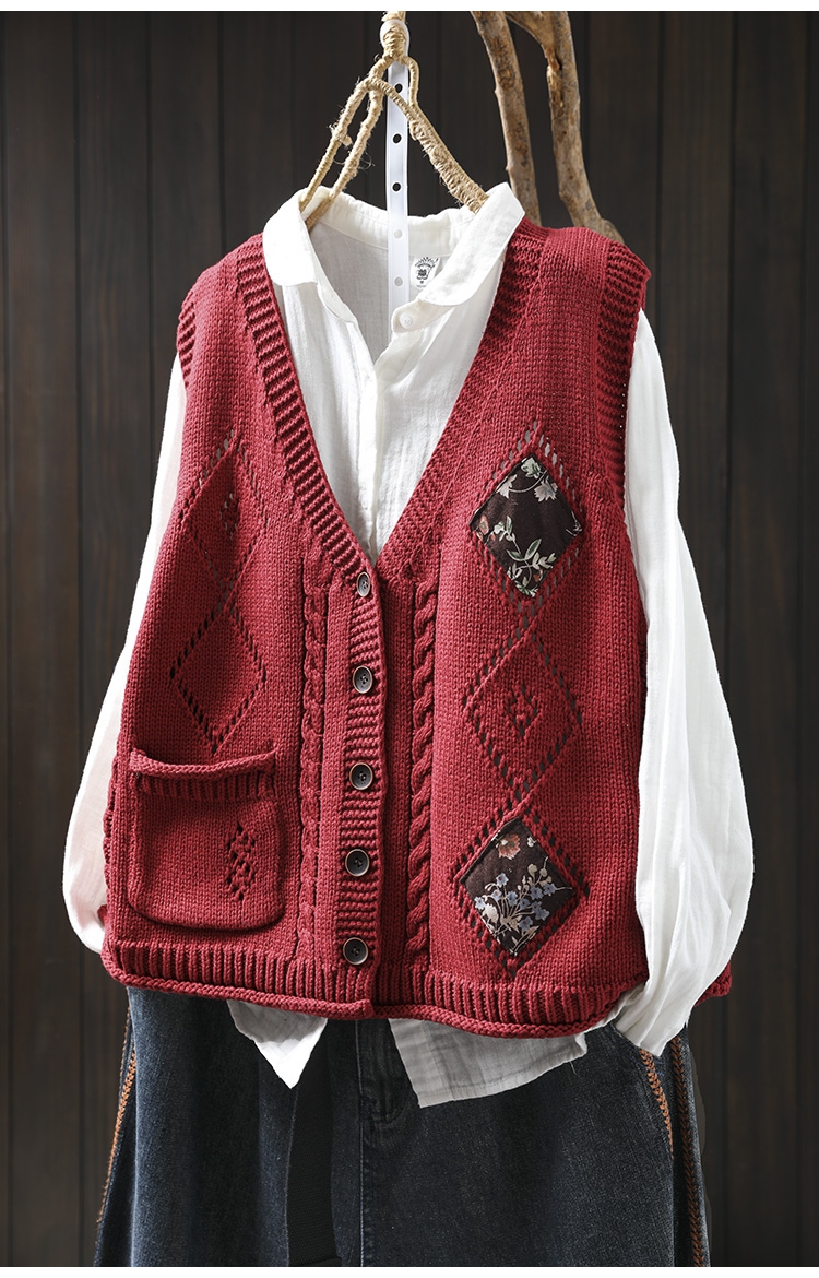 패딩 드 마름모 빈 V-넥 코튼 니트 조끼 카디건 여성용 루즈 2025 스프링 빈티지 캐주얼 스택 웨이스트 코트