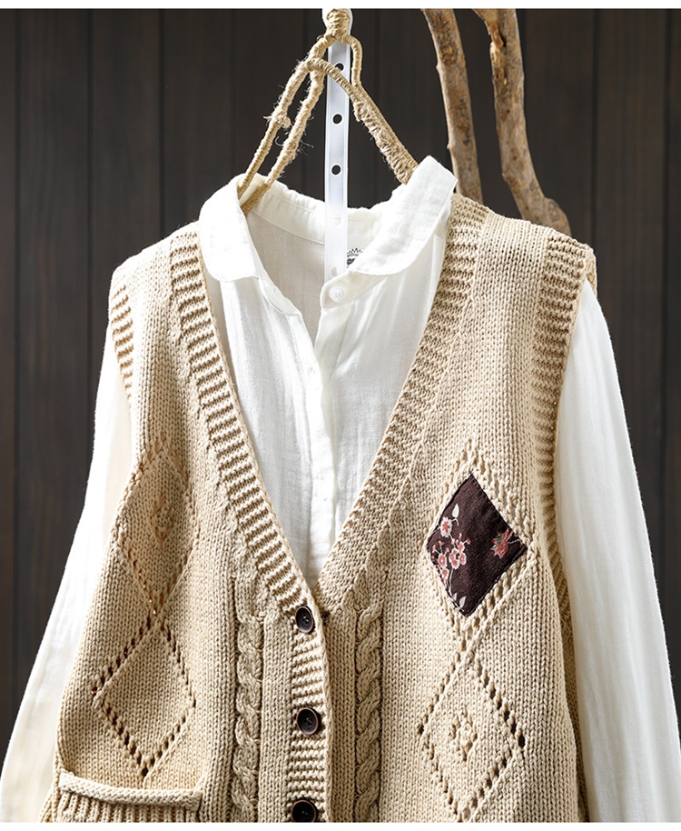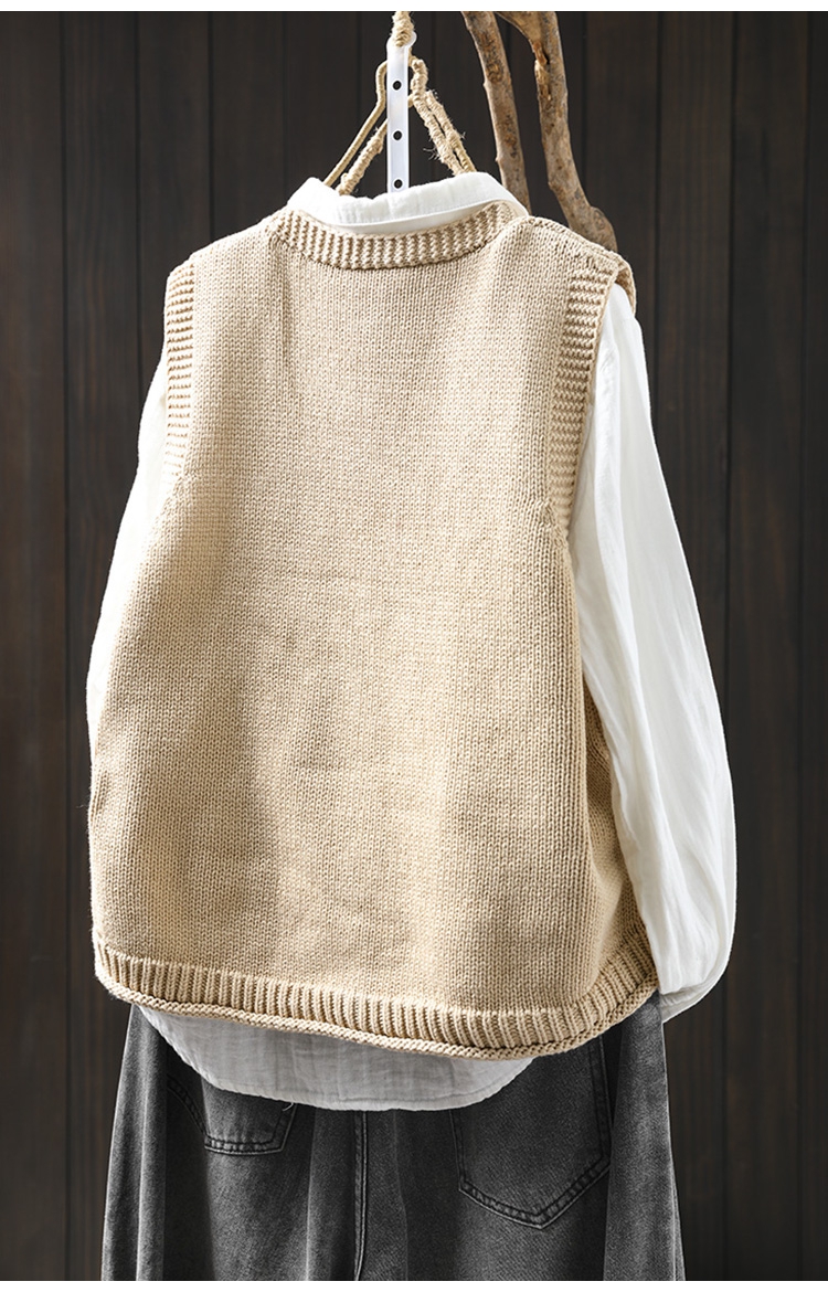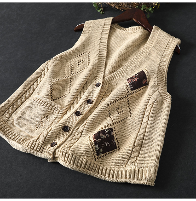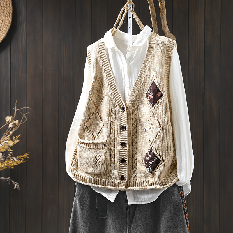 패딩 드 마름모 빈 V-넥 코튼 니트 조끼 카디건 여성용 루즈 2025 스프링 빈티지 캐주얼 스택 웨이스트 코트스토어 가기