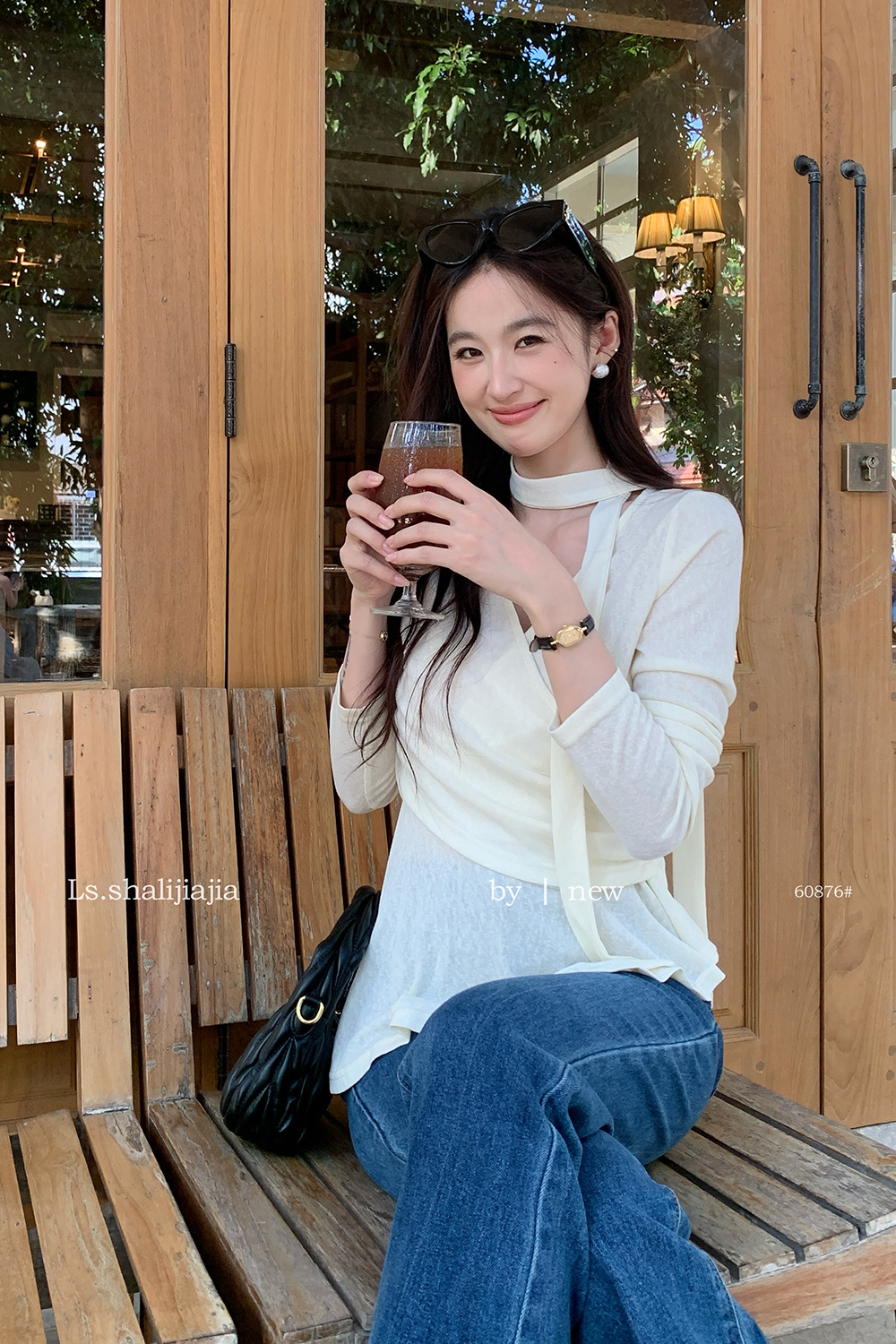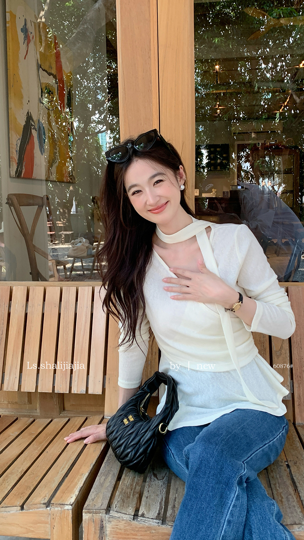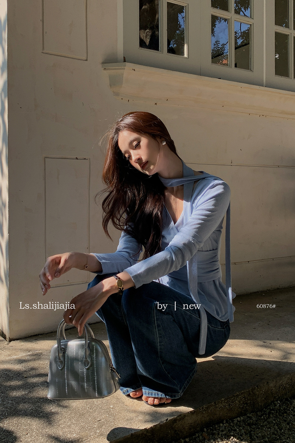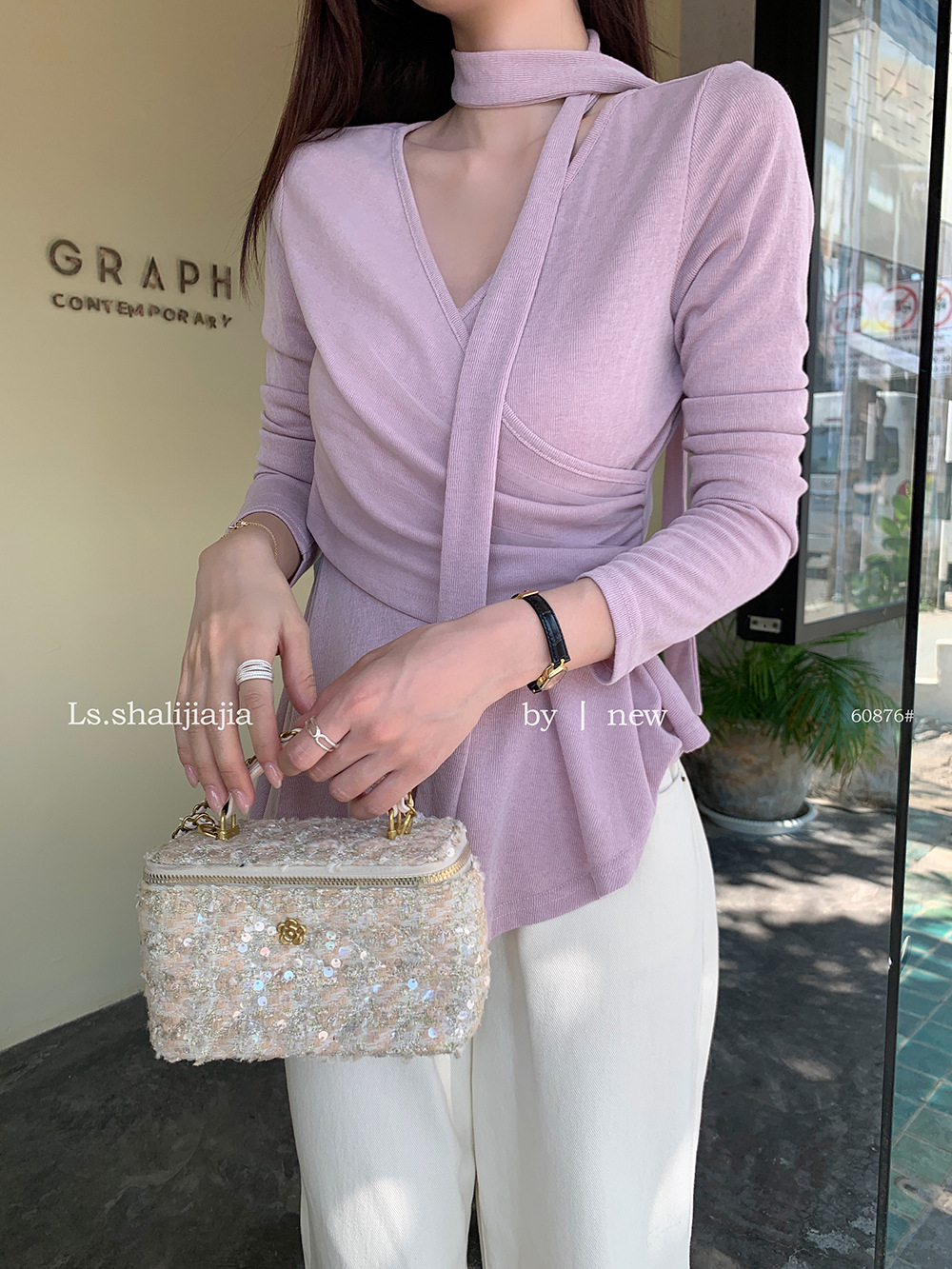 거대한 좋은 니트 작은 셔츠의 LS 버전 13 라인 25 년 봄 새로운 V 넥 고급 조커 여성 상위 60876