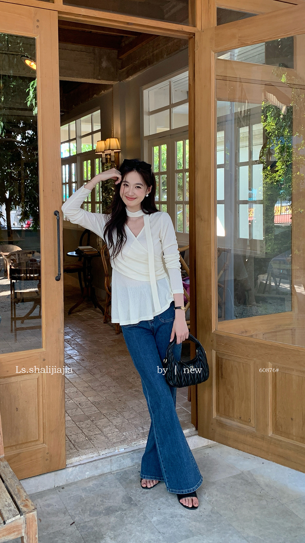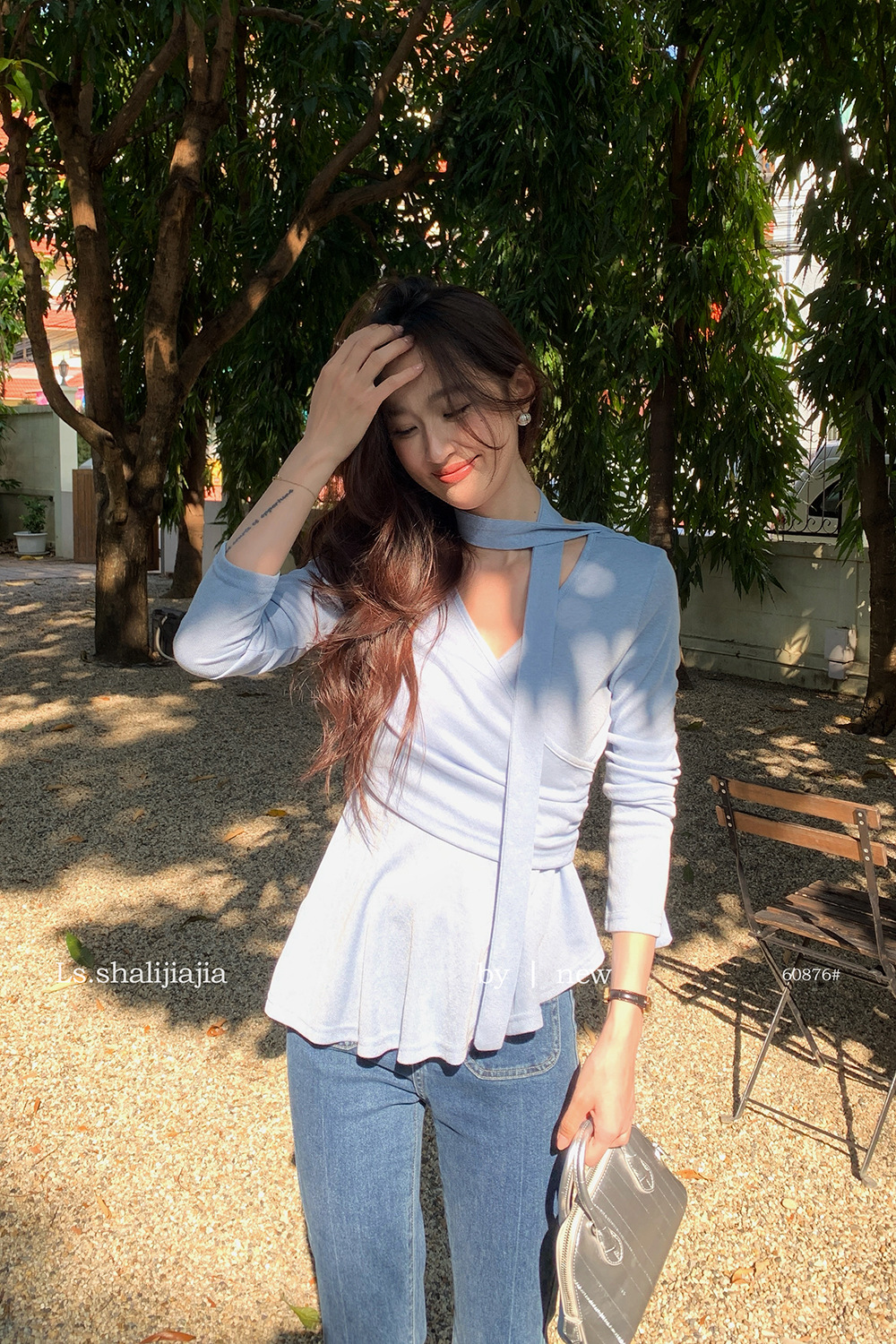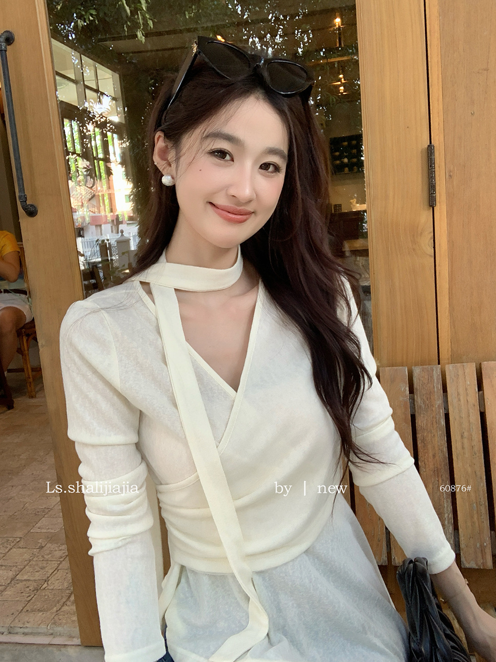 거대한 좋은 니트 작은 셔츠의 LS 버전 13 라인 25 년 봄 새로운 V 넥 고급 조커 여성 상위 60876
