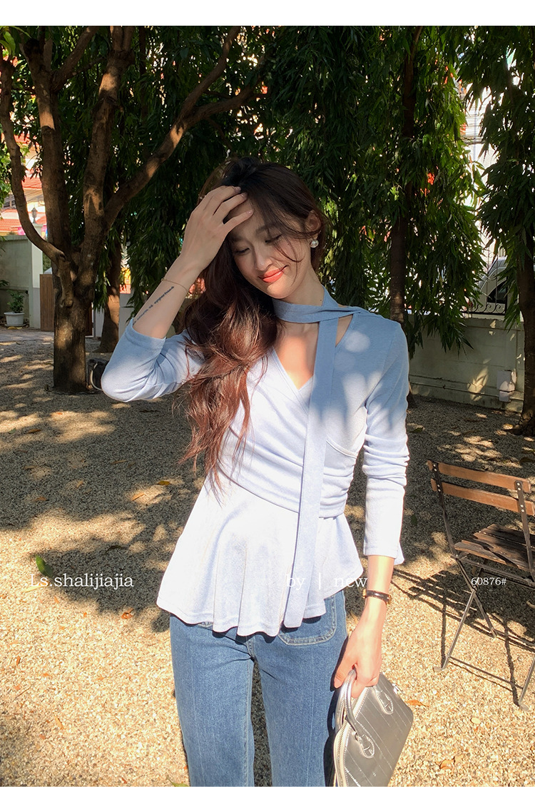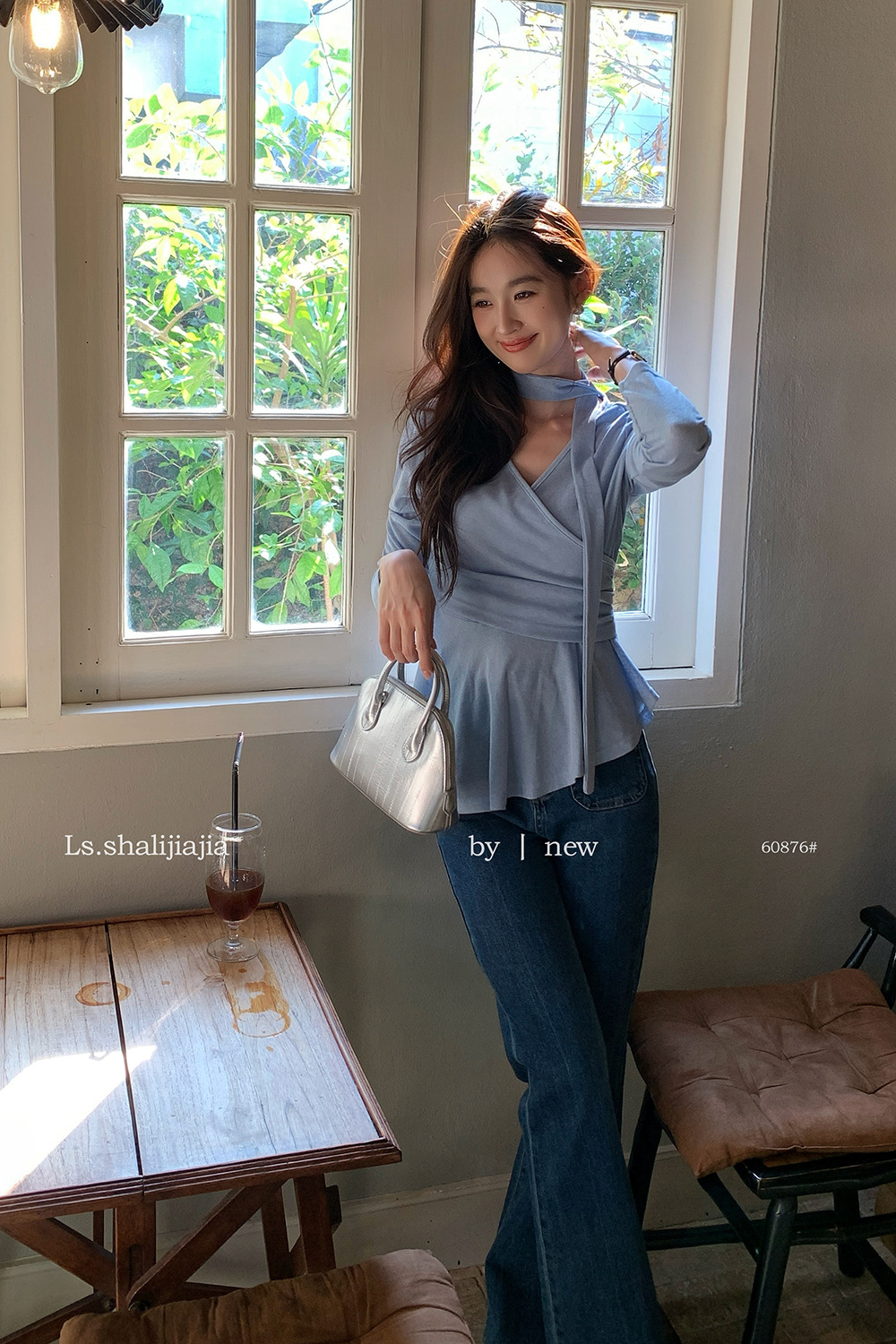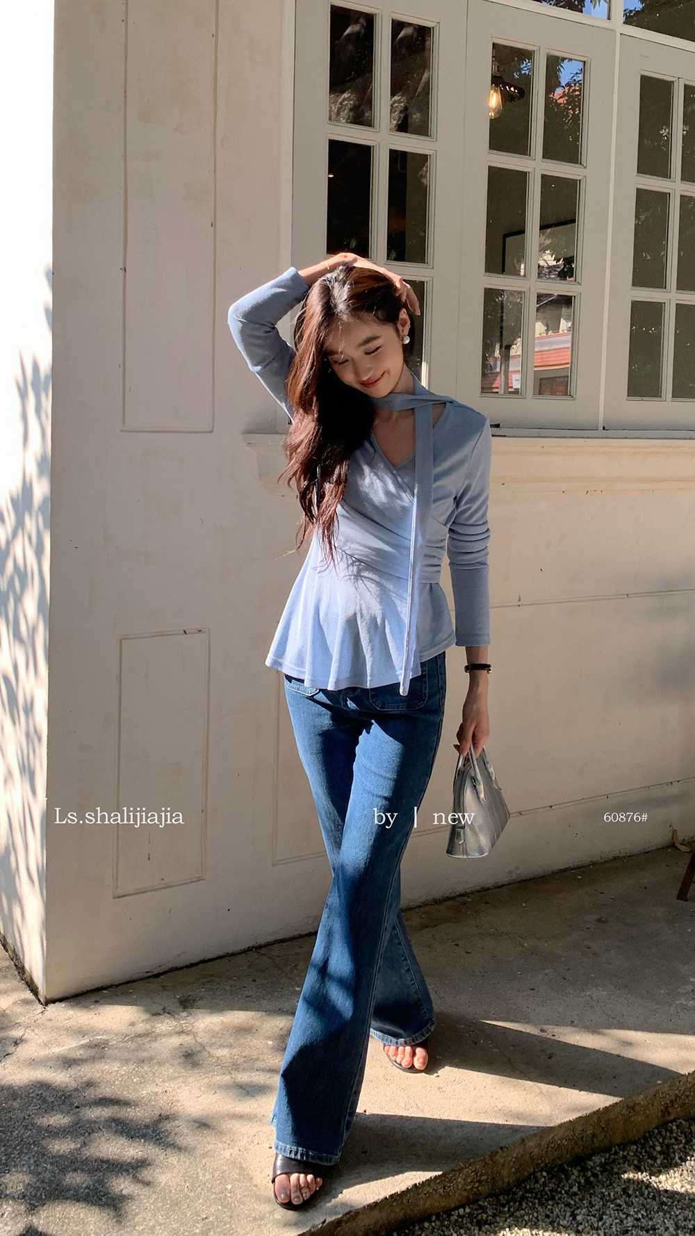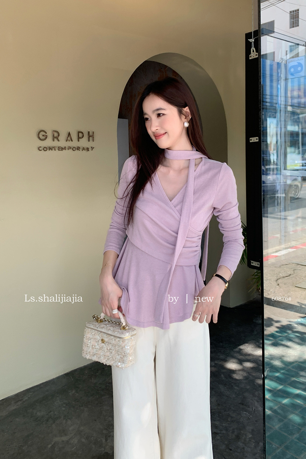 거대한 좋은 니트 작은 셔츠의 LS 버전 13 라인 25 년 봄 새로운 V 넥 고급 조커 여성 상위 60876