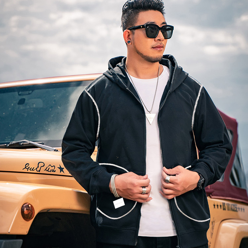 봄과 가을 새로운 오버 사이즈 남성용 팻 가이 후드 카디건 스웨터 플러스 팻 플러스 트렌디 한 지방 캐주얼 재킷 11XL