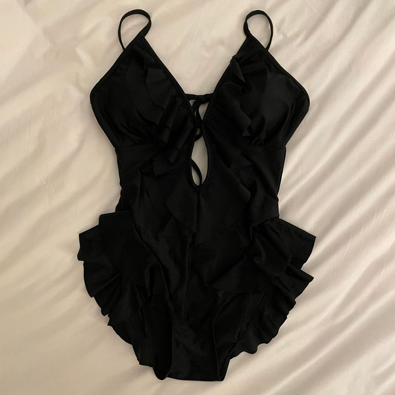 새로운 프랑스 스타일 하이 엔드 퓨어 욕망 스타일 섹시한 딥 V 솔리드 컬러 높은 허리 슬리밍 아름다운 뒤 여성용 수영복