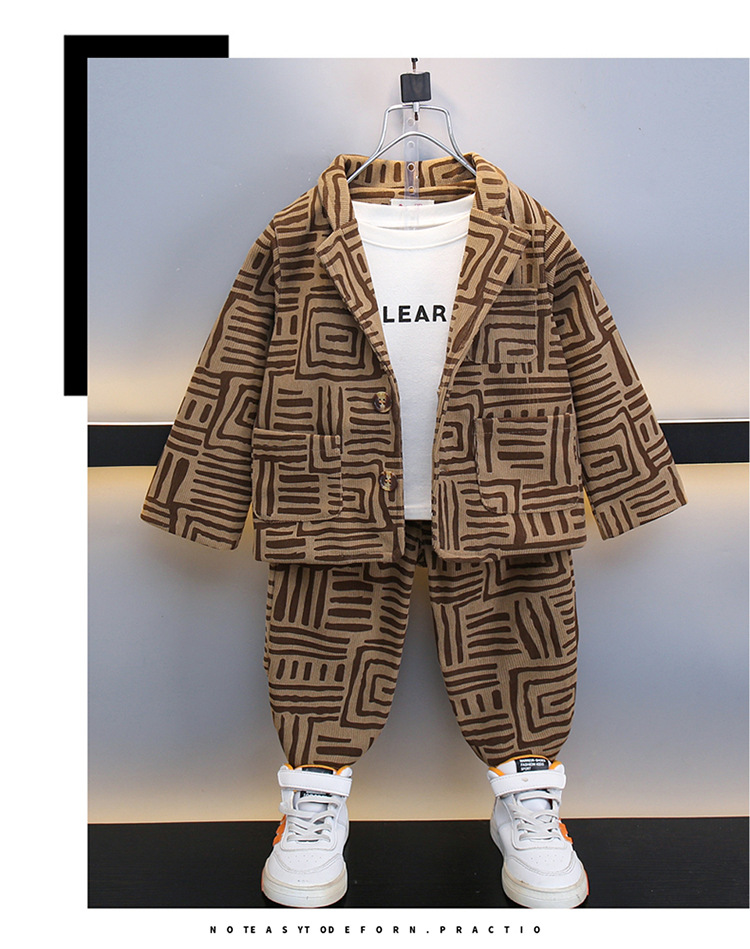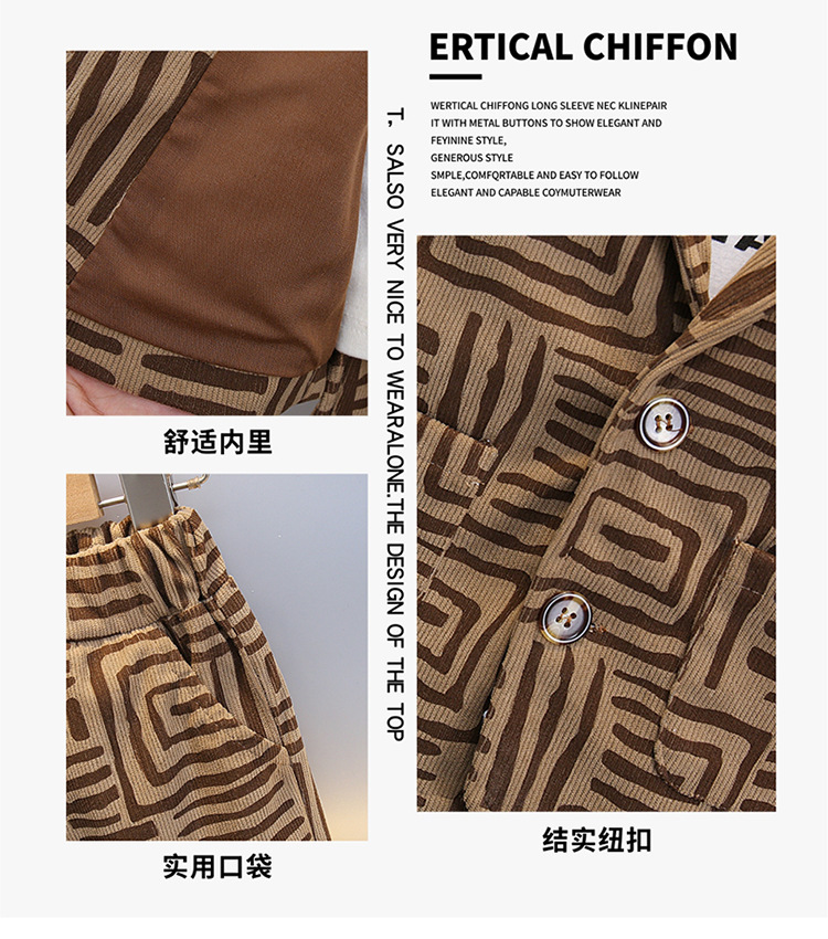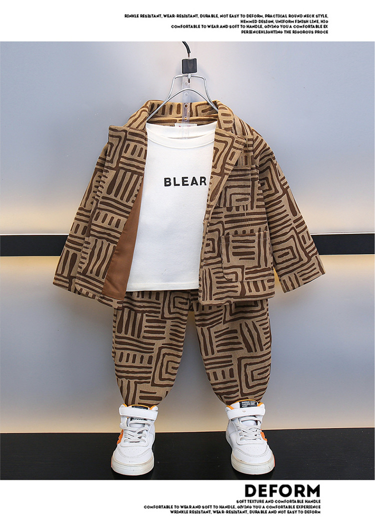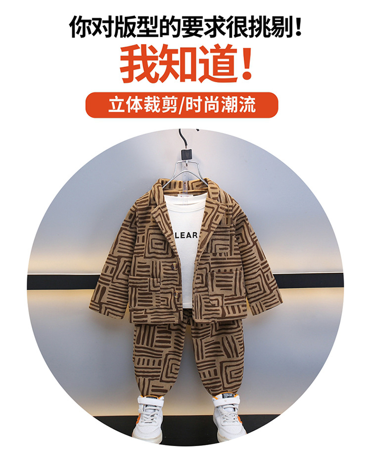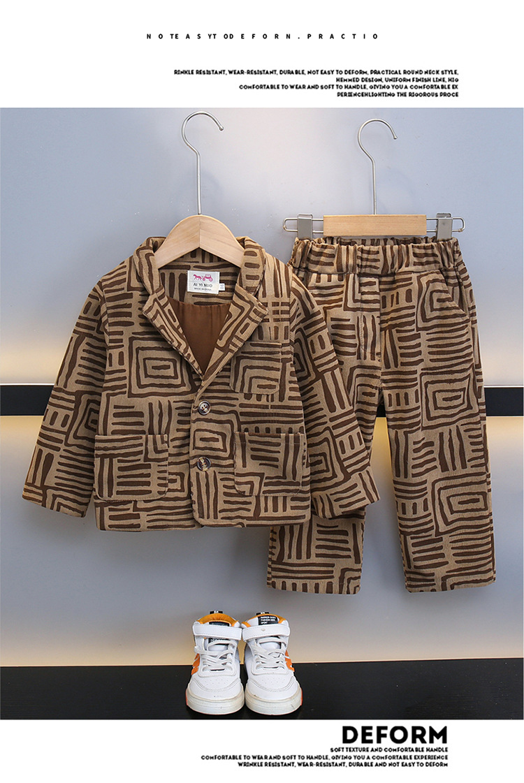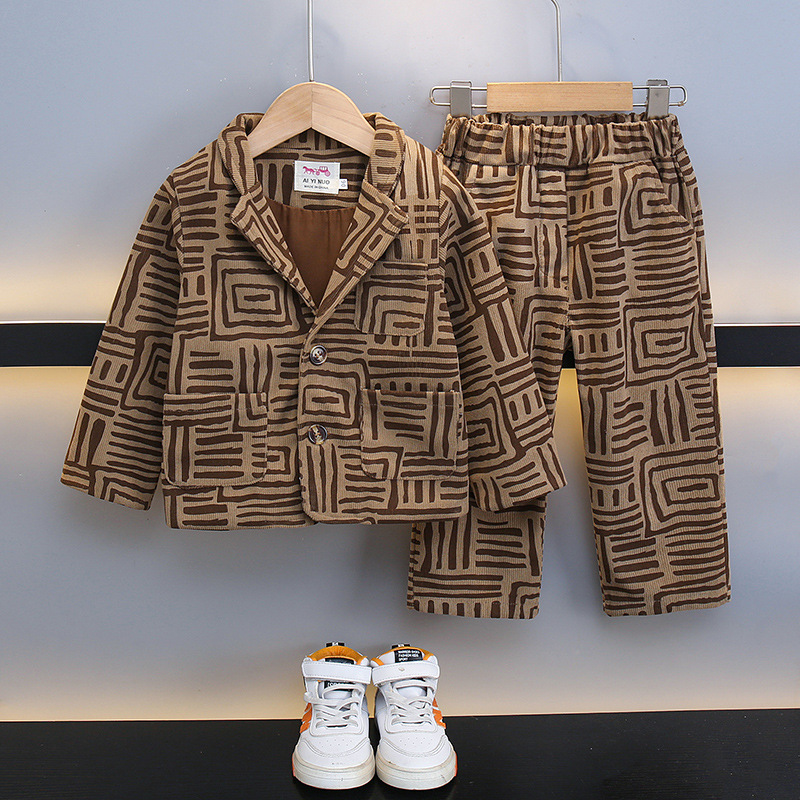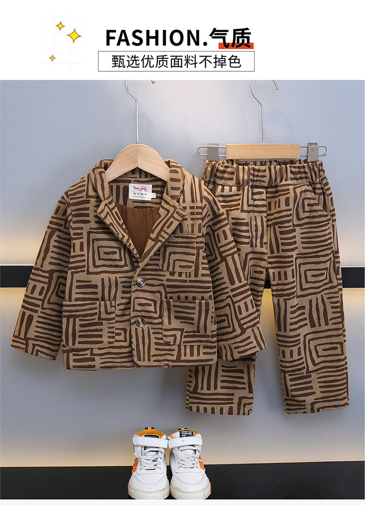 어린이 봄과 가을 웨이브 패턴 세트 세트 2025 봄 새 어린이 의류 어린이 소년 잘 생긴 투피스 세트스토어 가기