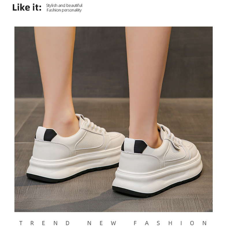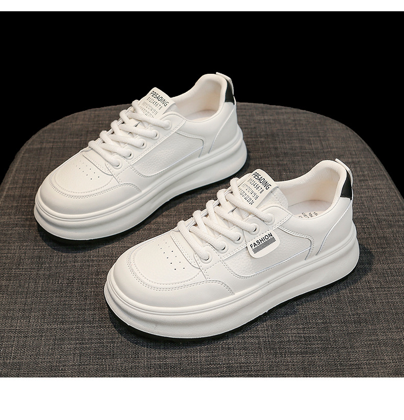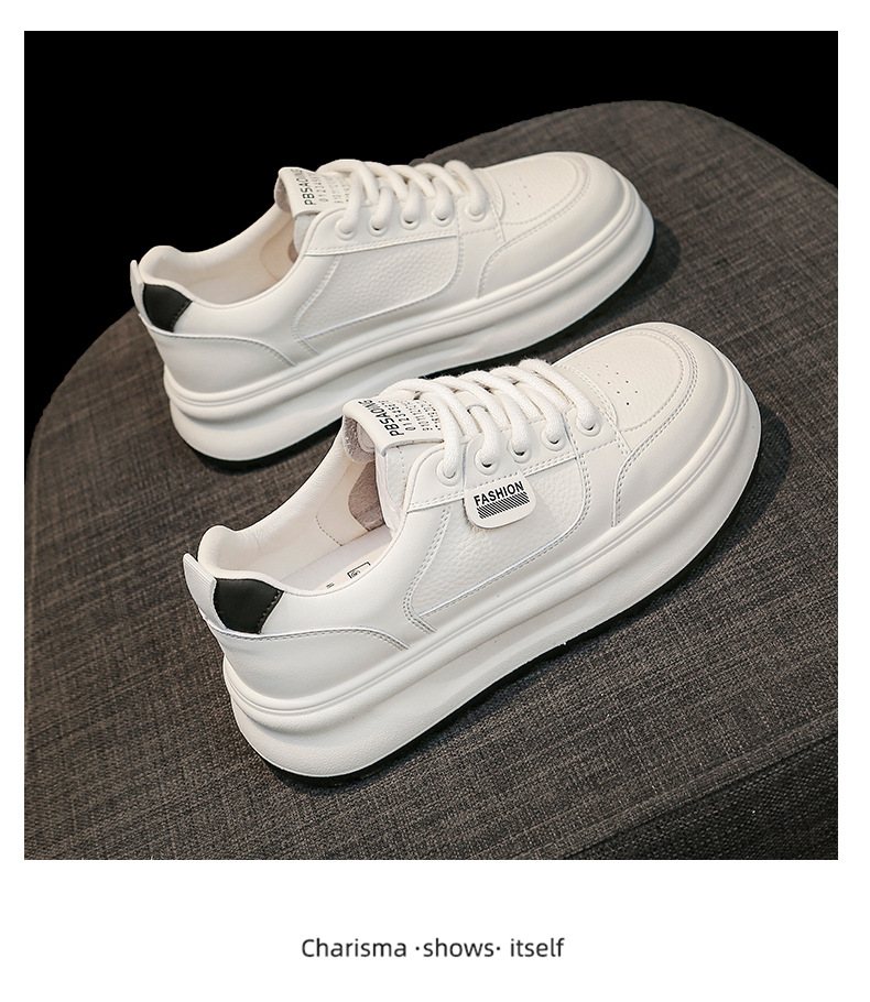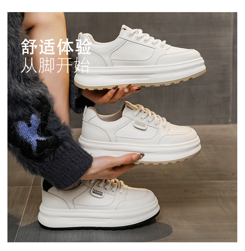 스톰프 느낌 정품 가죽 화이트 신발 여성의 2025 봄 새로운 올 매치 두꺼운 밑창 스포츠 신발 미끄럼 방지 방수 운동화