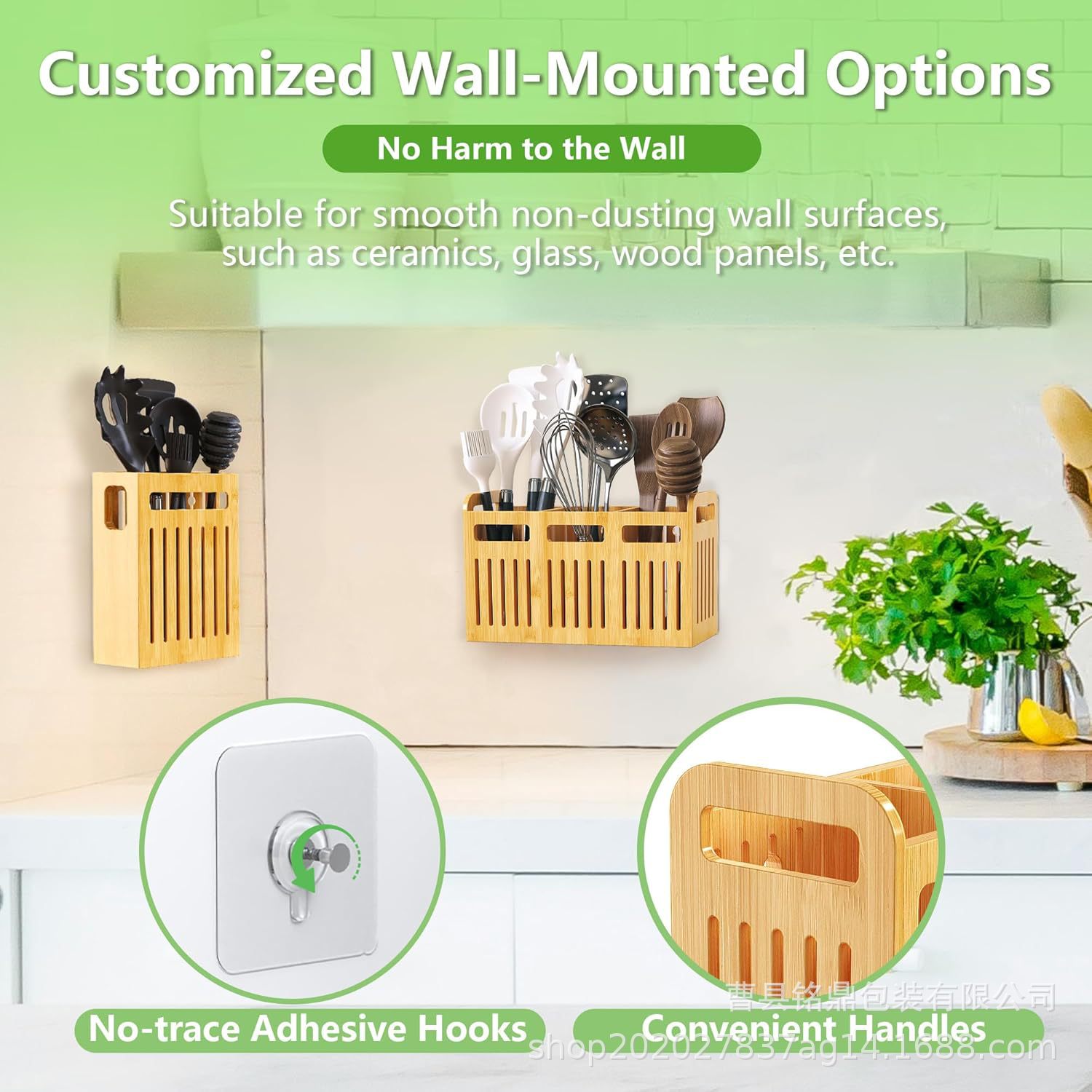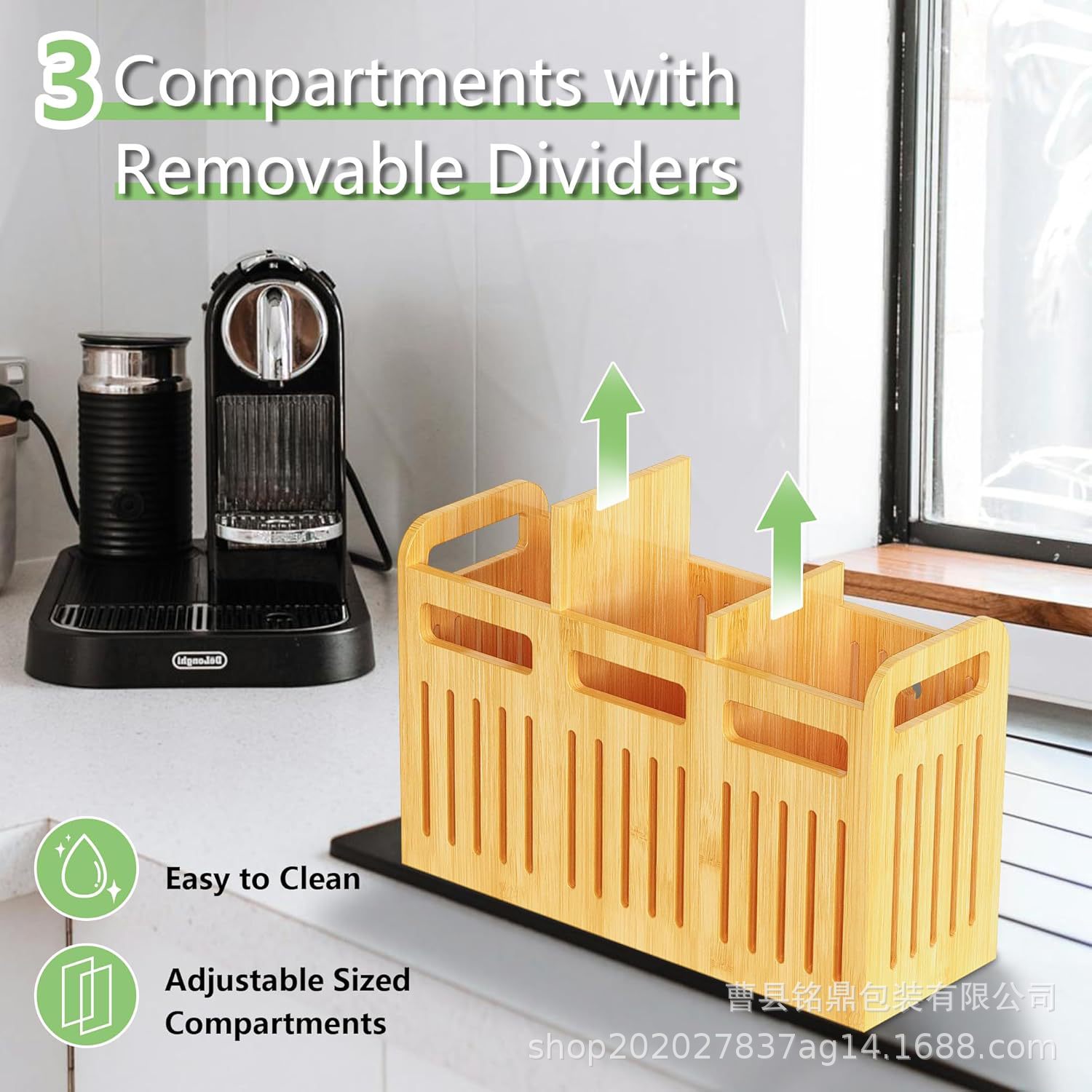 국경 간 대나무 식기 랙 세트 이동식 파티션 주방 식기 나이프와 포크 젓가락 저장 랙 테이블 저장 상자스토어 가기