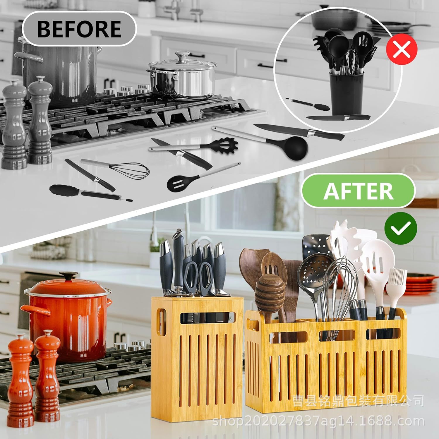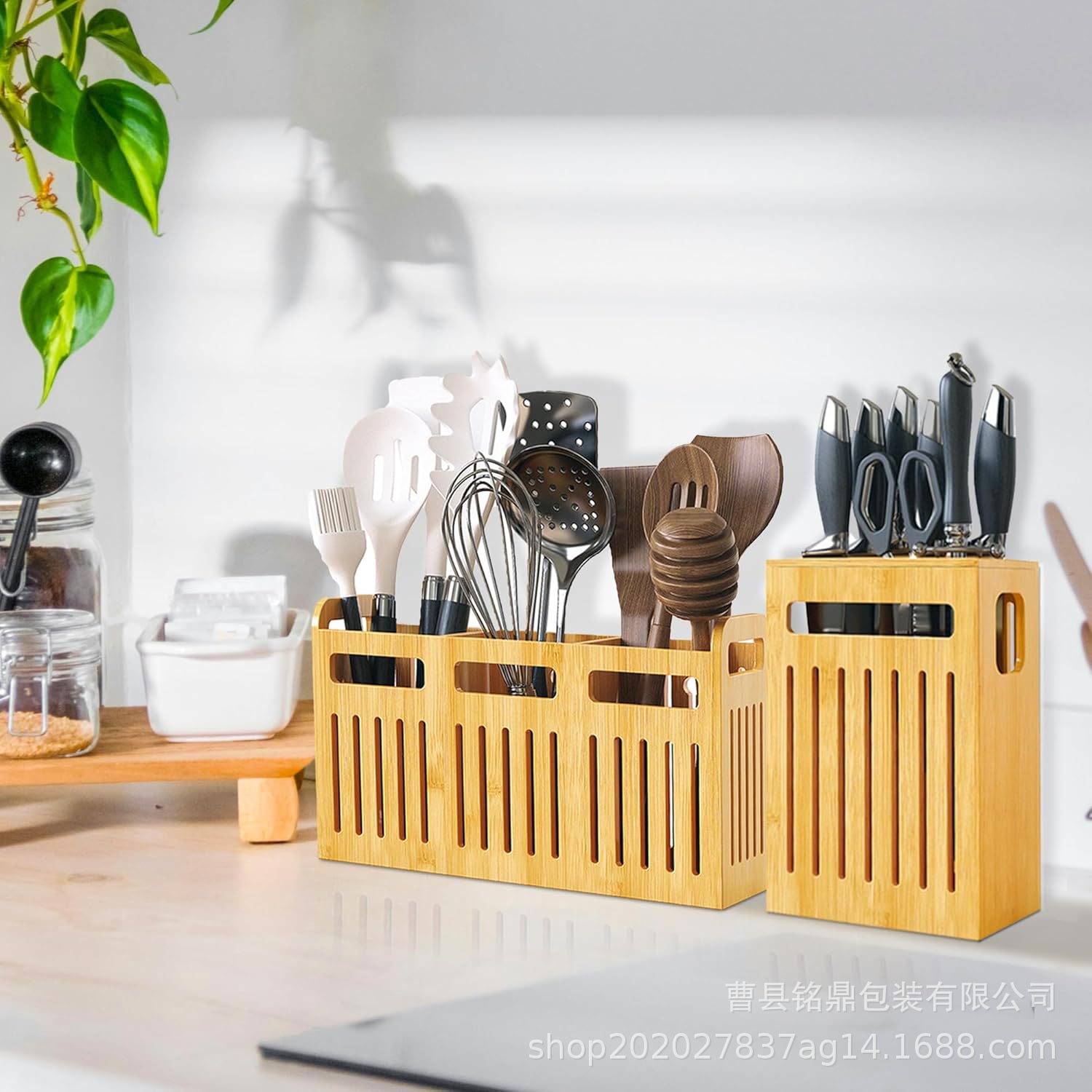 국경 간 대나무 식기 랙 세트 이동식 파티션 주방 식기 나이프와 포크 젓가락 저장 랙 테이블 저장 상자