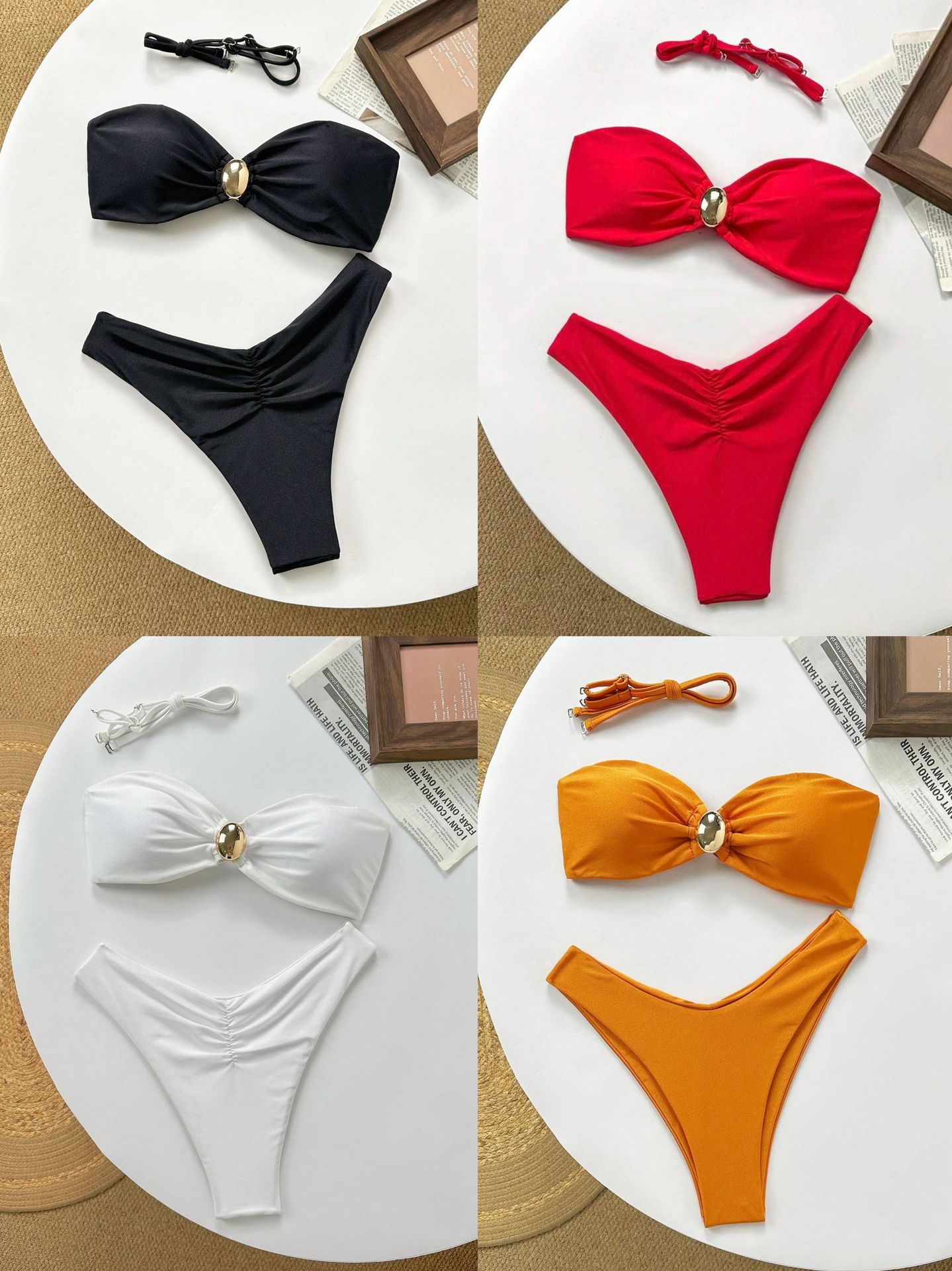 Dongshengda 25 새로운 유럽과 미국의 섹시한 수영복 세트 스트랩리스 조정 어깨 스트랩 핫 비키니 수영복 AliExpress스토어 가기