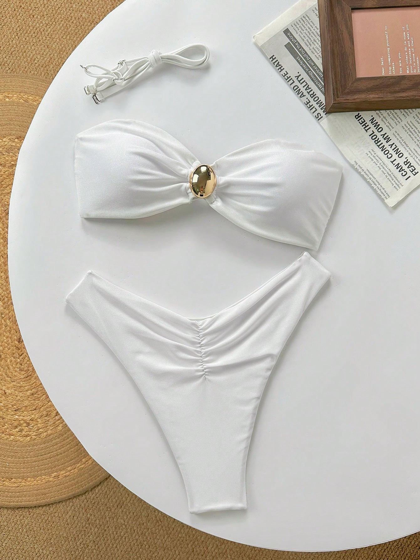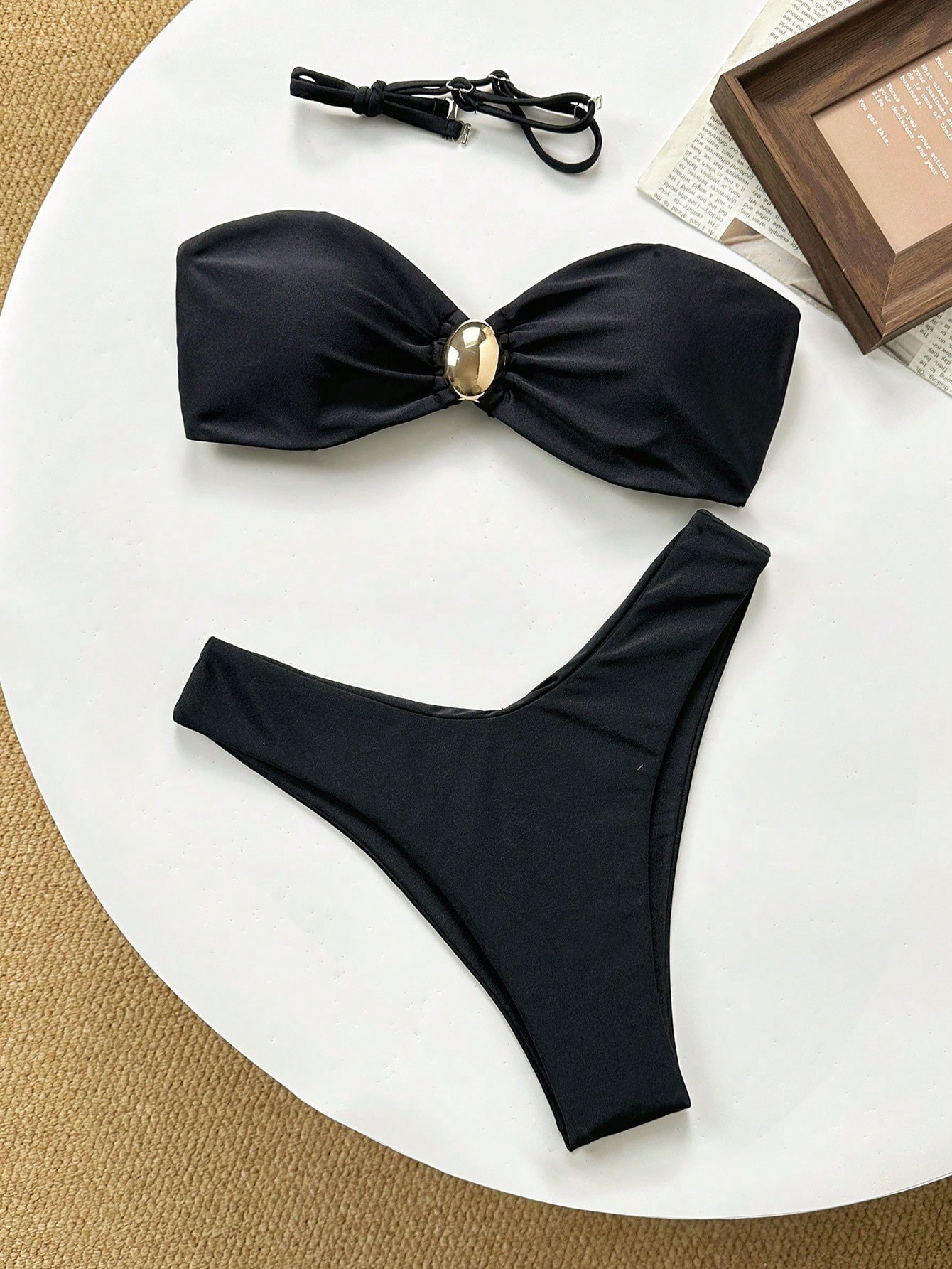Dongshengda 25 새로운 유럽과 미국의 섹시한 수영복 세트 스트랩리스 조정 어깨 스트랩 핫 비키니 수영복 AliExpress