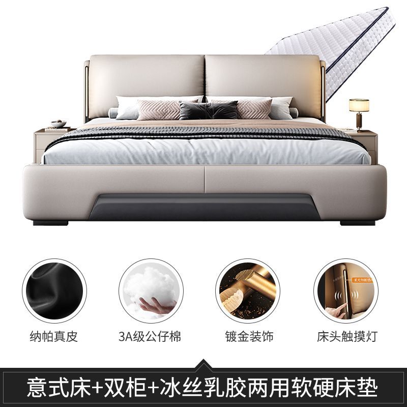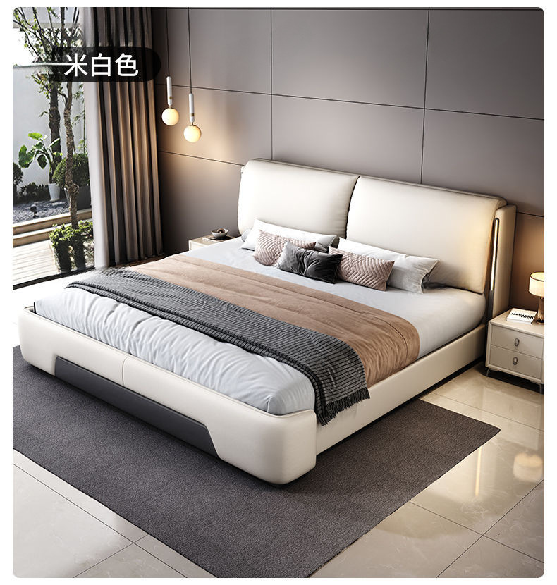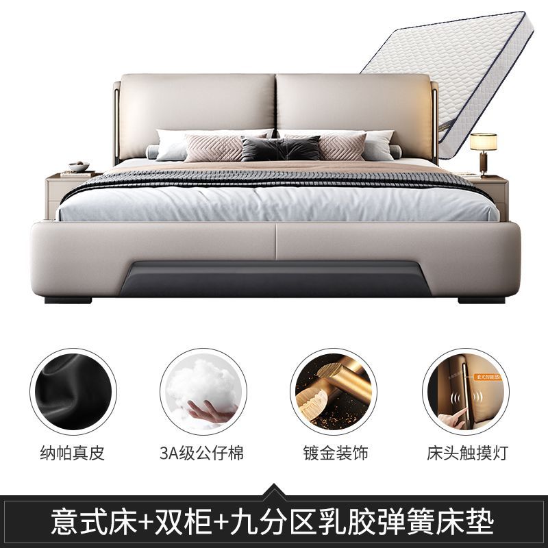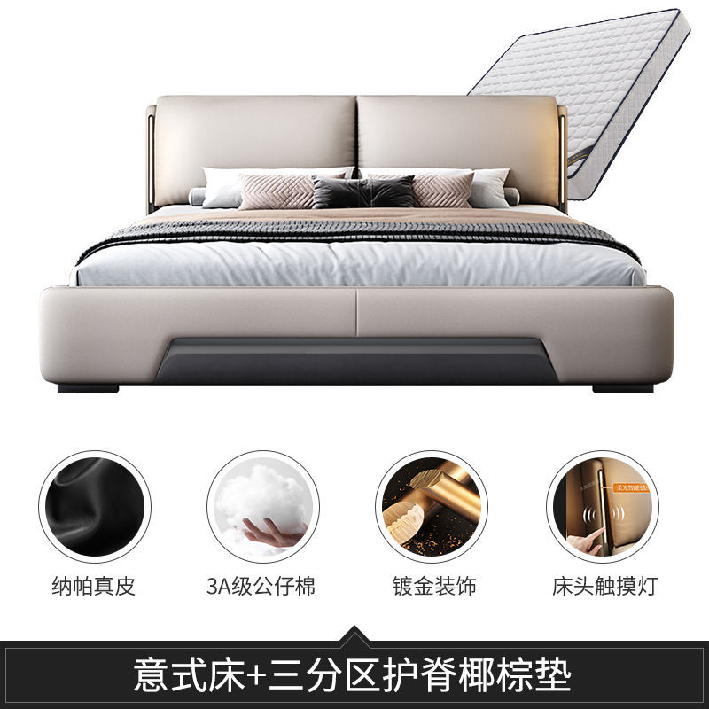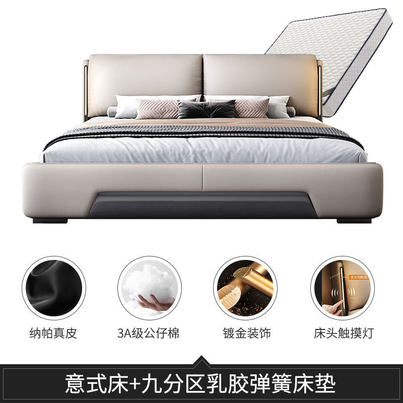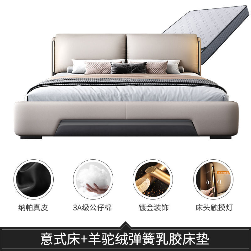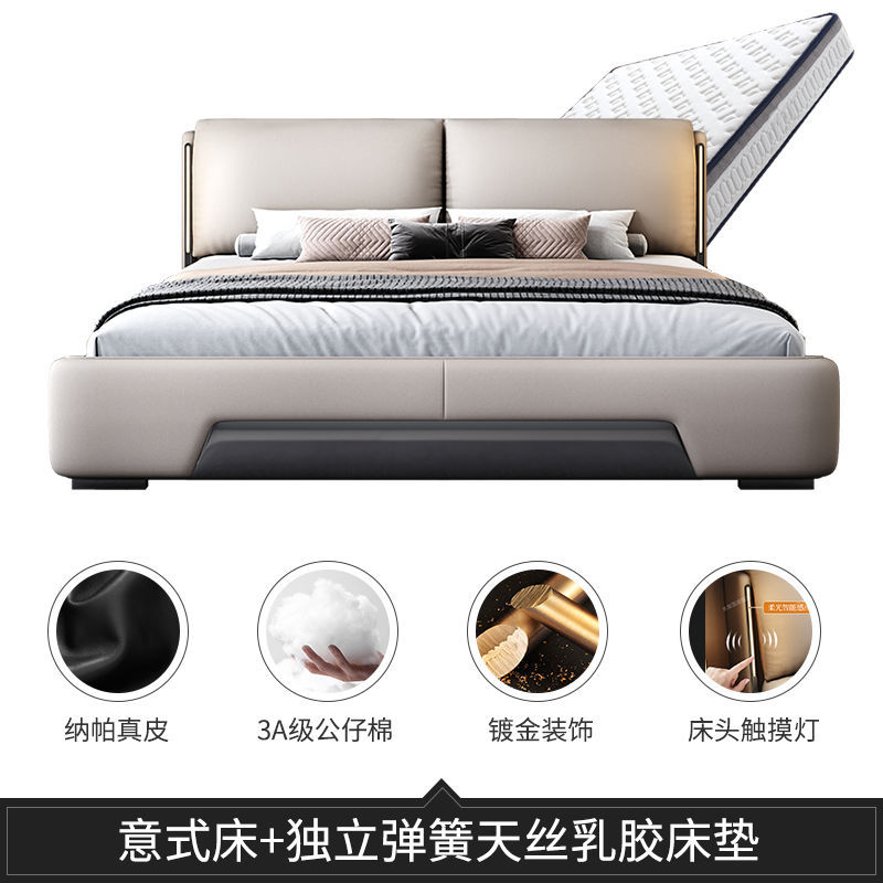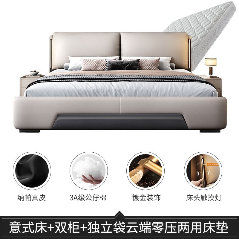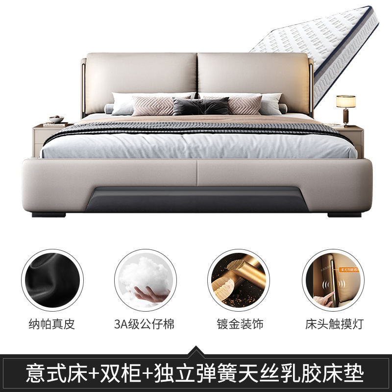 귀 이탈리아 미니멀리스트 침대 현대 미니멀리스트 마스터 침실 더블 가죽 퀸 침대 빛 럭셔리 가죽 소프트 백 웨딩 침대