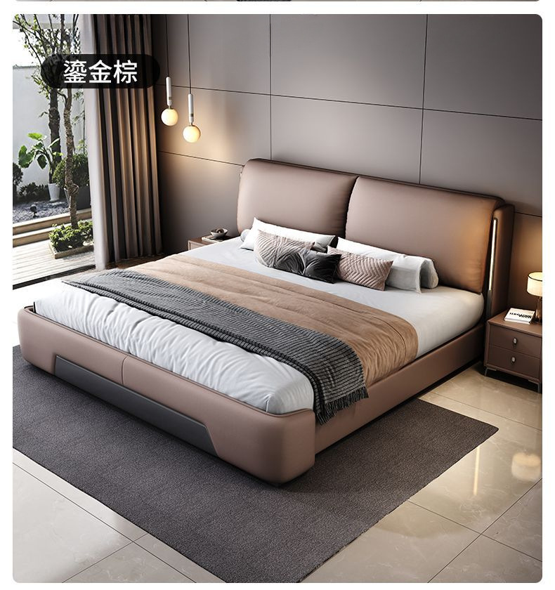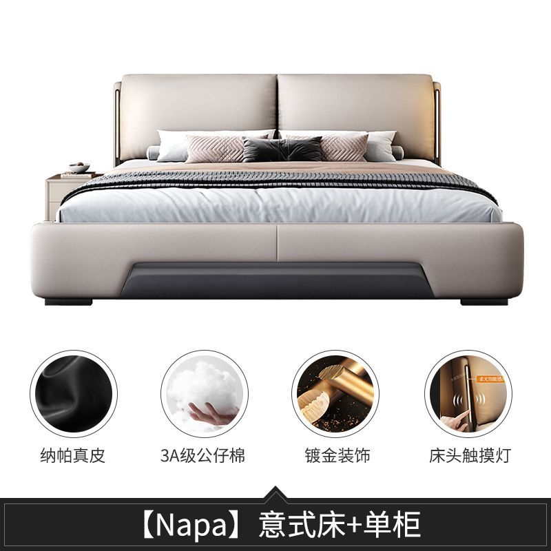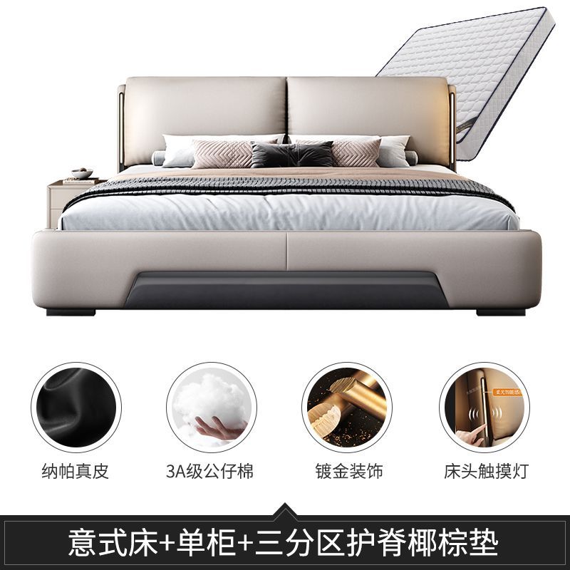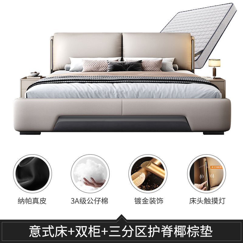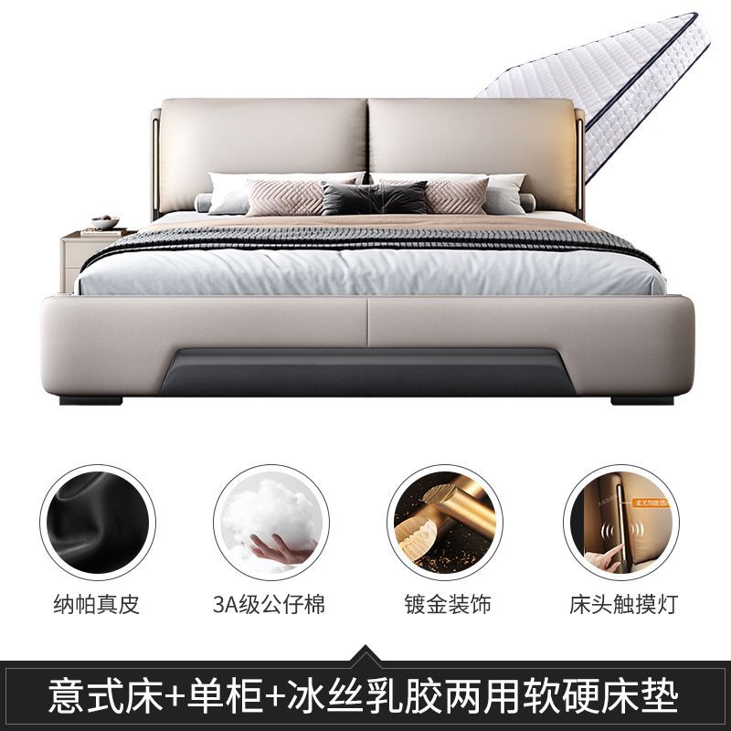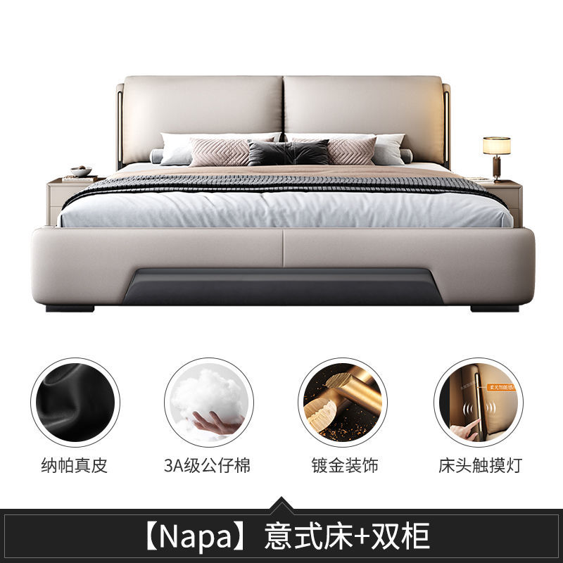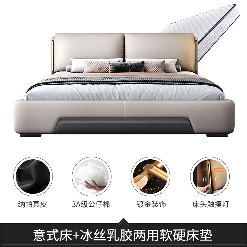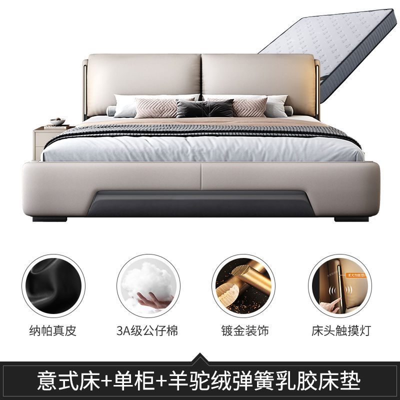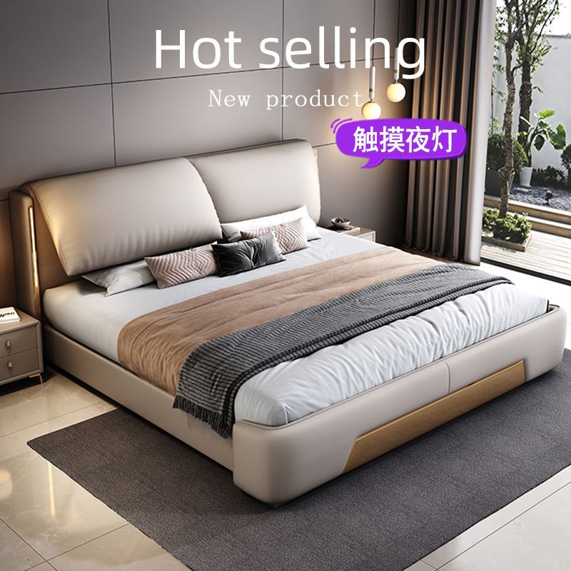 귀 이탈리아 미니멀리스트 침대 현대 미니멀리스트 마스터 침실 더블 가죽 퀸 침대 빛 럭셔리 가죽 소프트 백 웨딩 침대