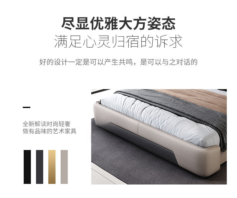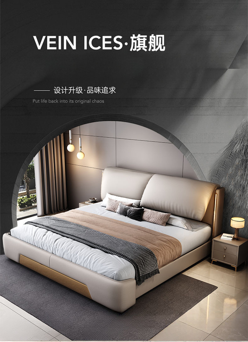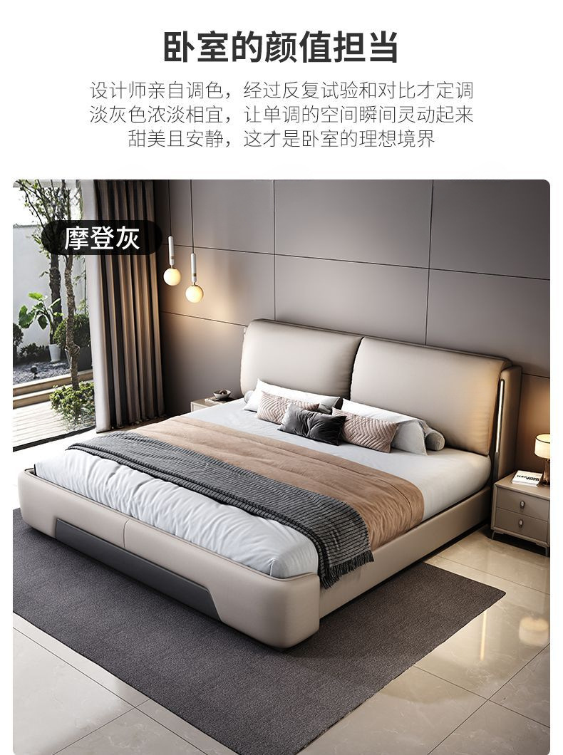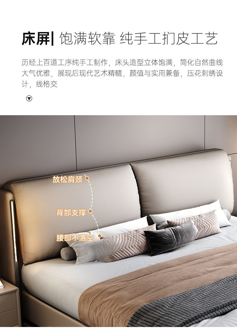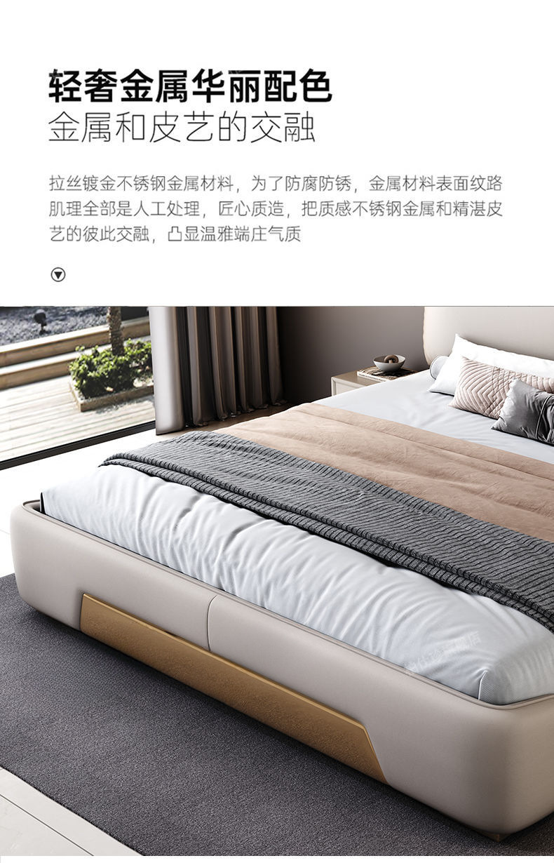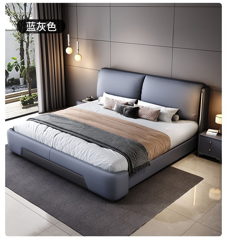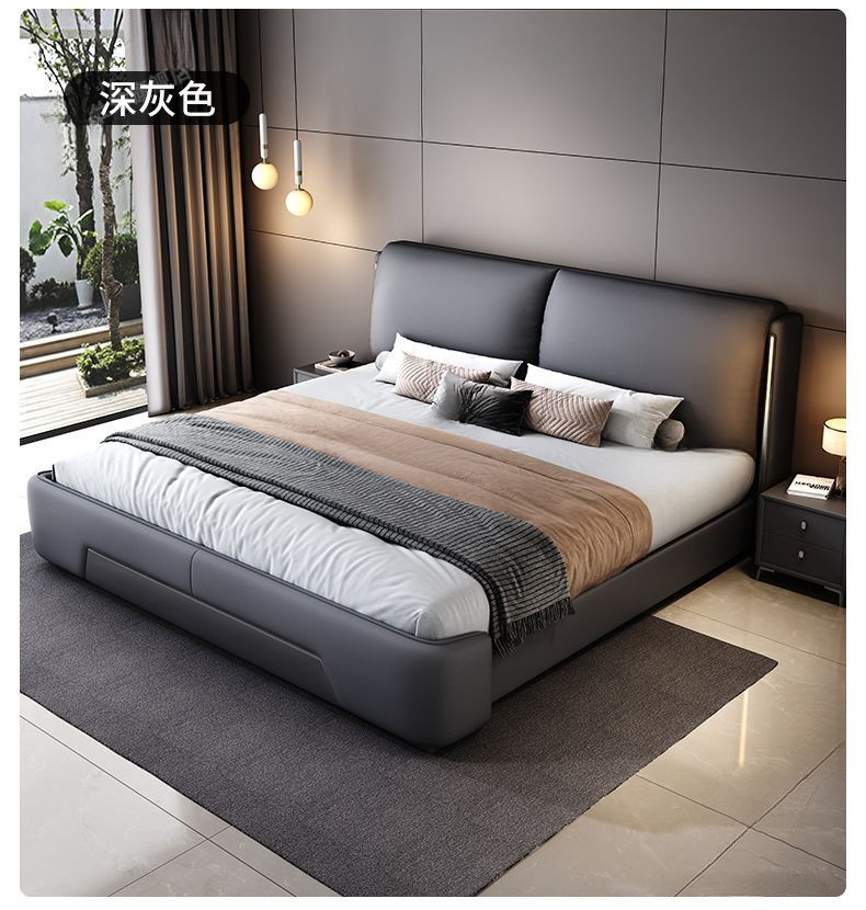 귀 이탈리아 미니멀리스트 침대 현대 미니멀리스트 마스터 침실 더블 가죽 퀸 침대 빛 럭셔리 가죽 소프트 백 웨딩 침대