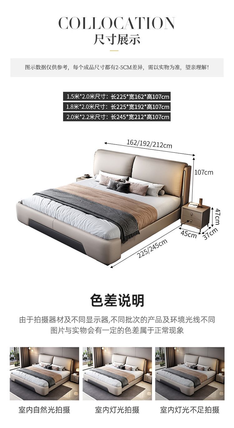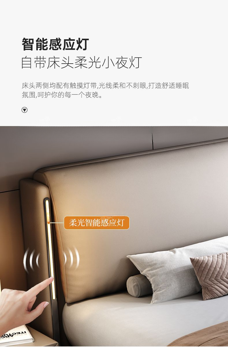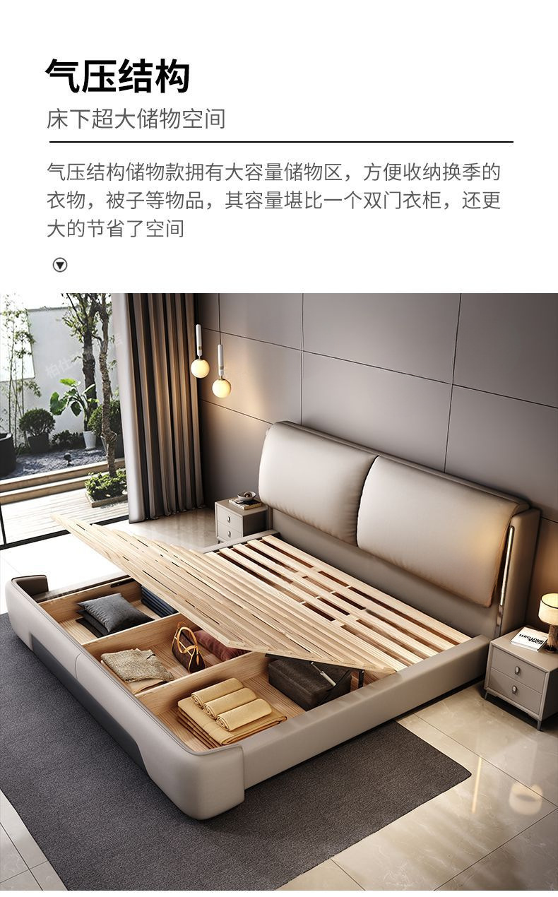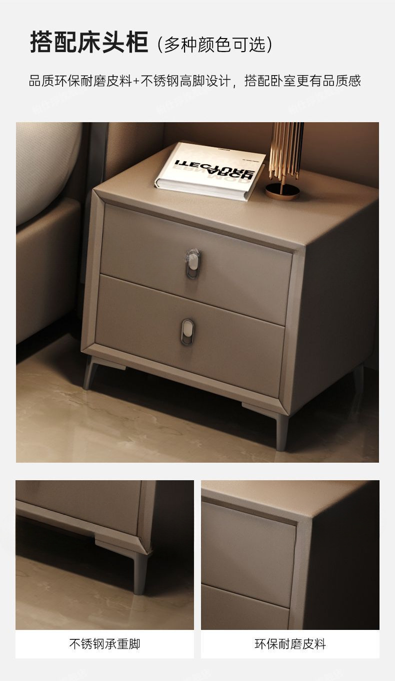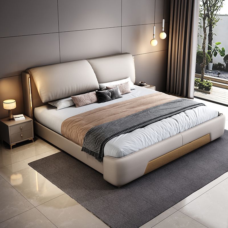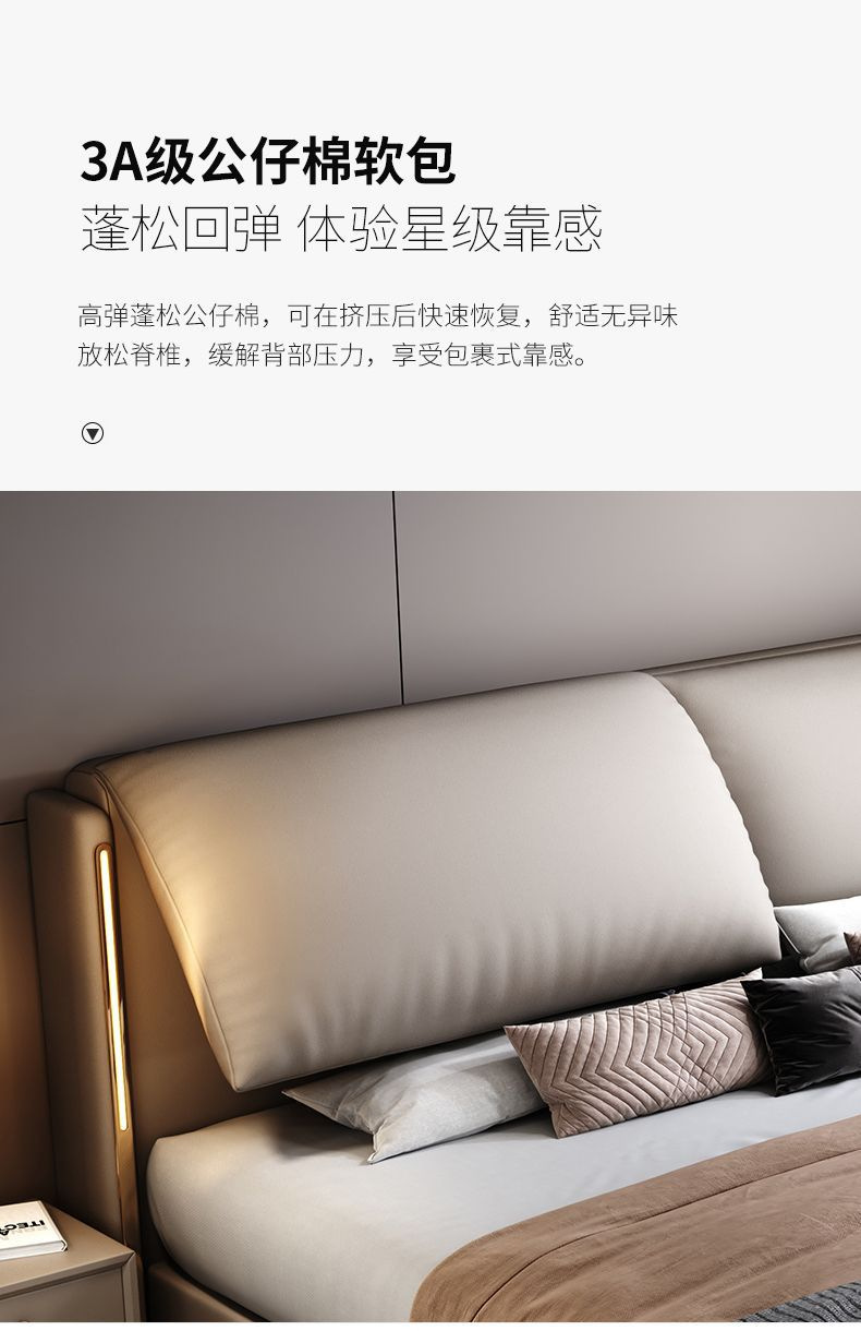 귀 이탈리아 미니멀리스트 침대 현대 미니멀리스트 마스터 침실 더블 가죽 퀸 침대 빛 럭셔리 가죽 소프트 백 웨딩 침대