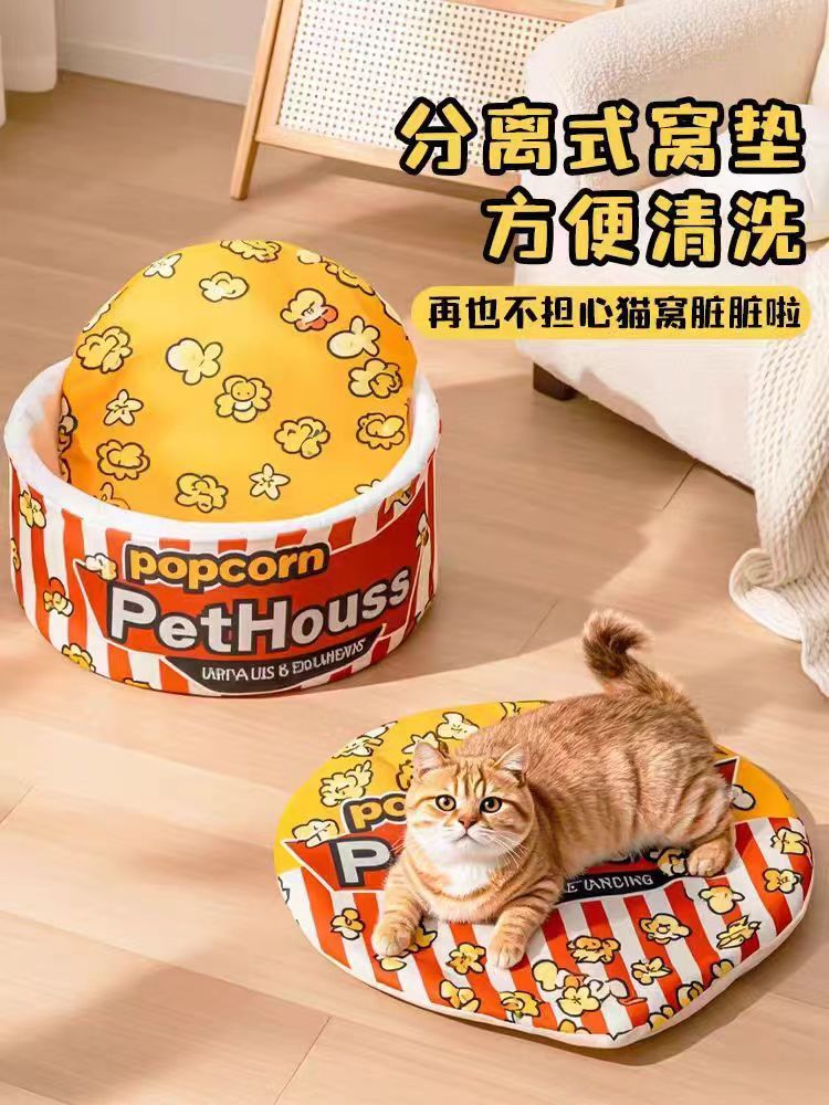팝콘 고양이 개집 인스턴트 국수 고양이 개집 겨울 따뜻한 사계절 폐쇄형 고양이 잠자는 고양이 집 개집스토어 가기