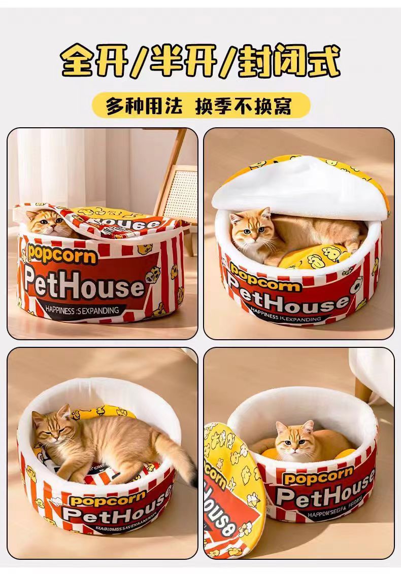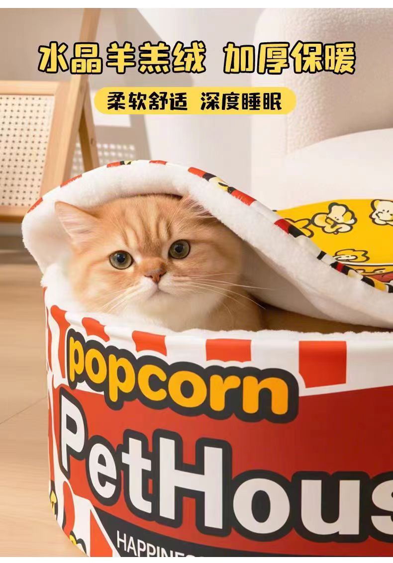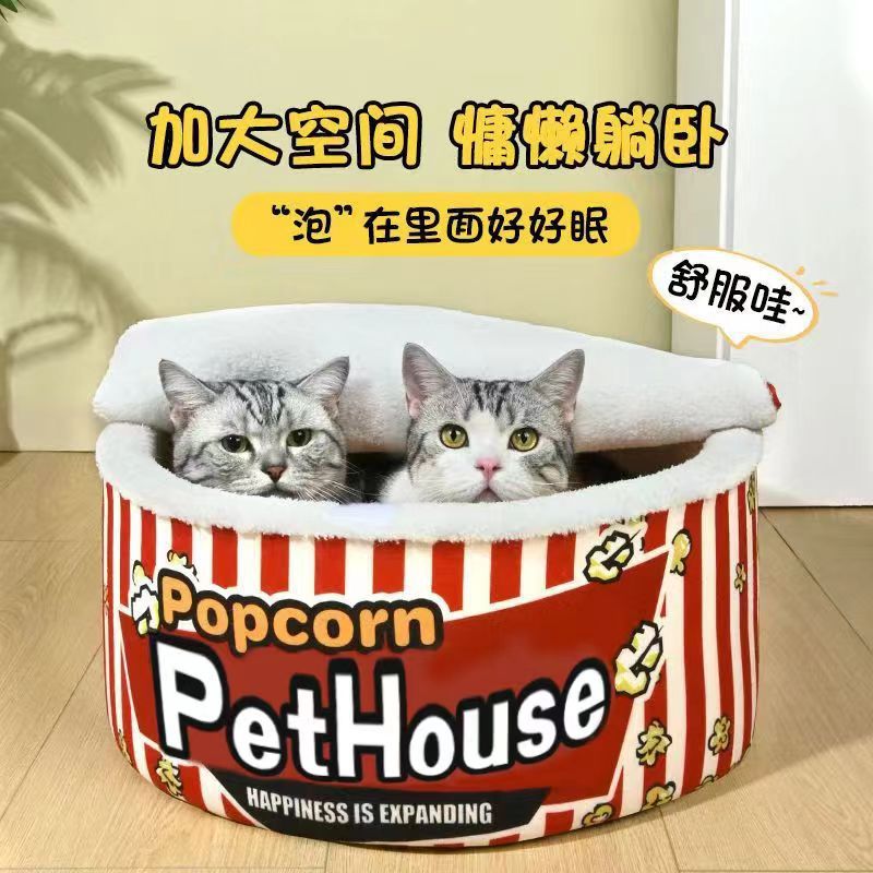 팝콘 고양이 개집 인스턴트 국수 고양이 개집 겨울 따뜻한 사계절 폐쇄형 고양이 잠자는 고양이 집 개집