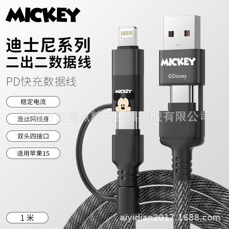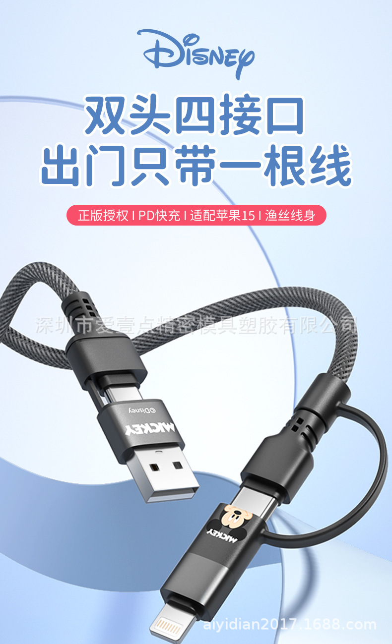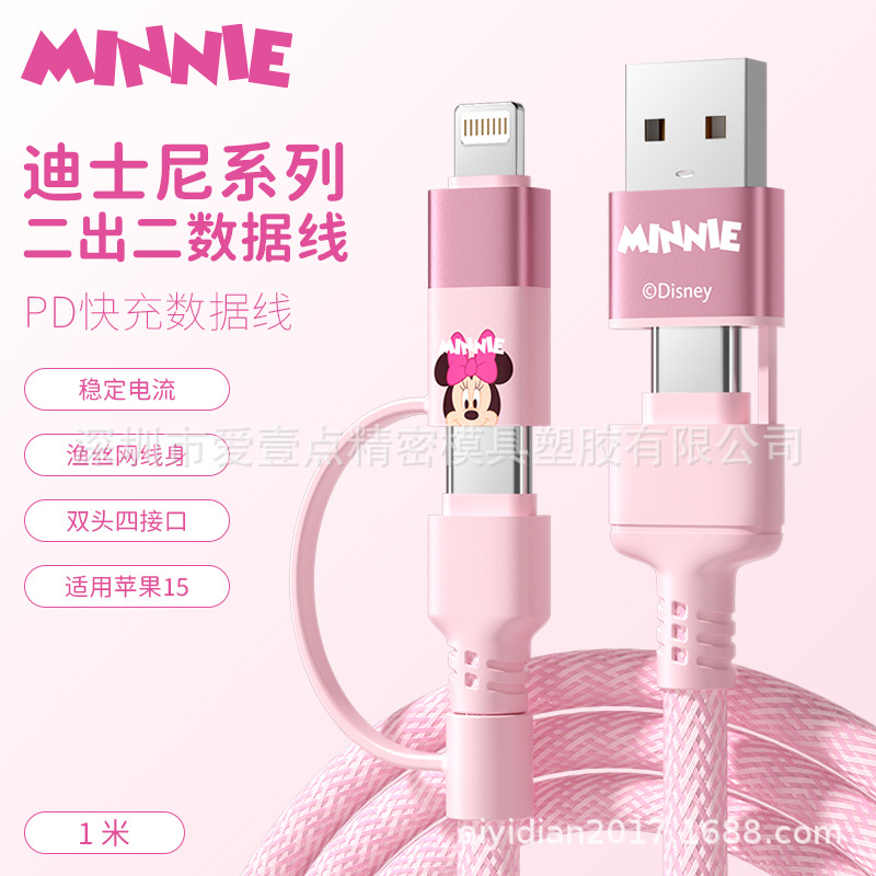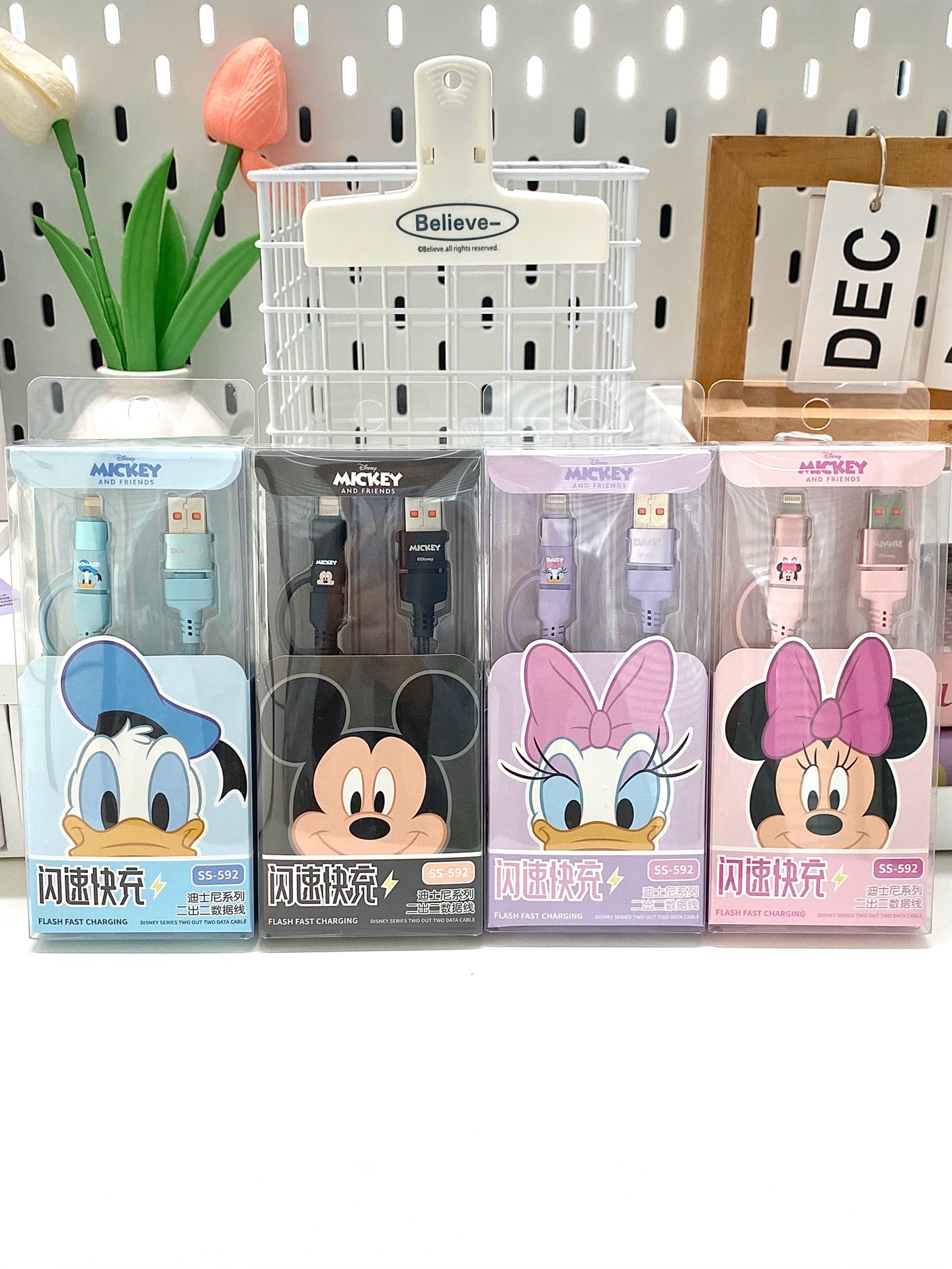 애플 화웨이 재고 선물에 적합한 디즈니 휴대 전화 데이터 케이블 2 대 2 전송 5A 고속 충전 케이블스토어 가기