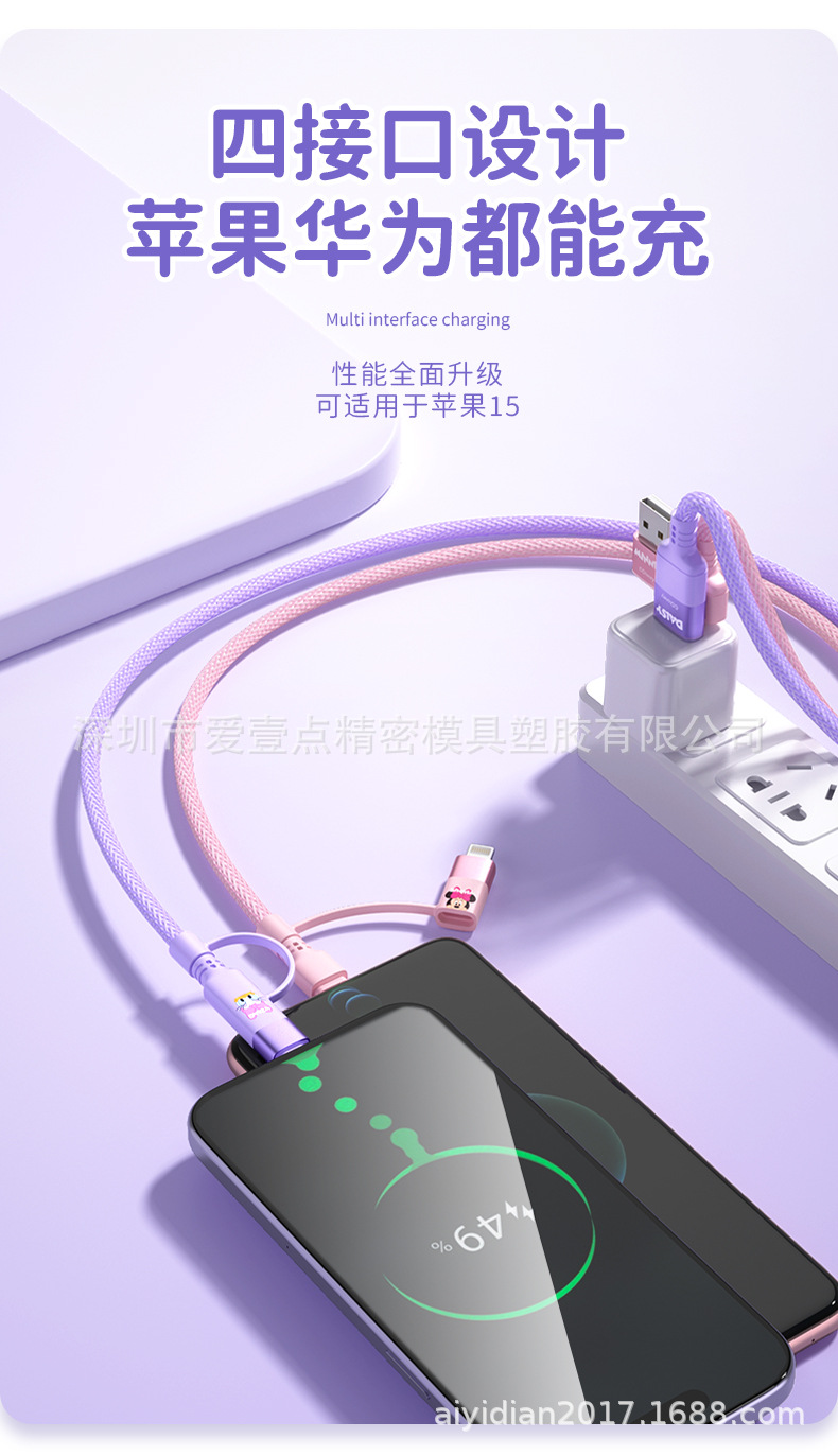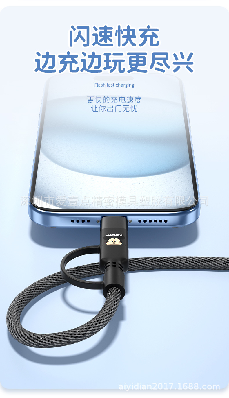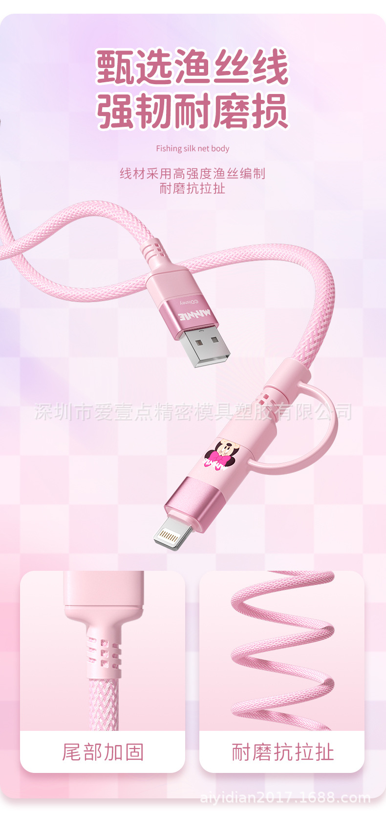 애플 화웨이 재고 선물에 적합한 디즈니 휴대 전화 데이터 케이블 2 대 2 전송 5A 고속 충전 케이블스토어 가기