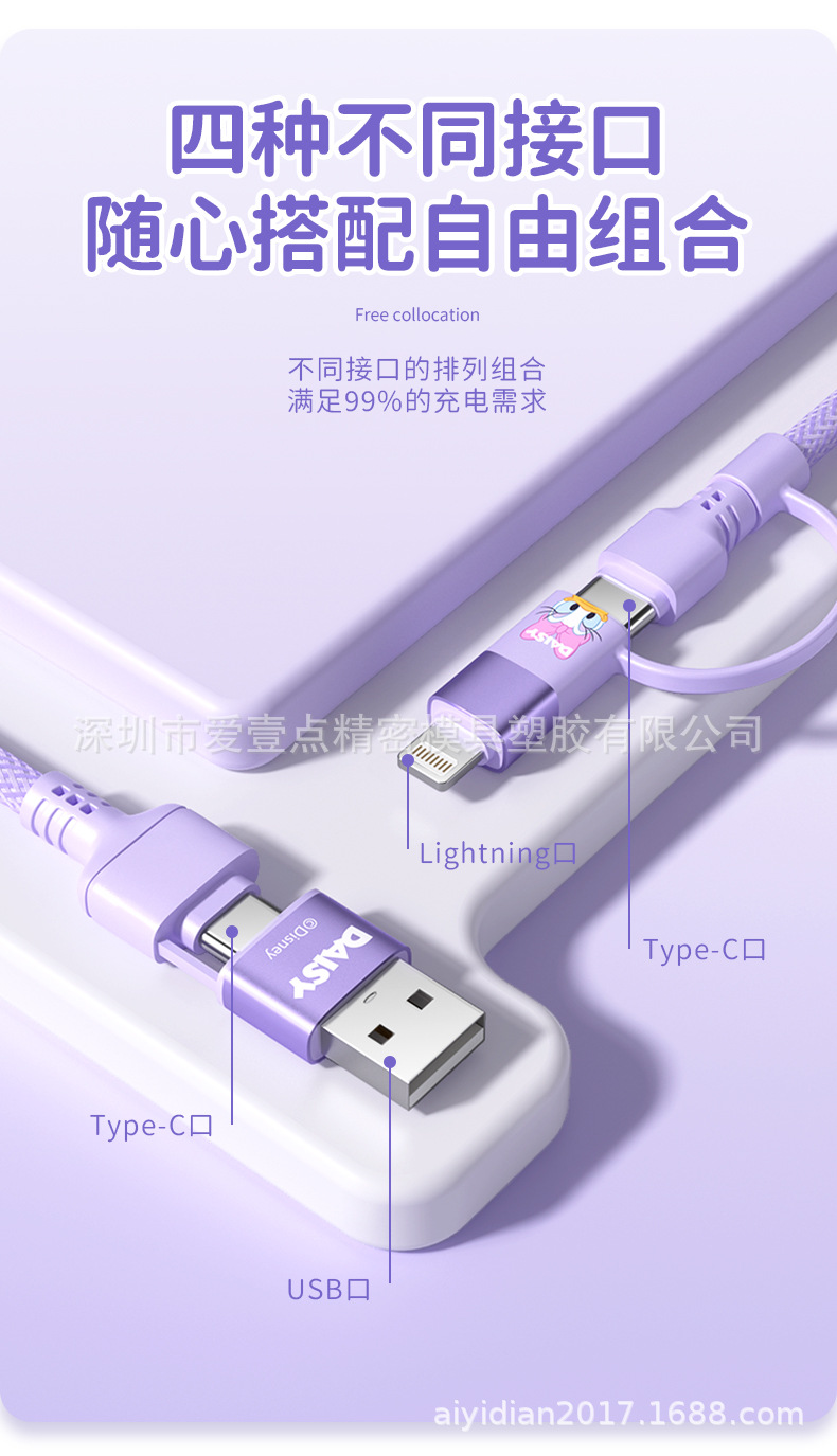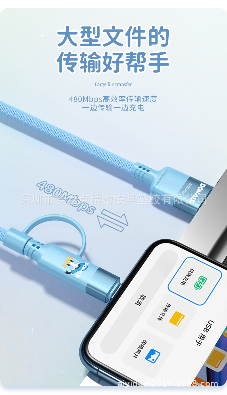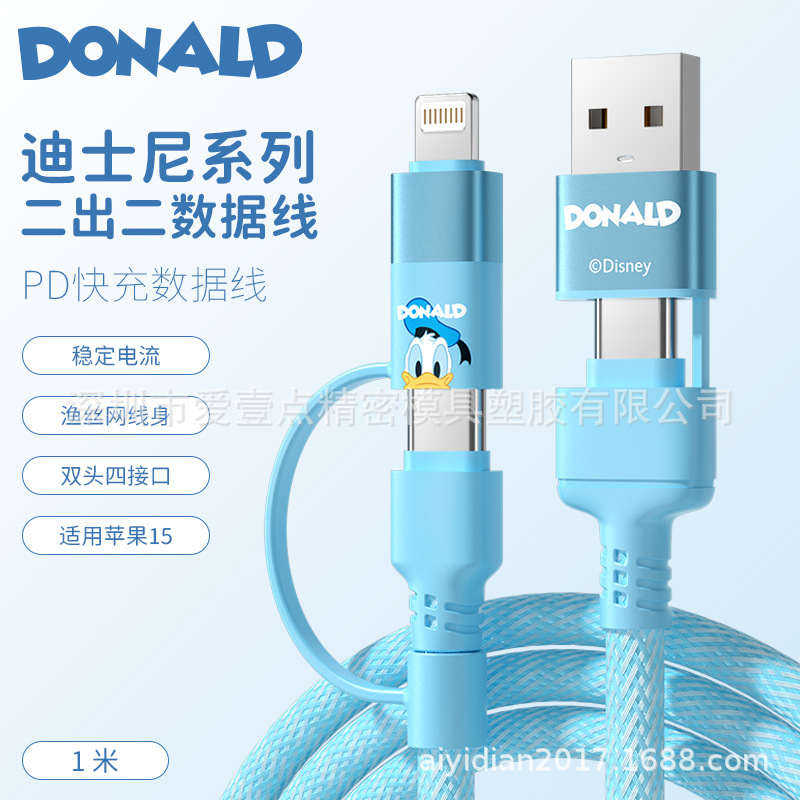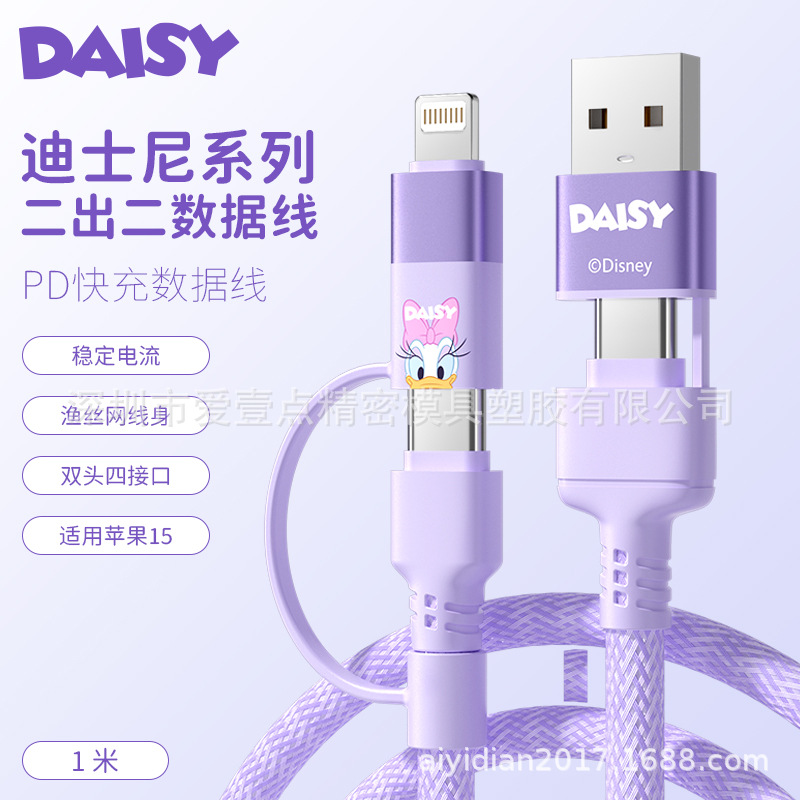 애플 화웨이 재고 선물에 적합한 디즈니 휴대 전화 데이터 케이블 2 대 2 전송 5A 고속 충전 케이블