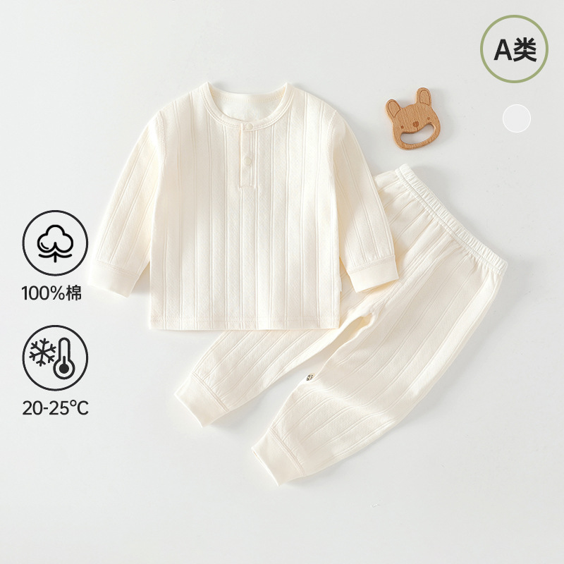 아기 가을옷, 아기 순면 A급 분리형 세트, 신생아 풀오버 베이스레이어 자카드 가을옷 세트