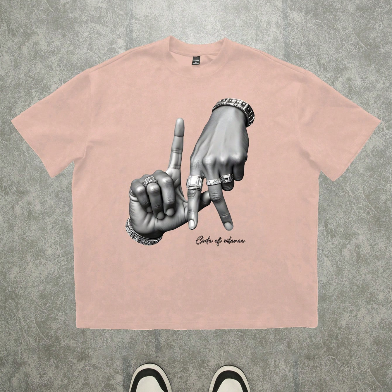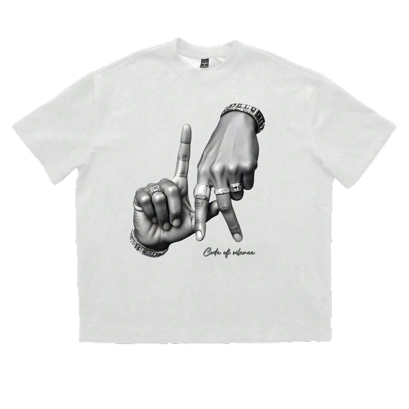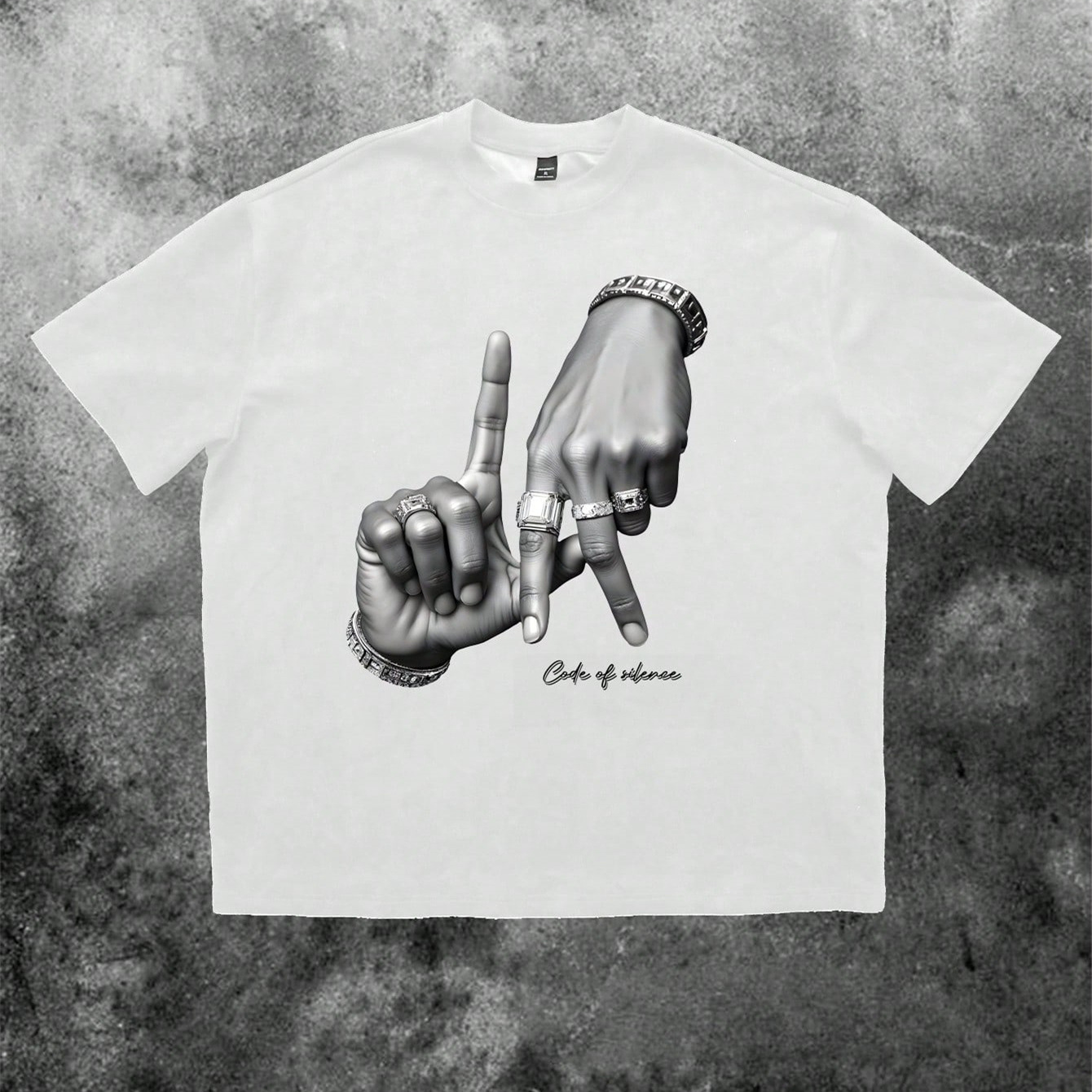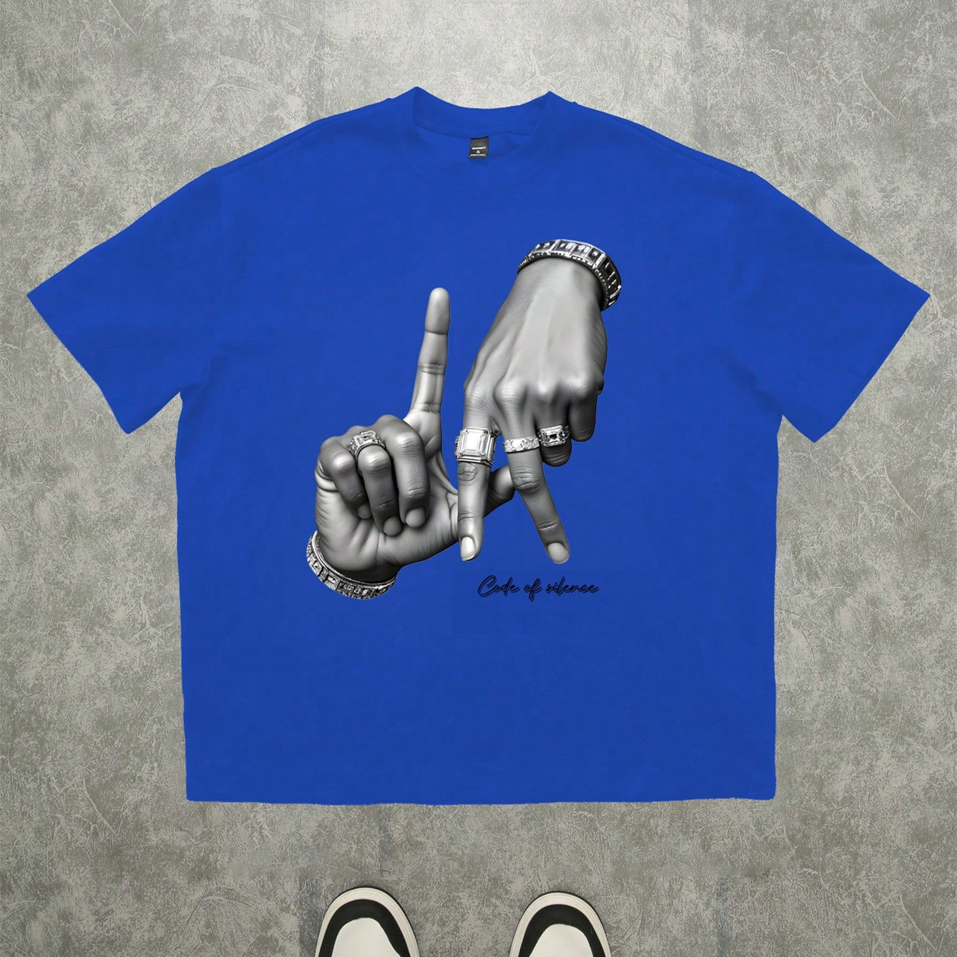 국경 간 대외 무역 소원 미국 Chicano Gesture LA 인쇄 편지 꽃 바디 느슨한 힙합 반팔 남녀 T
