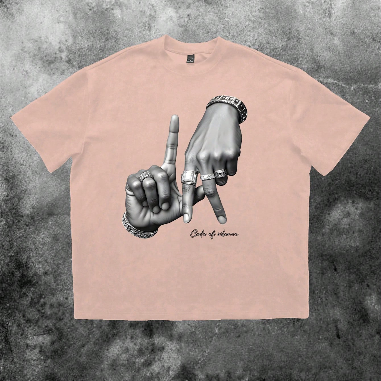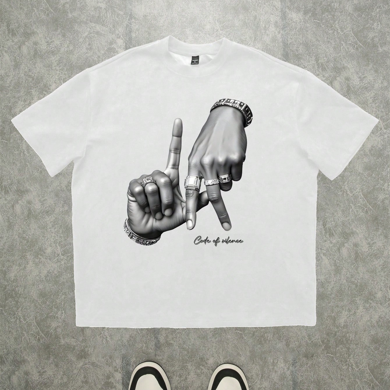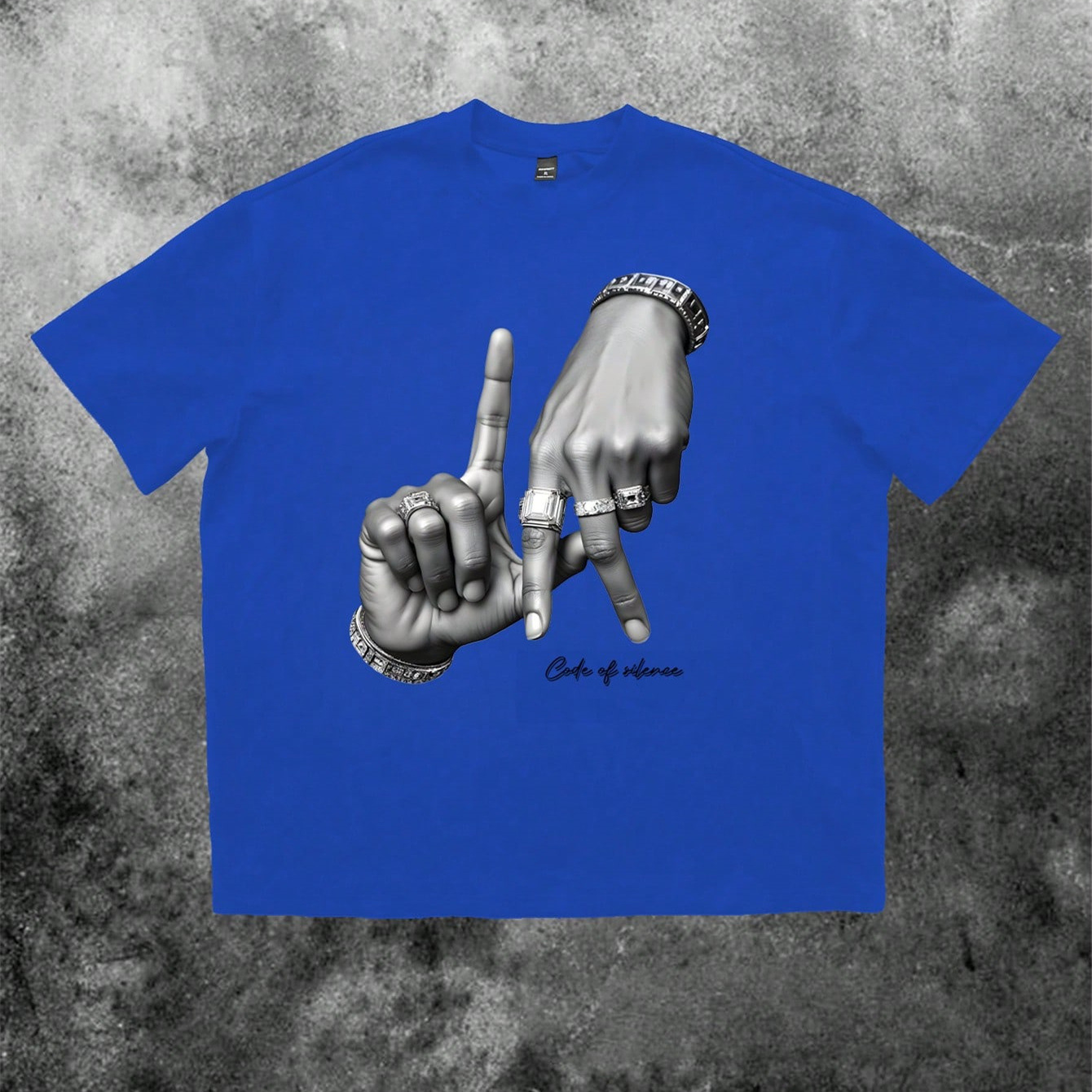 국경 간 대외 무역 소원 미국 Chicano Gesture LA 인쇄 편지 꽃 바디 느슨한 힙합 반팔 남녀 T
