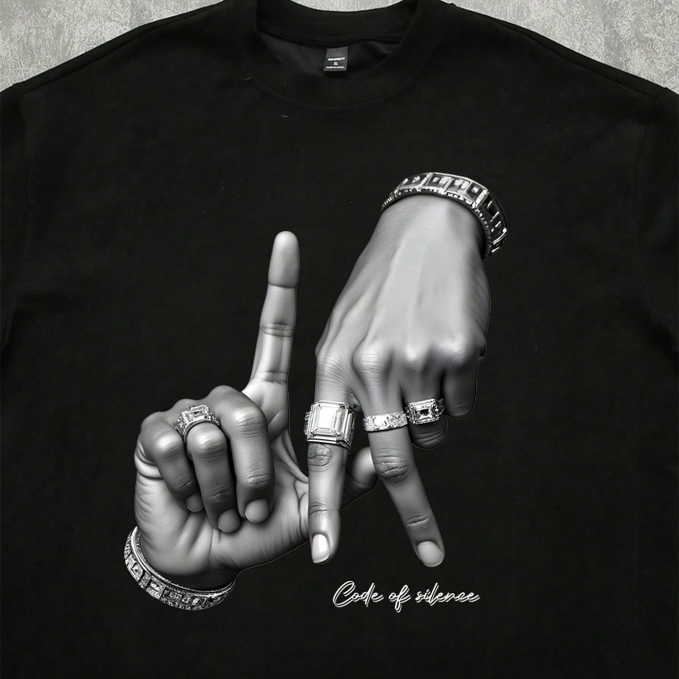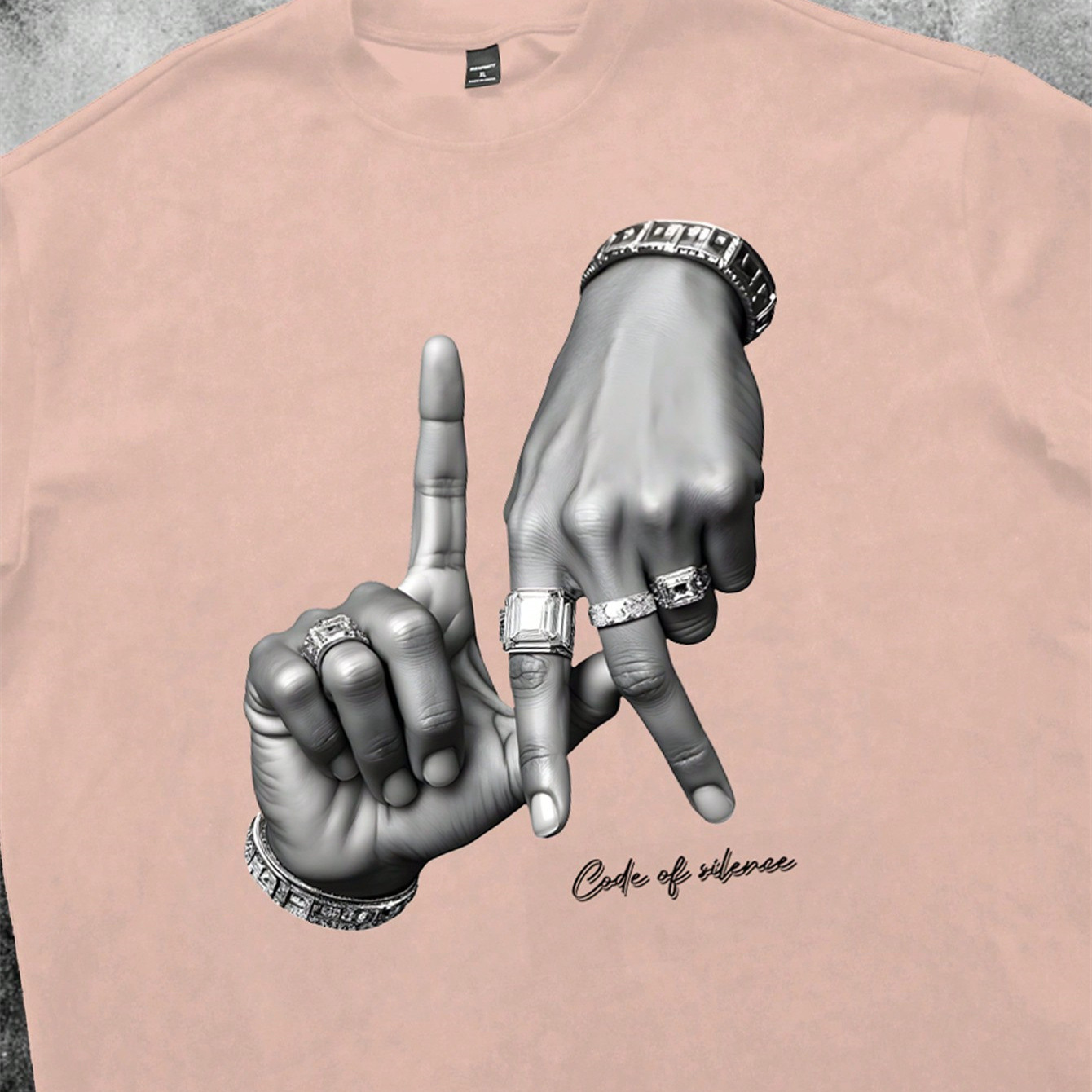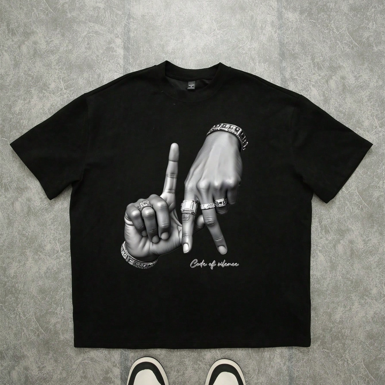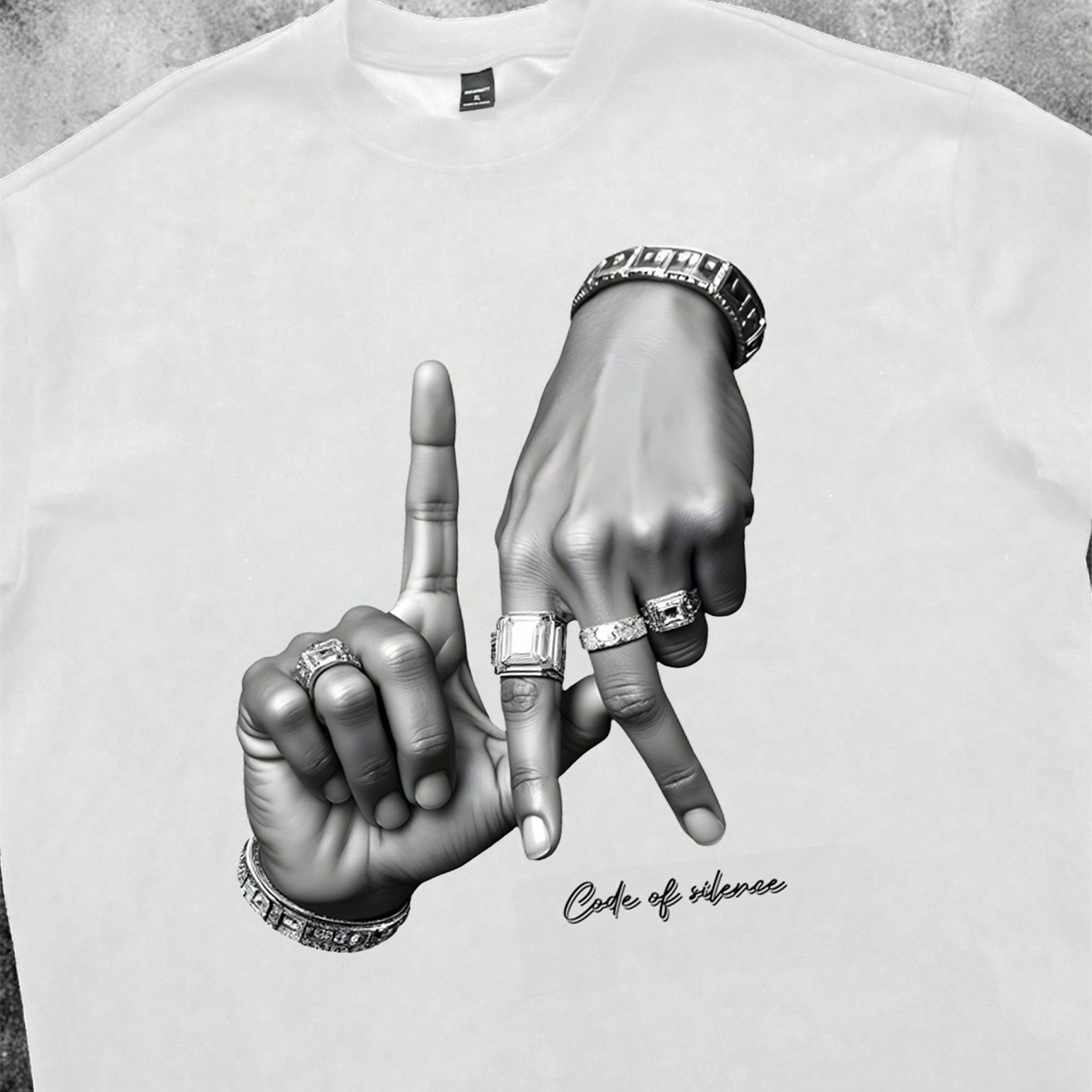 국경 간 대외 무역 소원 미국 Chicano Gesture LA 인쇄 편지 꽃 바디 느슨한 힙합 반팔 남녀 T