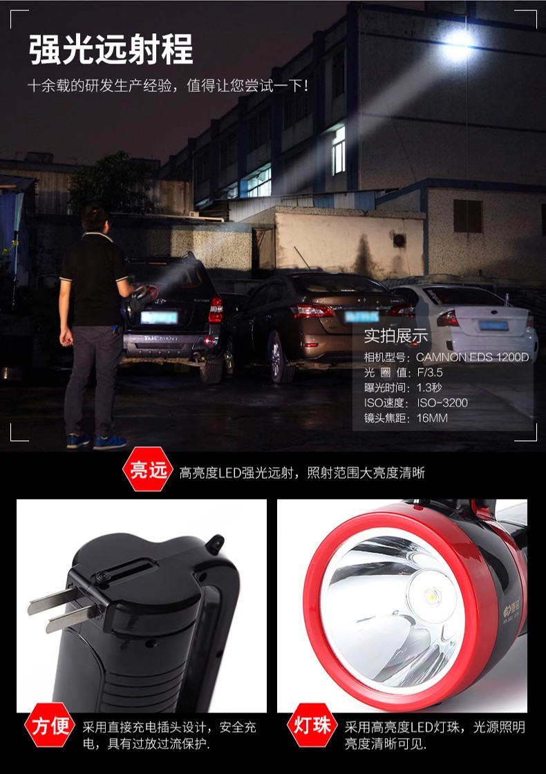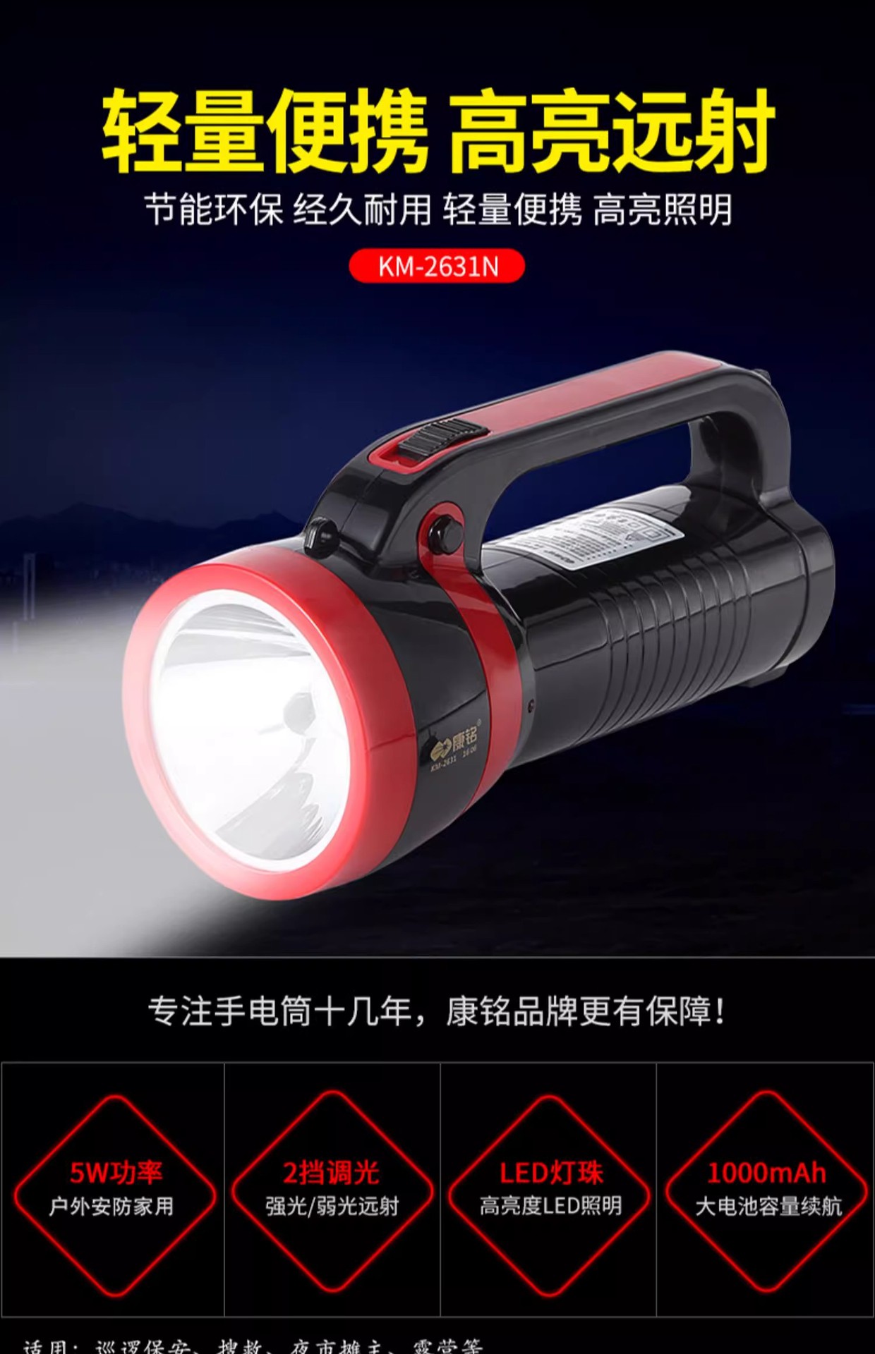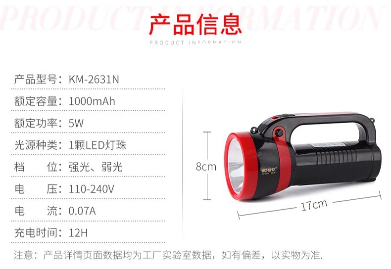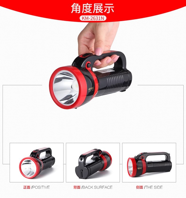 강잉 손전등 충전식 강한 빛 휴대용 가정용 야외 원격 서치 라이트 LED 슈퍼 밝은 KM-2631