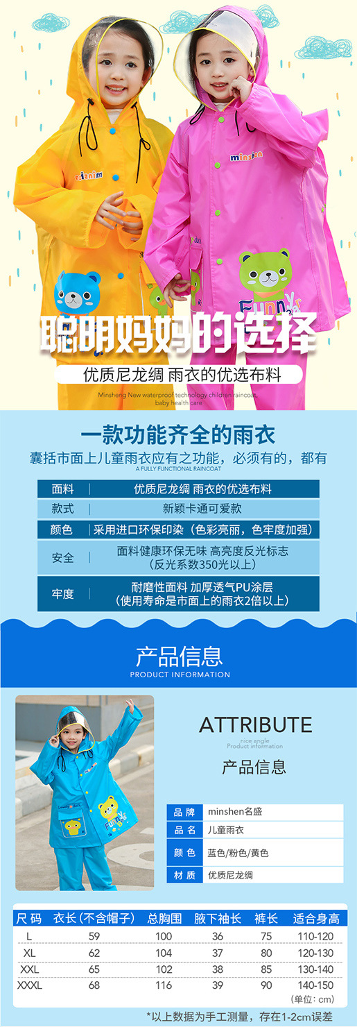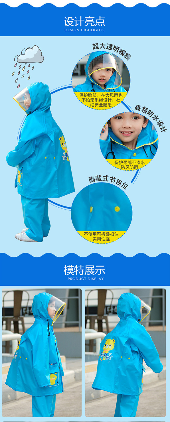 공장 직접 어린이 비옷 비 바지 세트 큰 테두리 슈퍼 방비 숨겨진 학교 가방 내마모성 방수