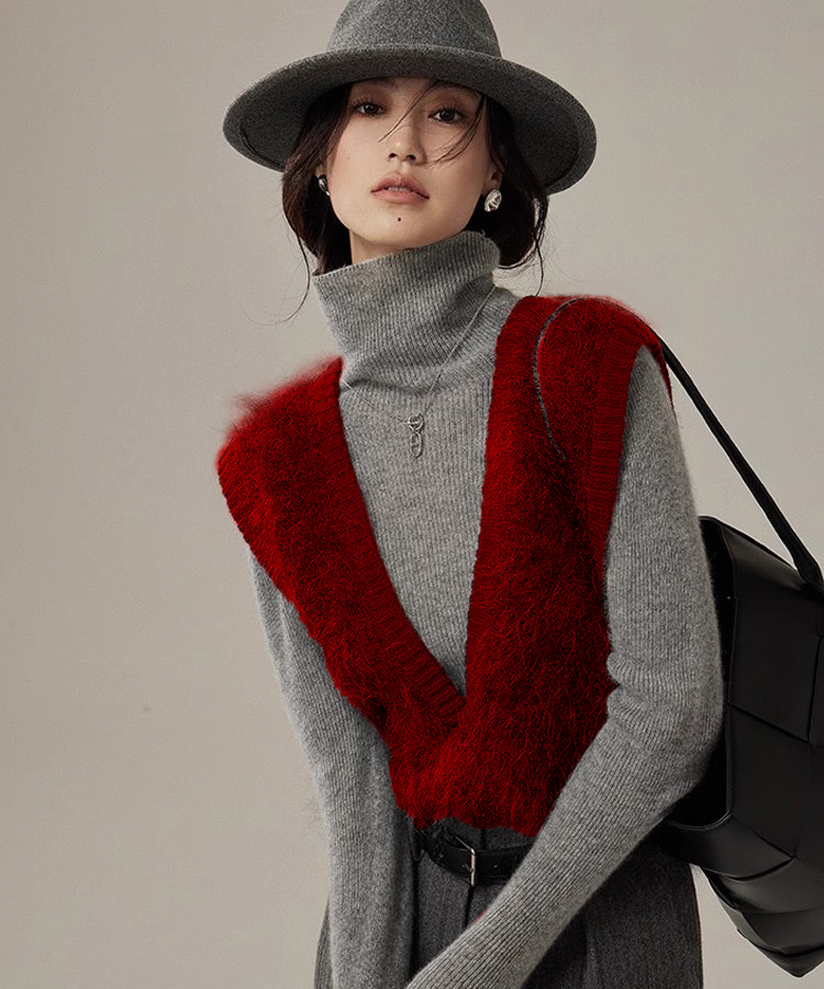 대형 V 넥 니트 스웨터 조끼 조끼의 하이 엔드 감각 여성 봄과 가을 스택 착용 유럽 상품 외국 스타일 조끼스토어 가기
