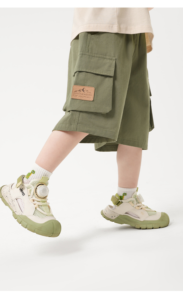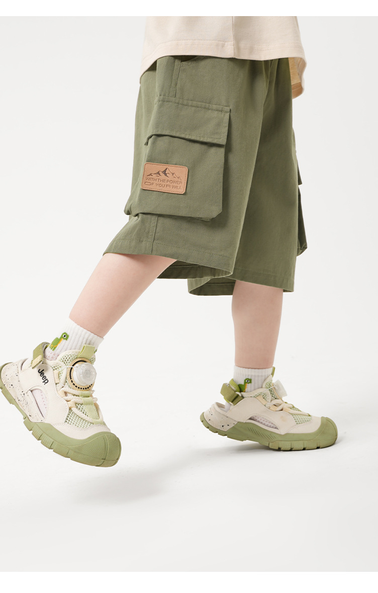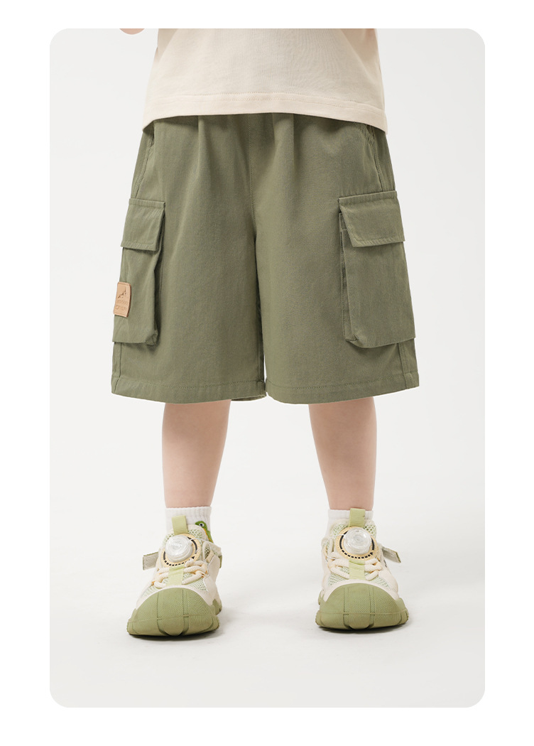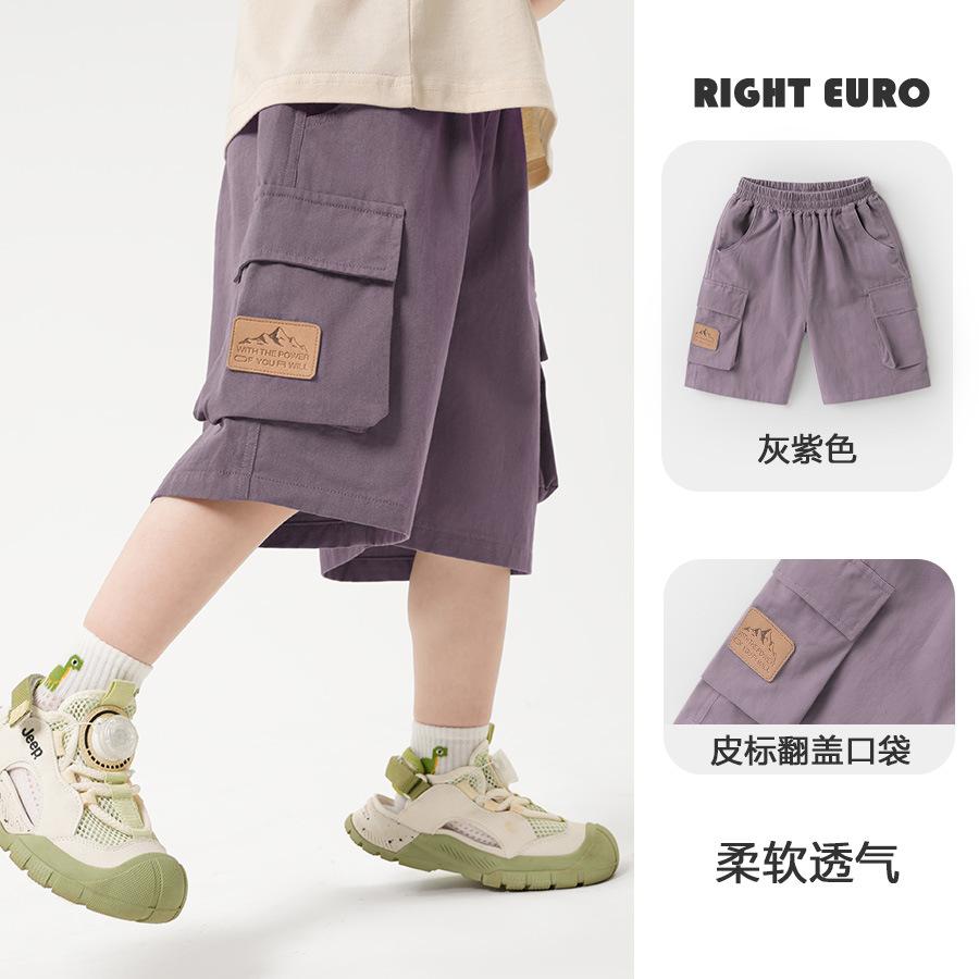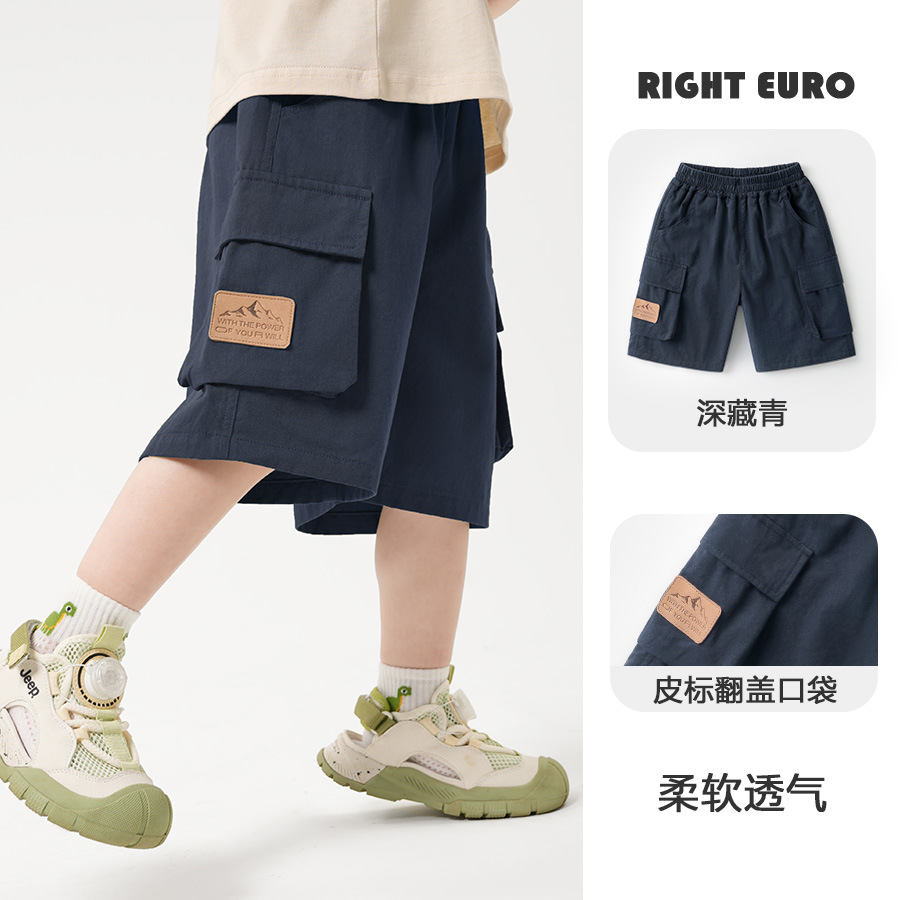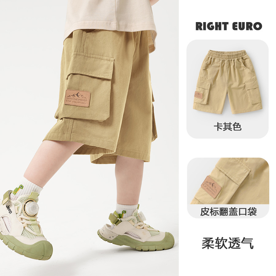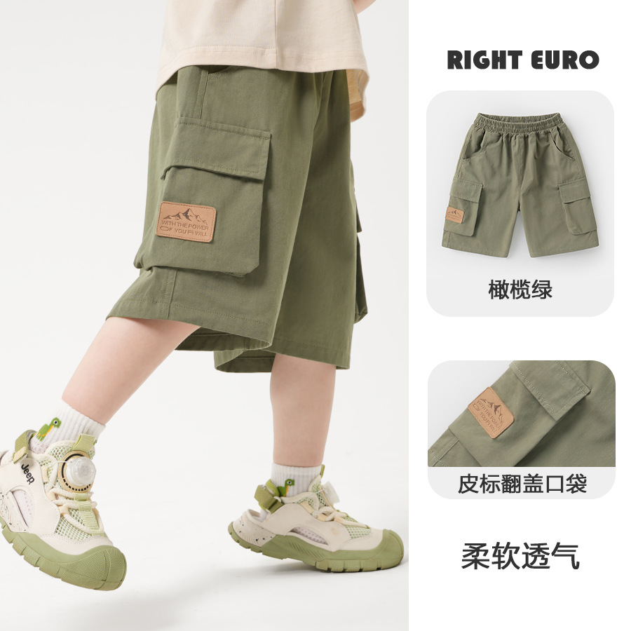 오른쪽 유럽 소년 순수 코튼 카고 반바지 중간 바지 여름 착용 2025 새로운 아동 의류 아동용 아기 바지 여름스토어 가기