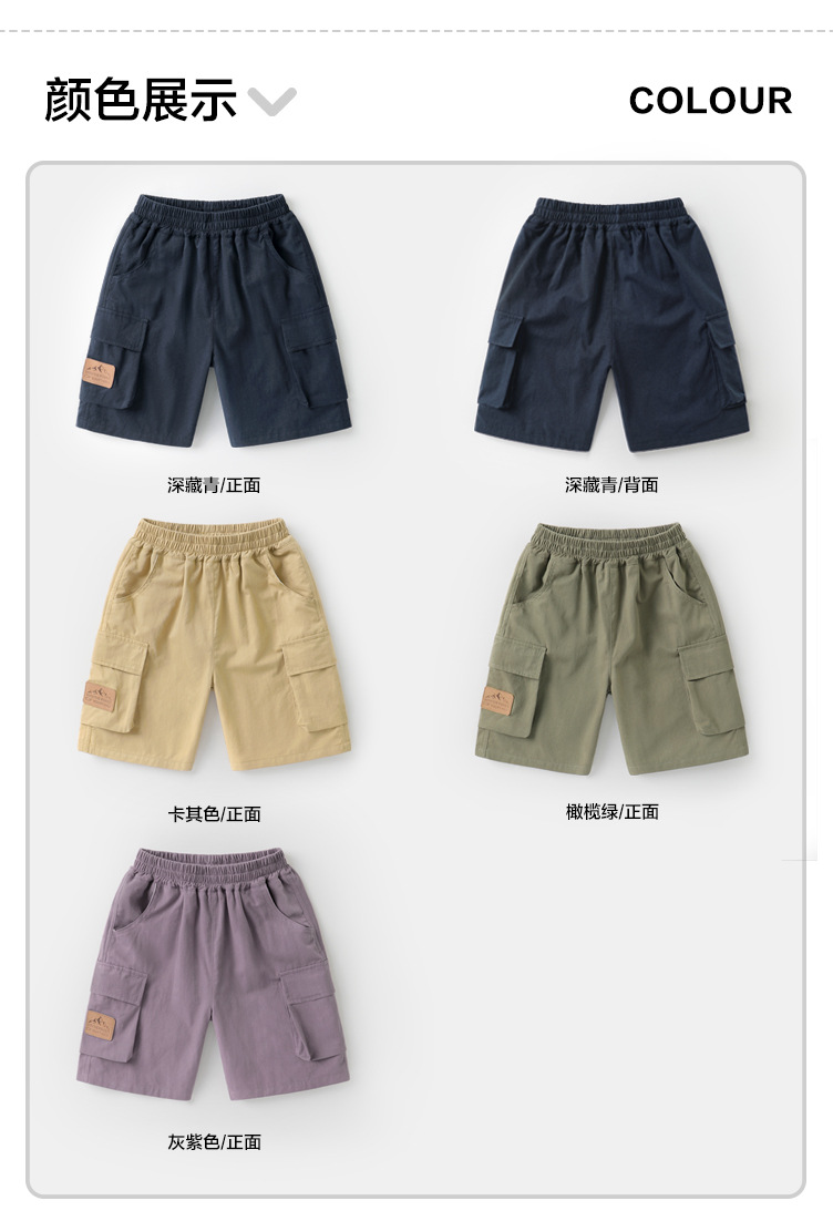 오른쪽 유럽 소년 순수 코튼 카고 반바지 중간 바지 여름 착용 2025 새로운 아동 의류 아동용 아기 바지 여름