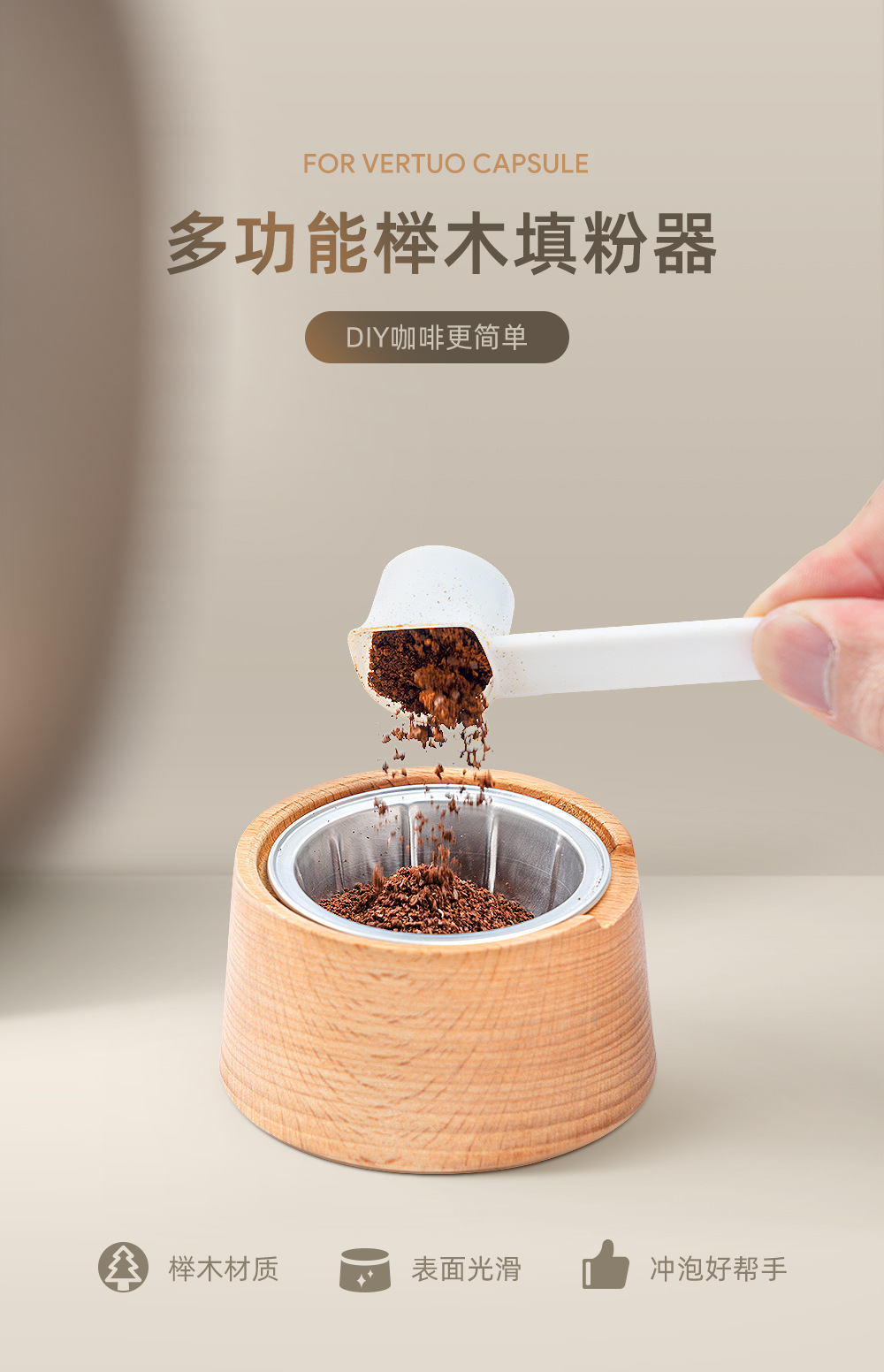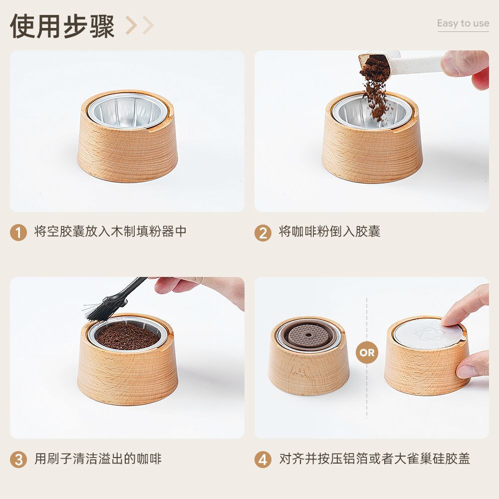 대형 네슬레 재사용 가능한 Vertuo 캡슐 컵 바디 100PC 알루미늄 호일 밀봉 된 뚜껑 너도밤 나무 가루 필러