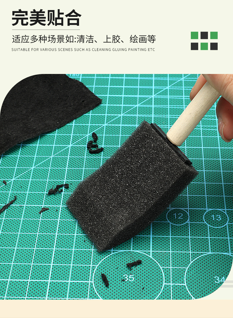 국경 간 뜨거운 판매 나무 손잡이 검은 스폰지 브러시 페인팅 도구 어린이 수제 DIY 수제 낙서 브러시