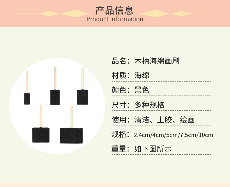 국경 간 뜨거운 판매 나무 손잡이 검은 스폰지 브러시 페인팅 도구 어린이 수제 DIY 수제 낙서 브러시스토어 가기