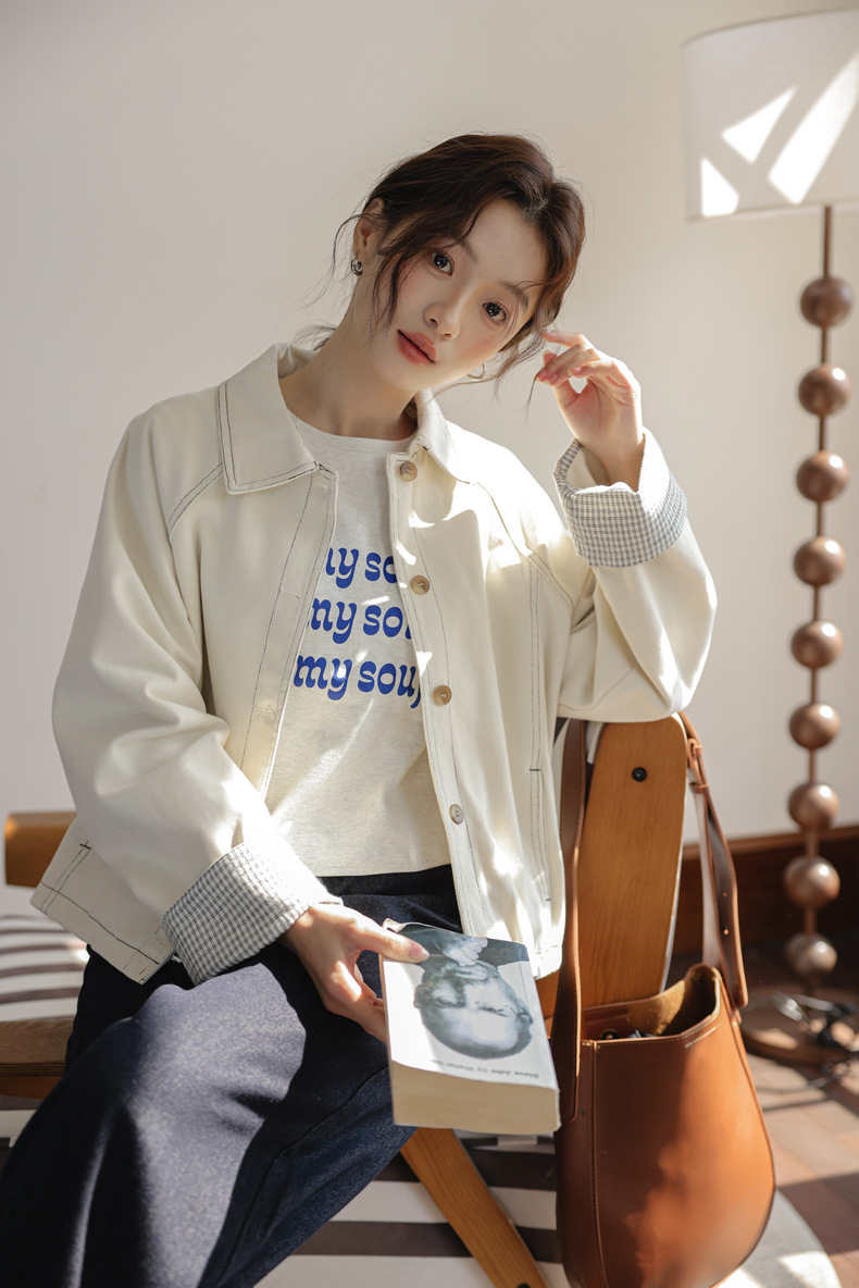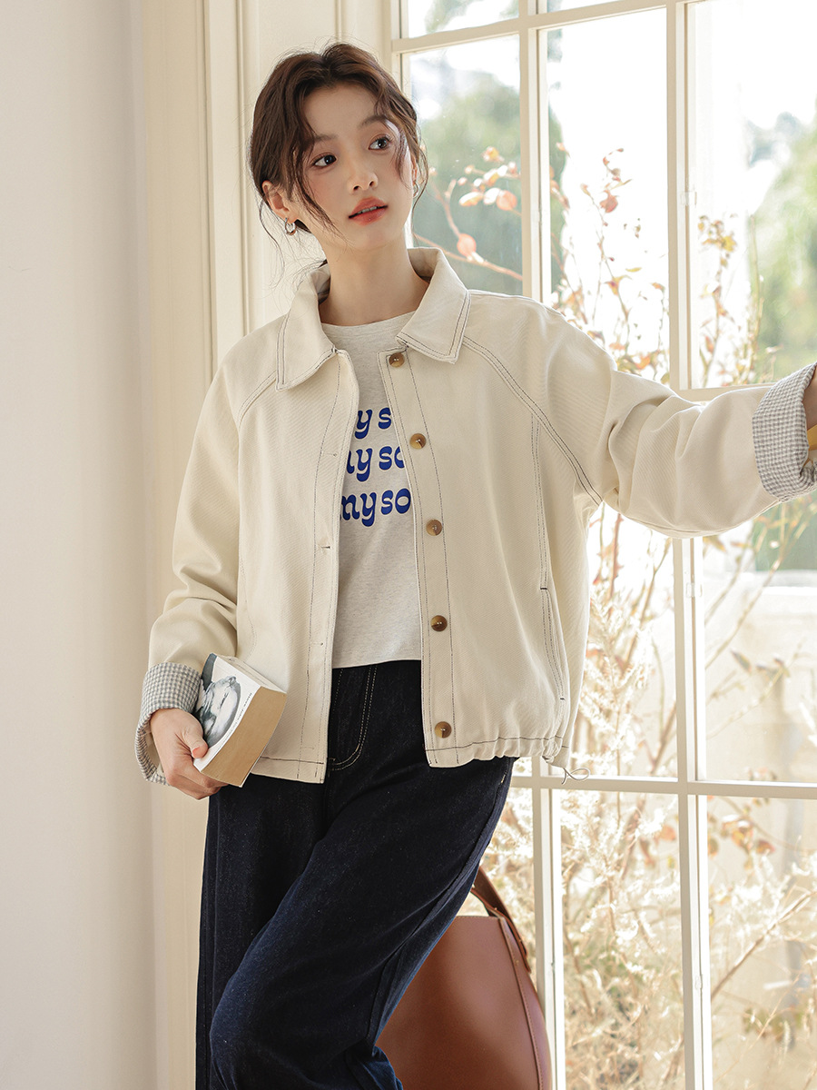 2025 새로운 가을 한국 스타일 루즈한 디자인 탑스티치 다용도 워싱 드로스트링 데님 숏 코트 여성용