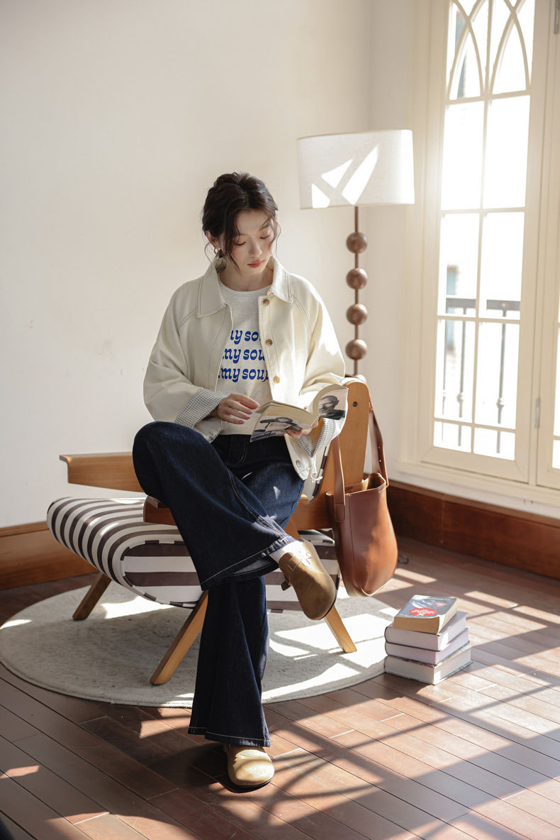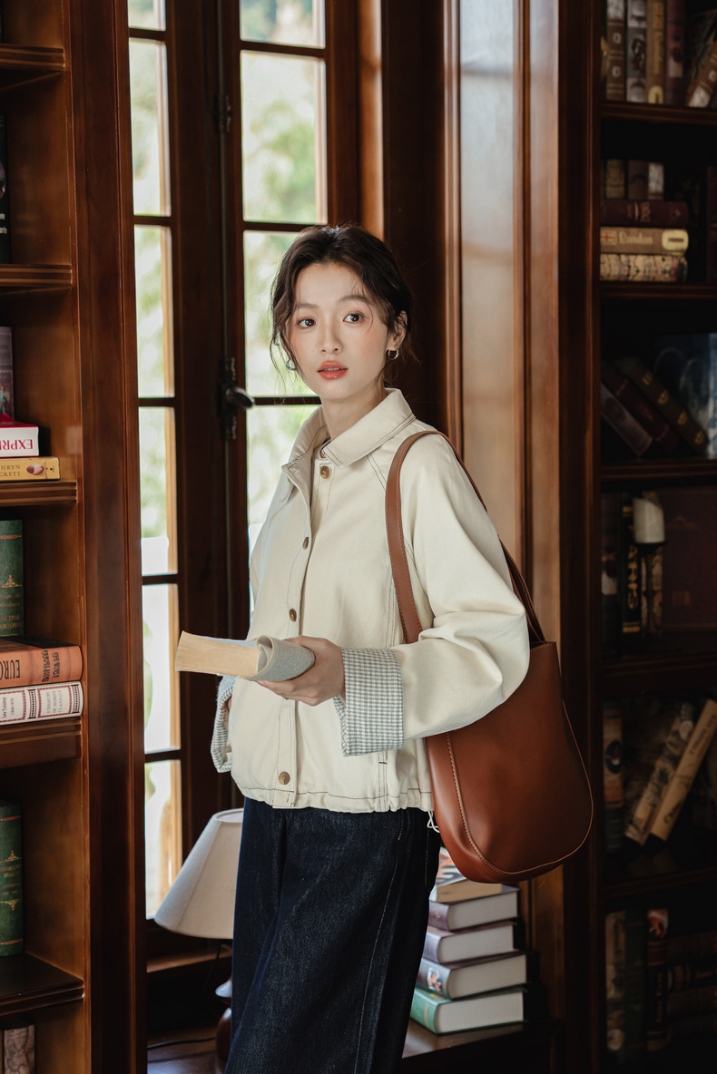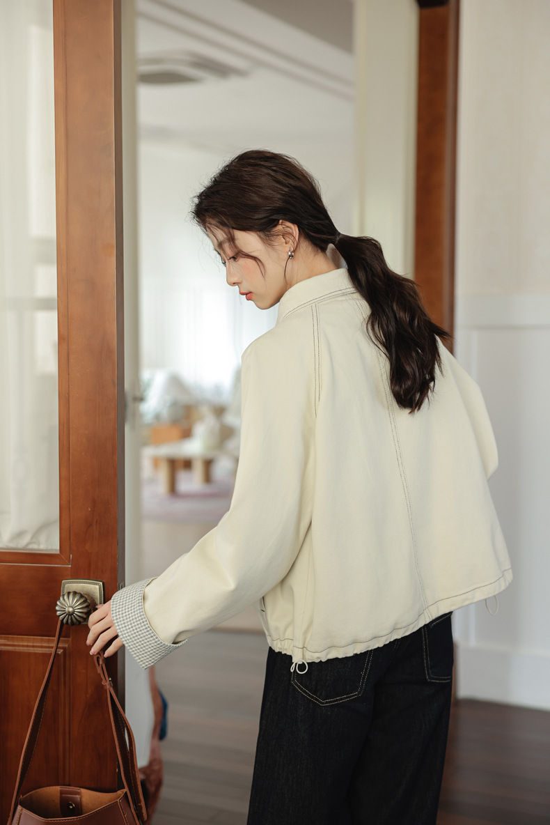 2025 새로운 가을 한국 스타일 루즈한 디자인 탑스티치 다용도 워싱 드로스트링 데님 숏 코트 여성용스토어 가기