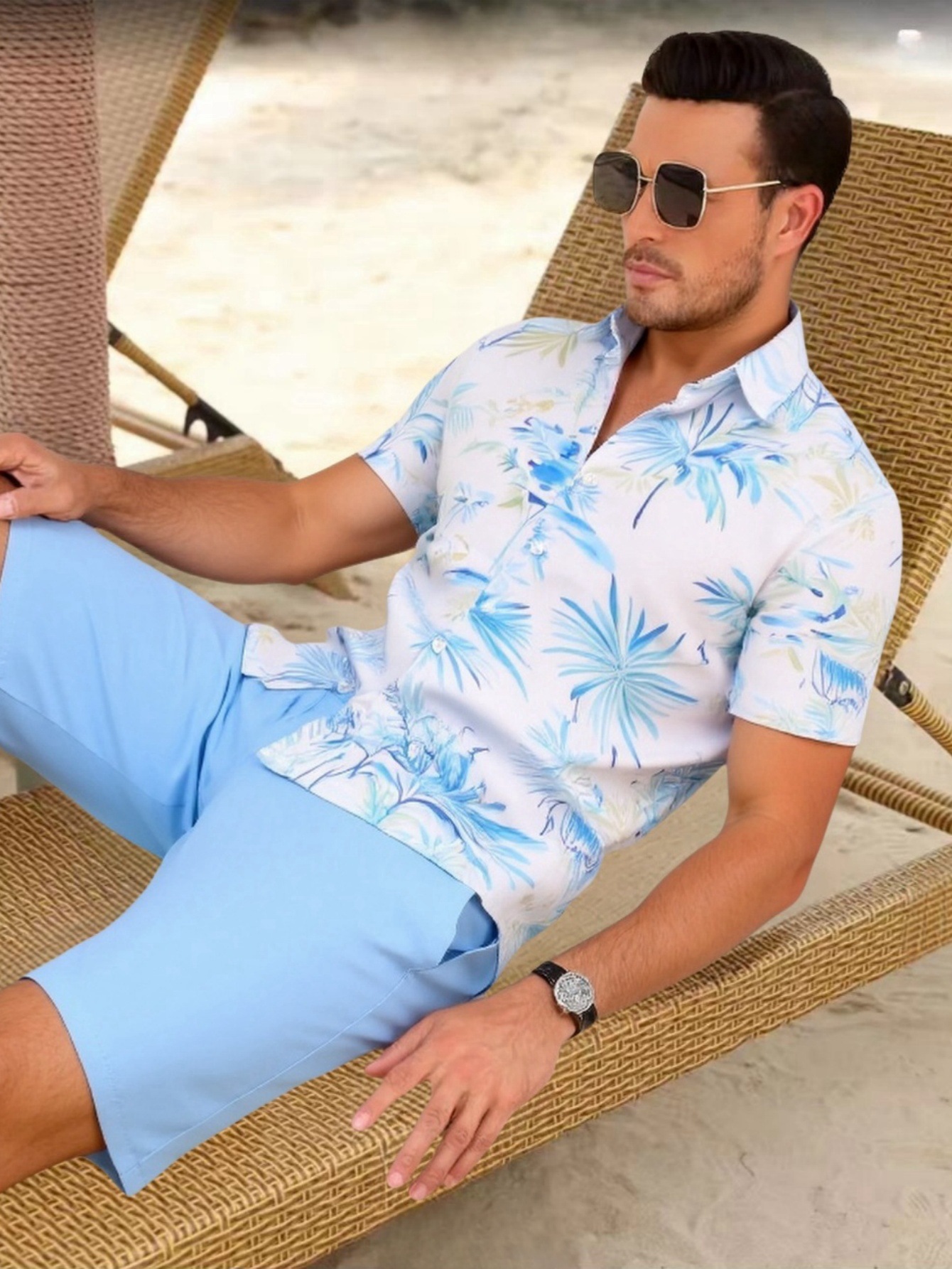남자의 불규칙한 디지털 인쇄 짧은 소매 세트 남성스토어 가기