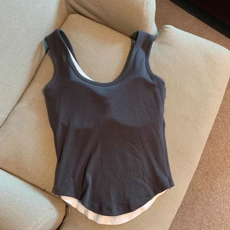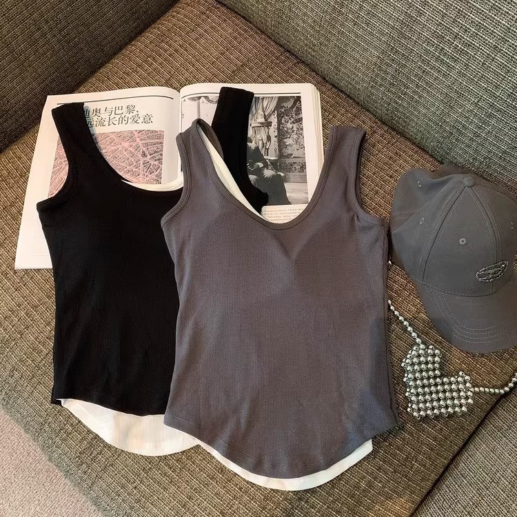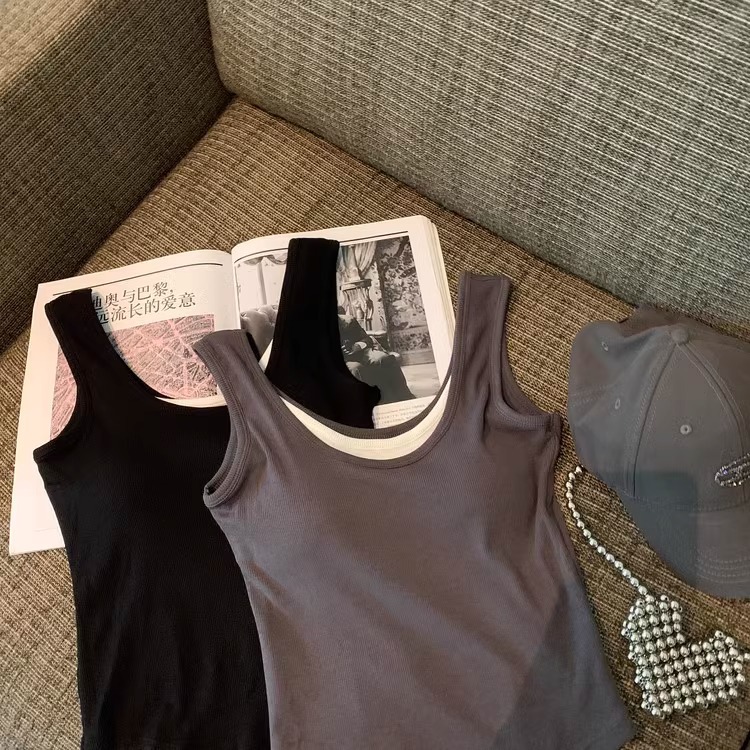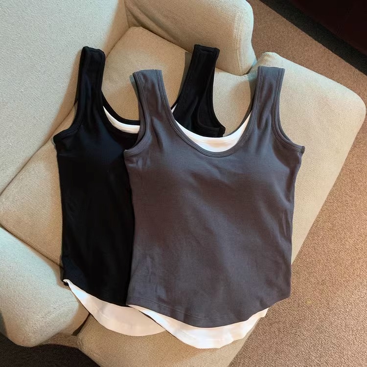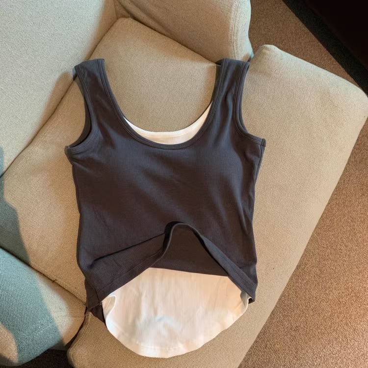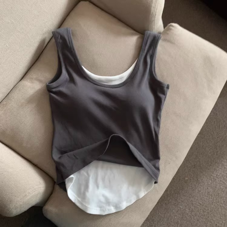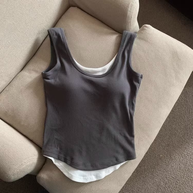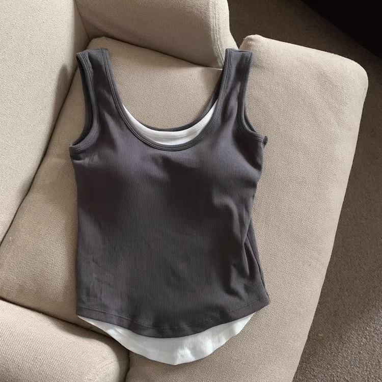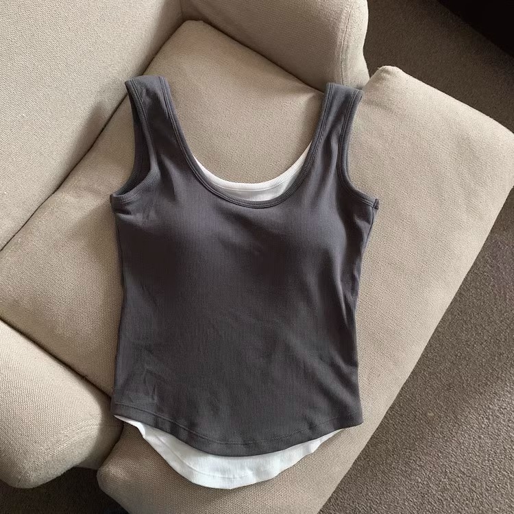 회색 가짜 투피스 I 자형 조끼 여성 여름 아우터웨어 커버 파라 가슴 독특한 세련된 작은 슬링 브래지어 원피스 탑 패션스토어 가기
