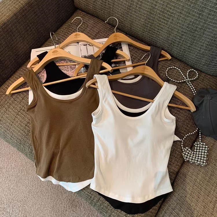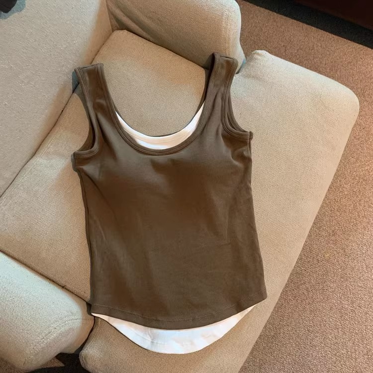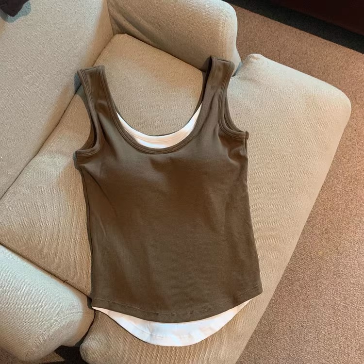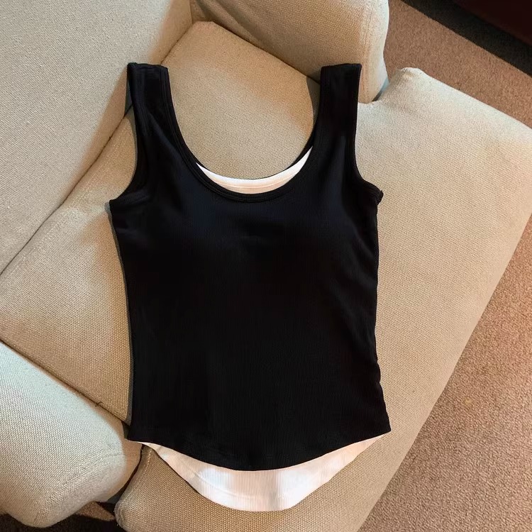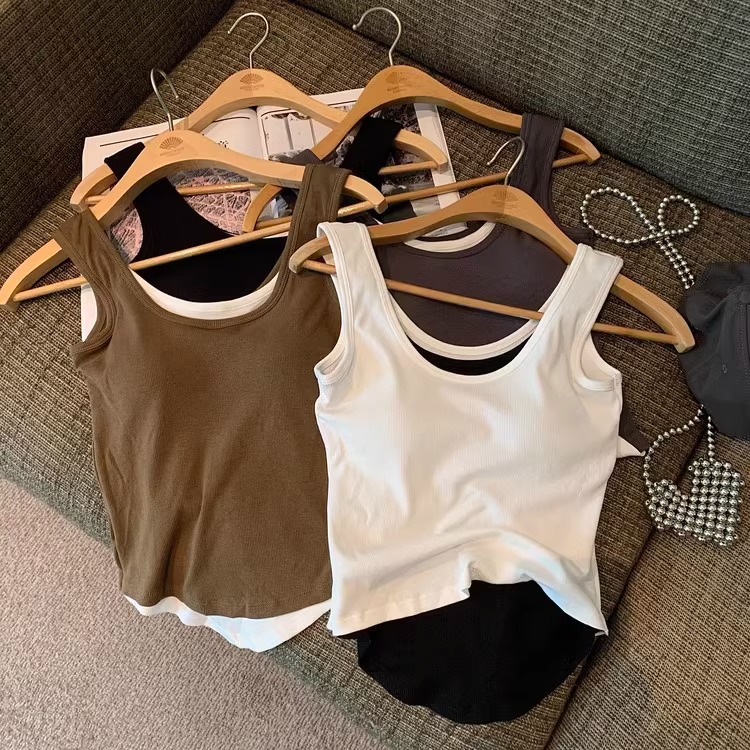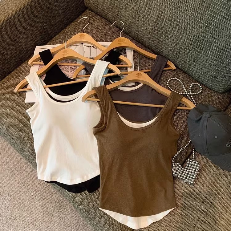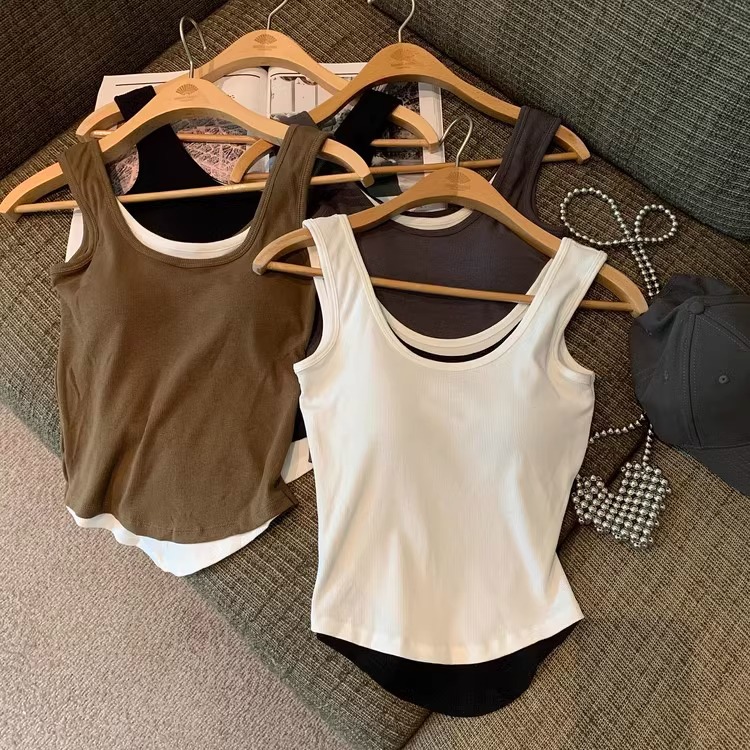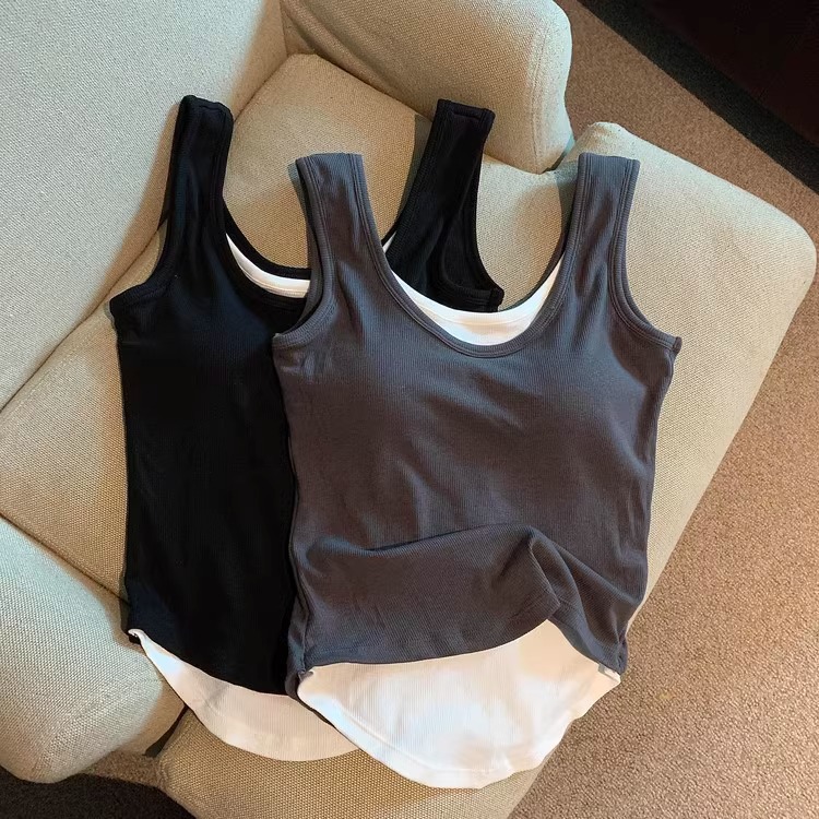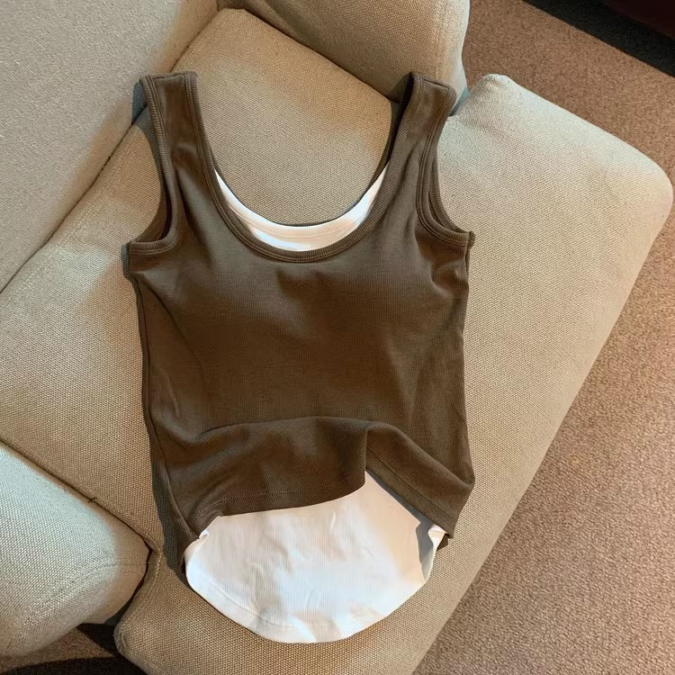 회색 가짜 투피스 I 자형 조끼 여성 여름 아우터웨어 커버 파라 가슴 독특한 세련된 작은 슬링 브래지어 원피스 탑 패션스토어 가기