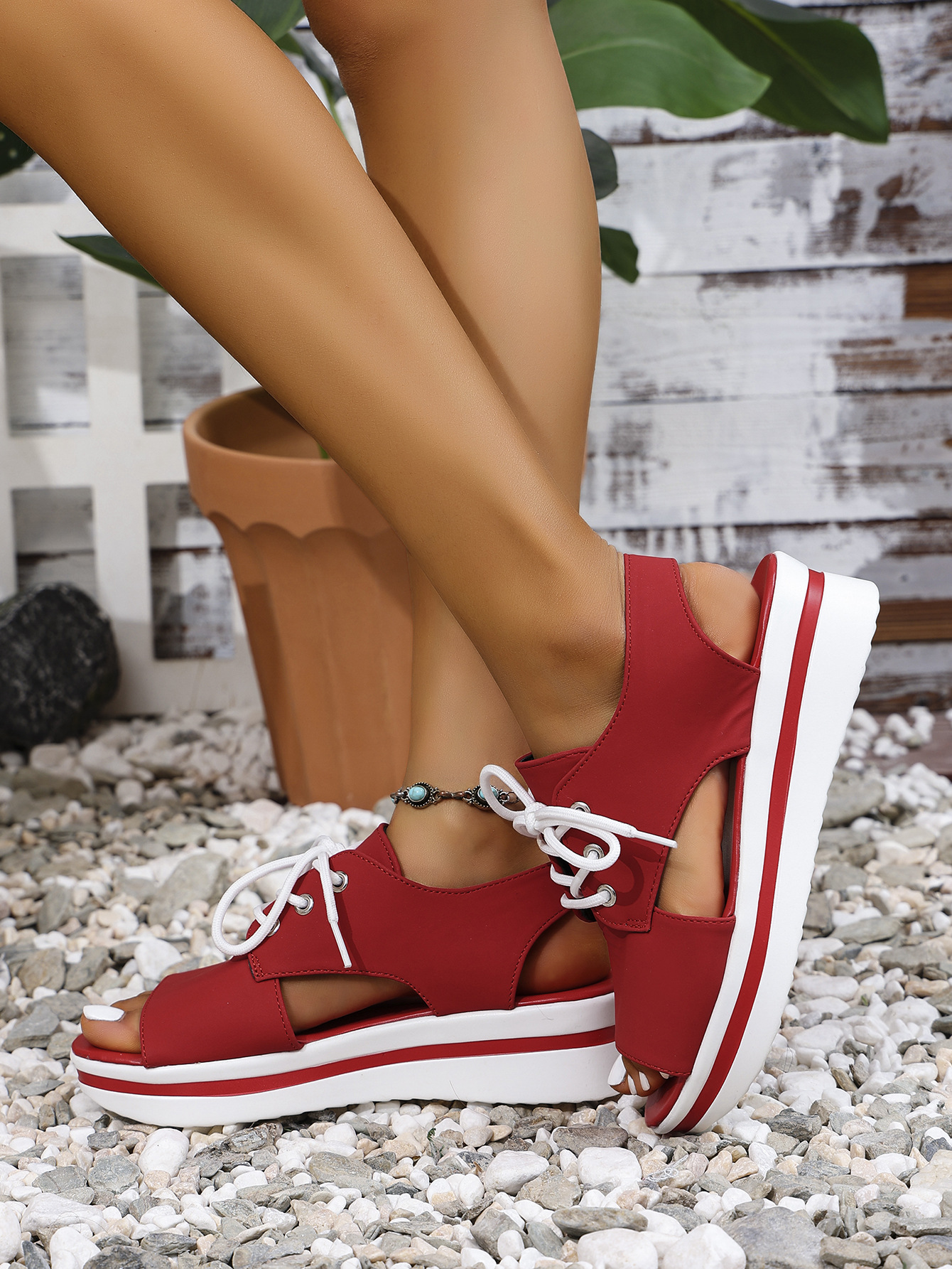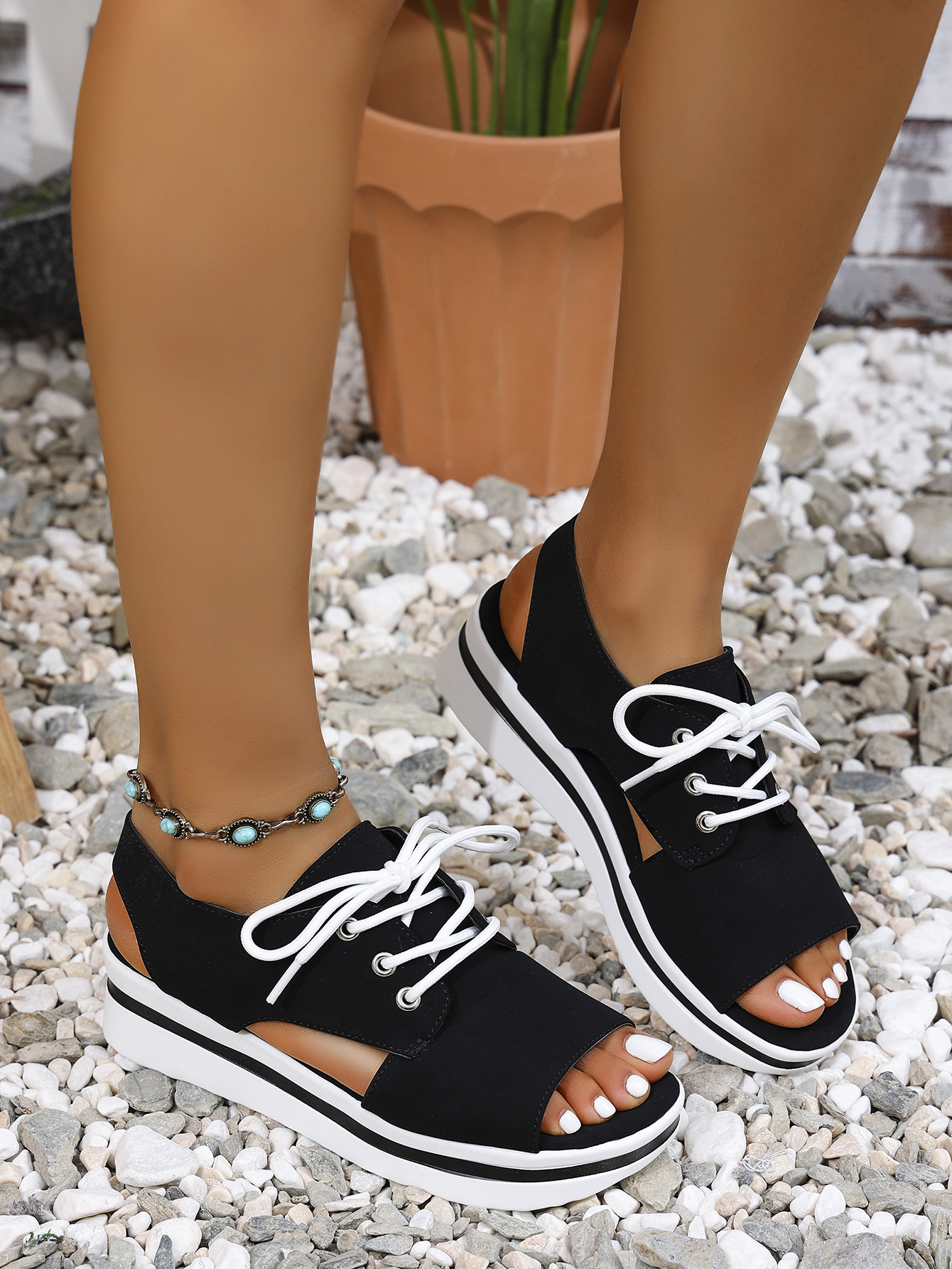 2025 봄 신상 대외 무역 크로스보더 대형 사이즈 두꺼운 밑창 피쉬 입 레이스 업 캐주얼 로마 샌들 유럽과 미국의 크로스보더