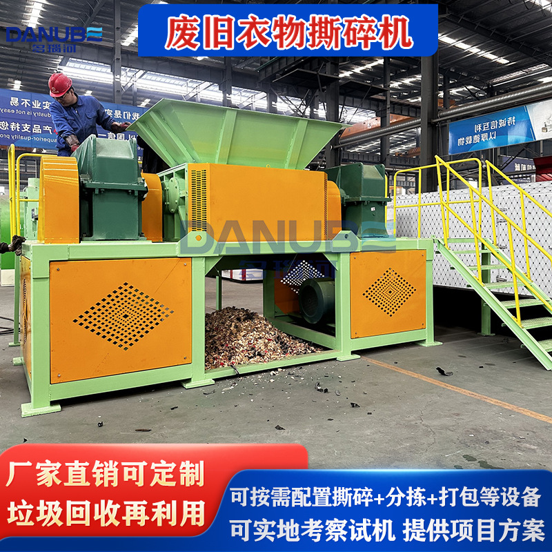 废旧衣物编织袋撕碎打包机设备 衣服非织造材料垃圾回收处理设备是河南多瑙河科技有限公司研发的设备,根据不同的固废领域,如一般工业固废、废旧家具家电、废旧轮胎、废旧布料、纸厂废料、农林废弃物、生活垃圾等,提供针对性的固废解决方案。