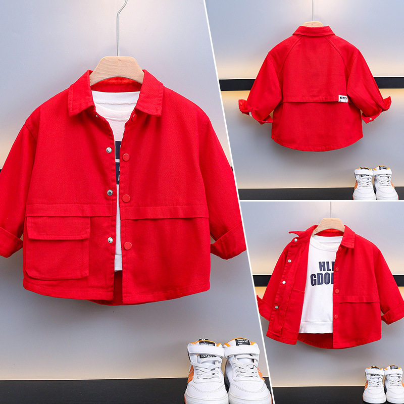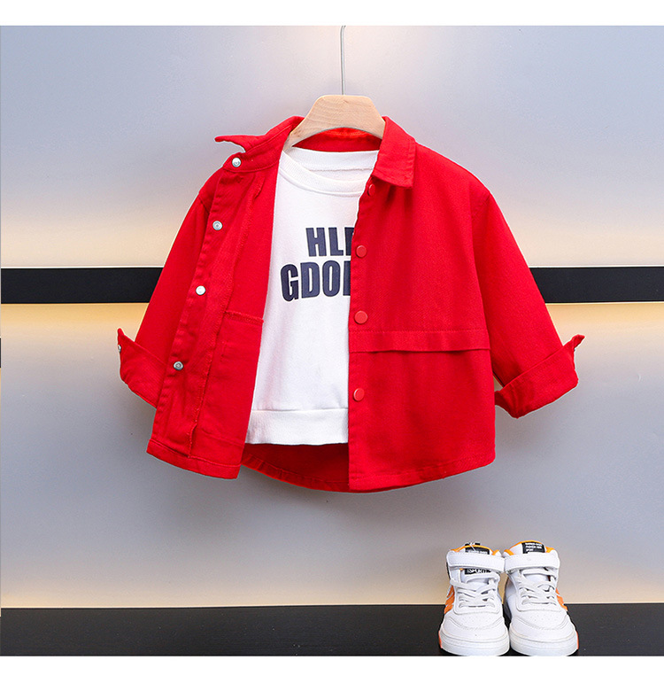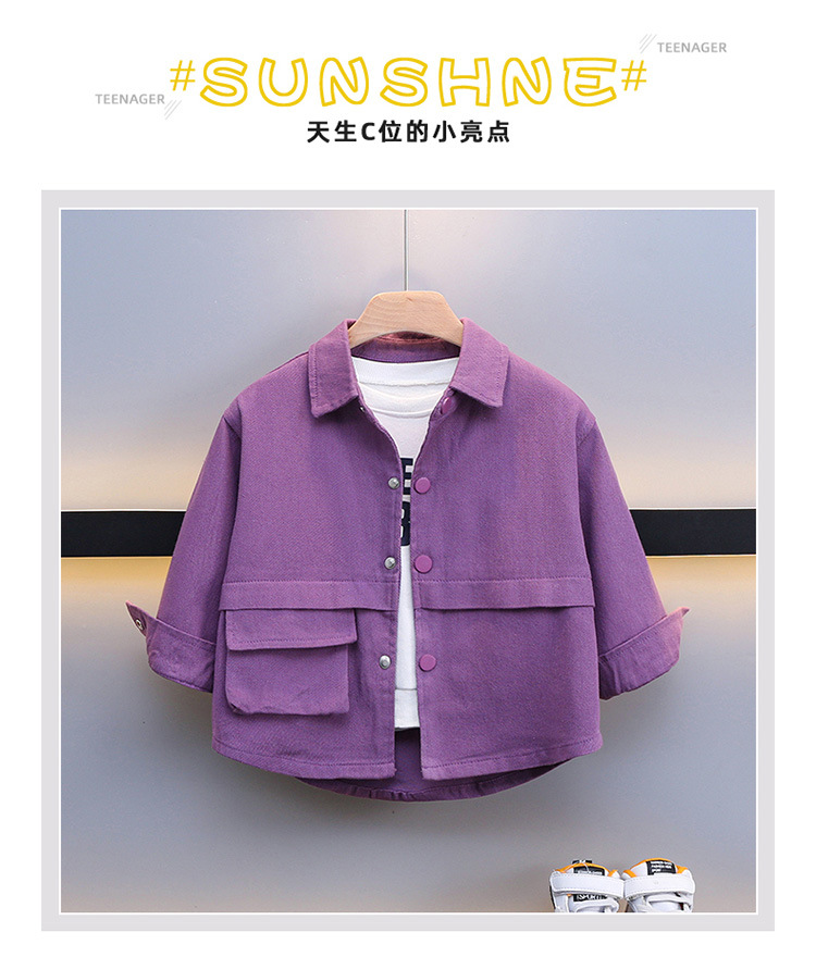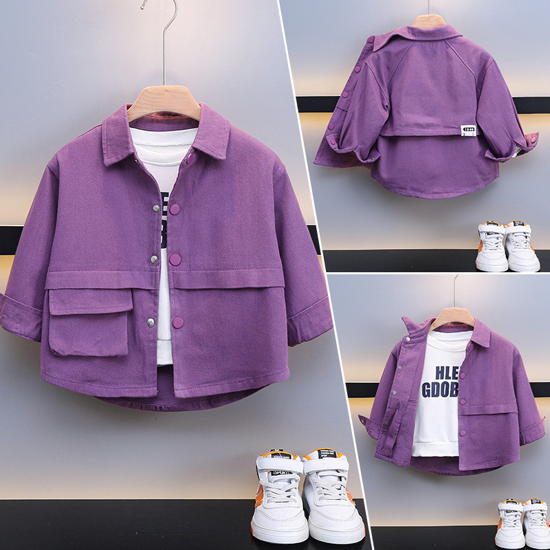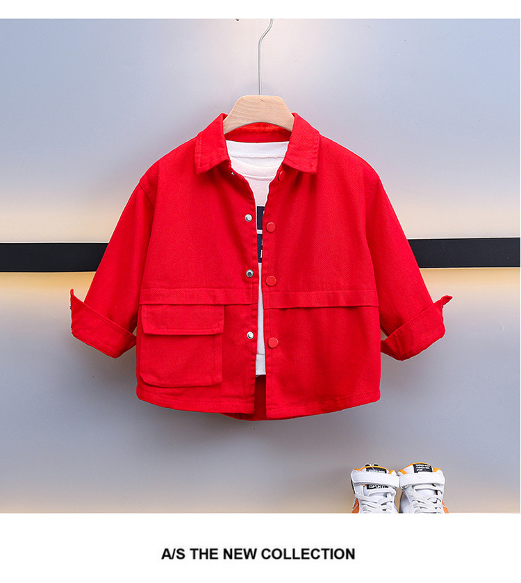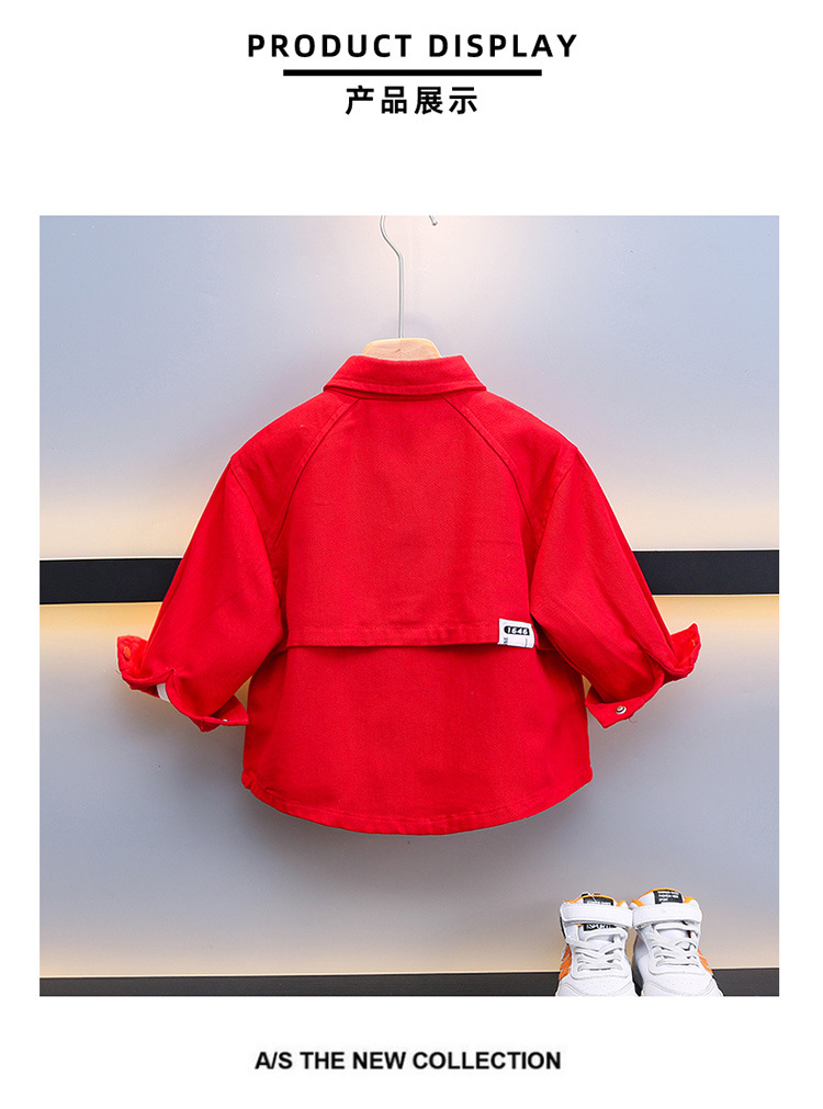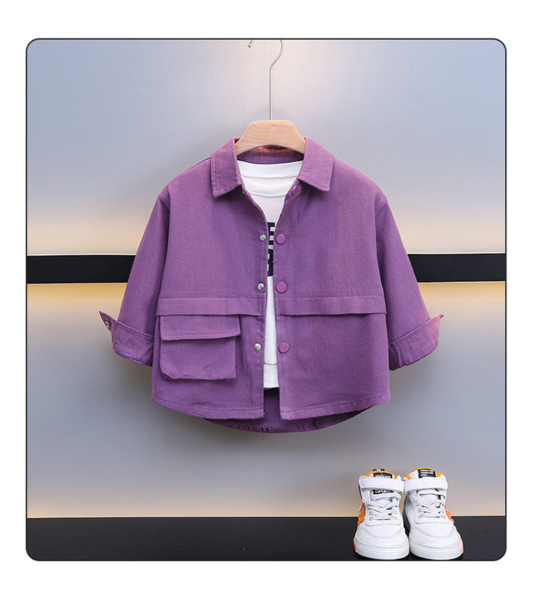 어린이 소년의 봄 코트 2025 새로운 도착 봄과 가을 잘 생긴 소년의 최고 튀김 거리 아기 봄 탑