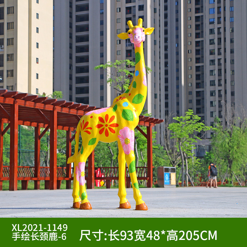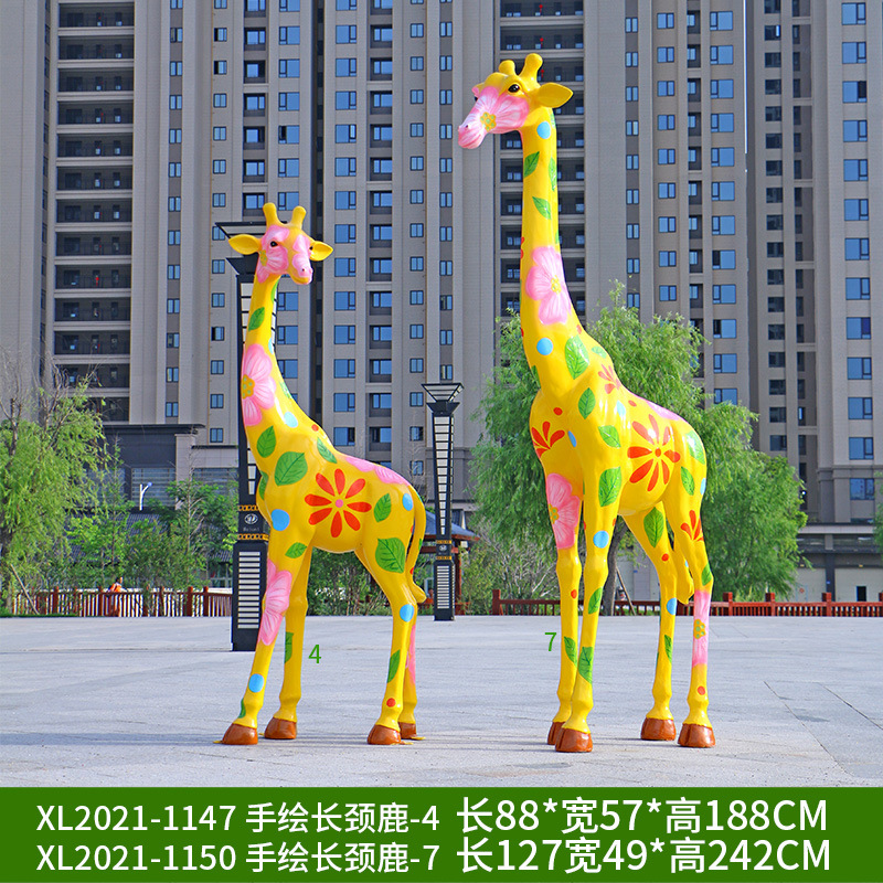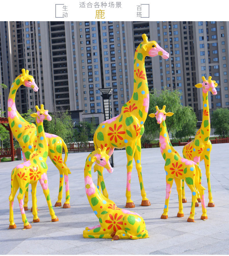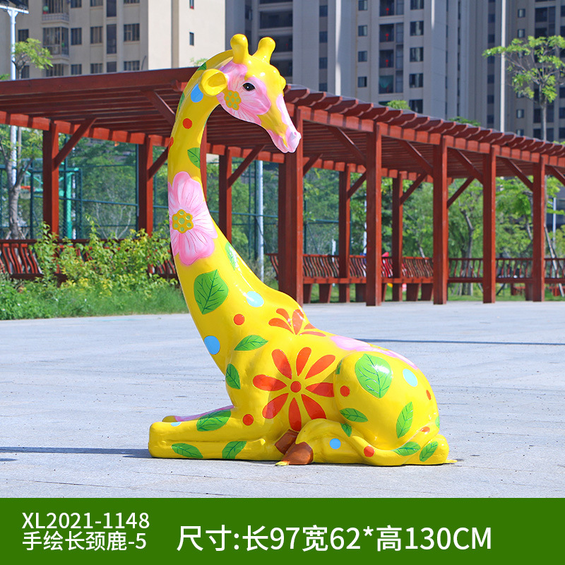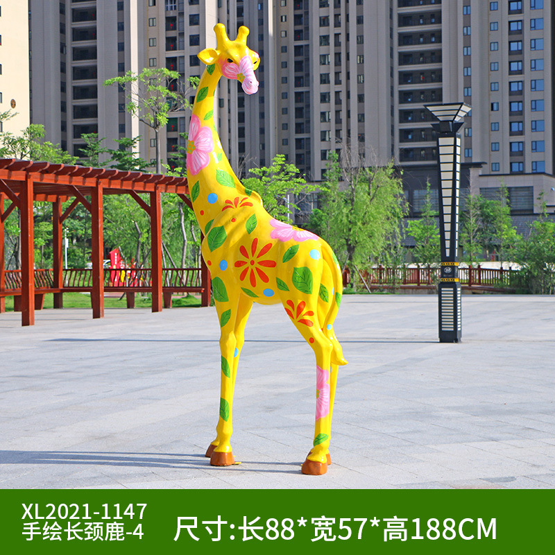 만화 기린 모델 대형 장식품 유리 섬유 강화 플라스틱 시뮬레이션 동물 조각 야외 안뜰 정원 조경 판매 부서스토어 가기