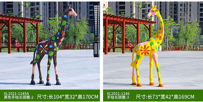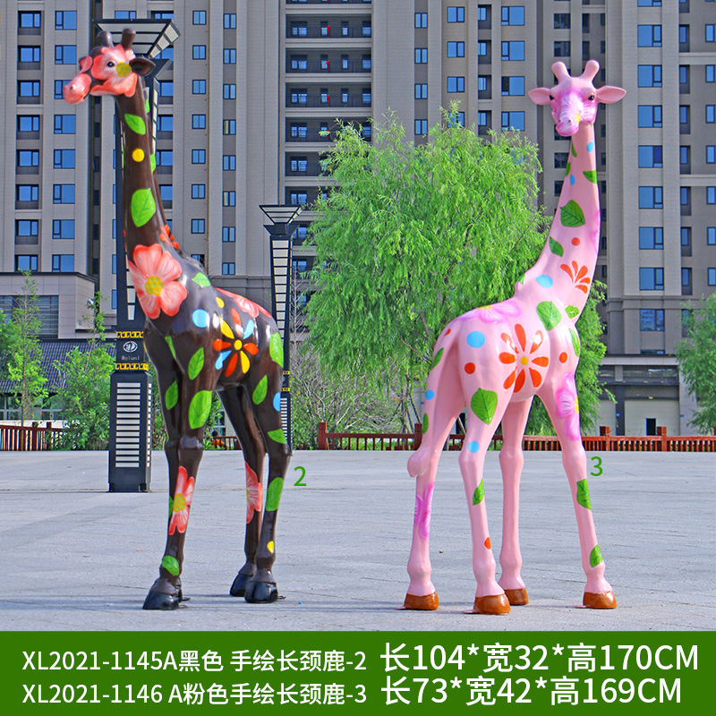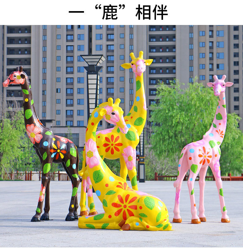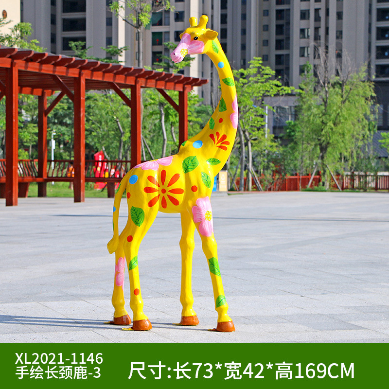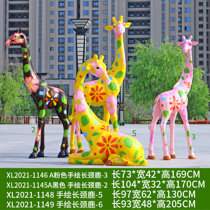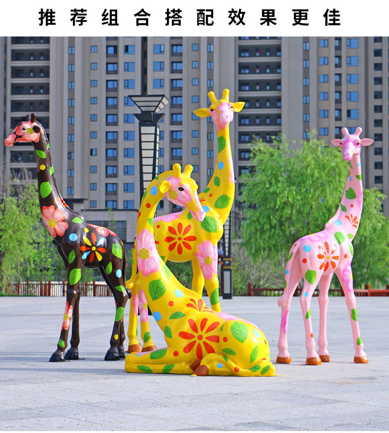 만화 기린 모델 대형 장식품 유리 섬유 강화 플라스틱 시뮬레이션 동물 조각 야외 안뜰 정원 조경 판매 부서스토어 가기