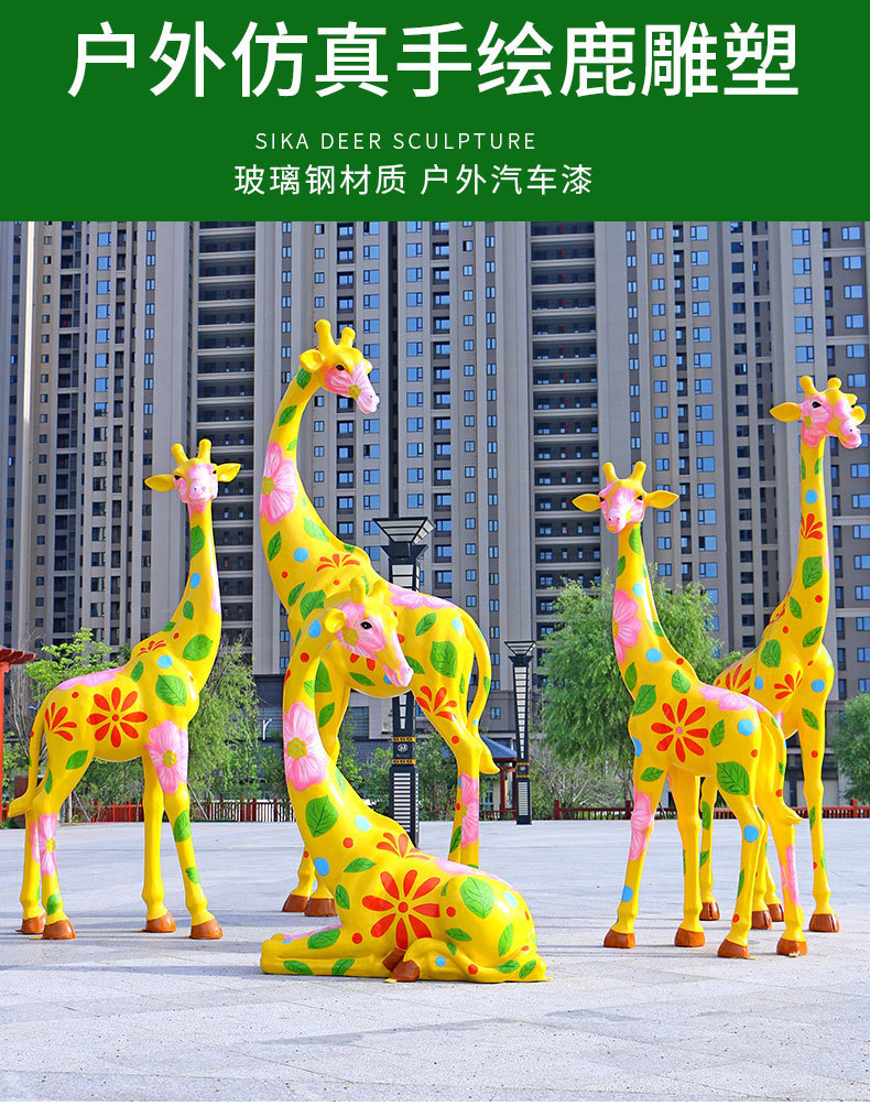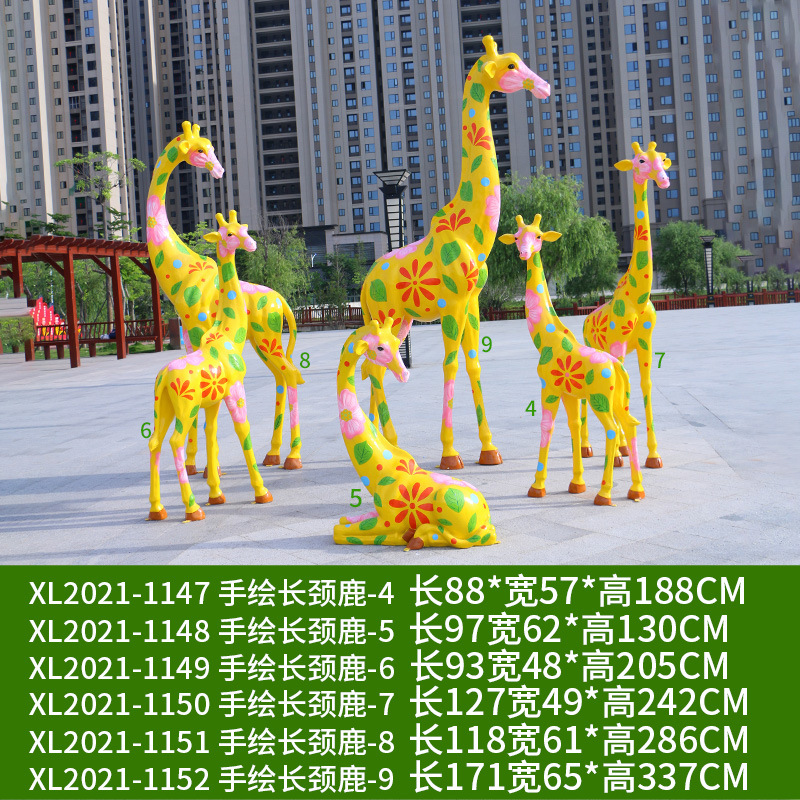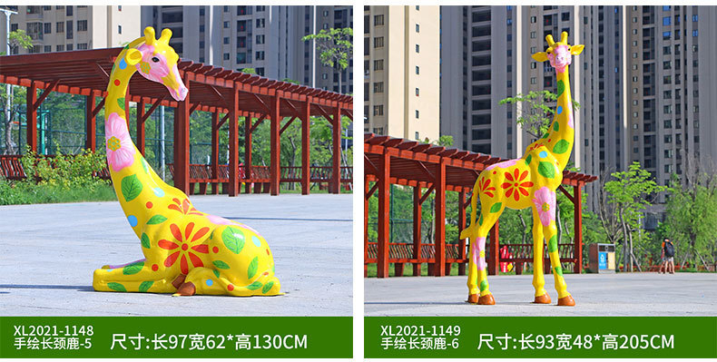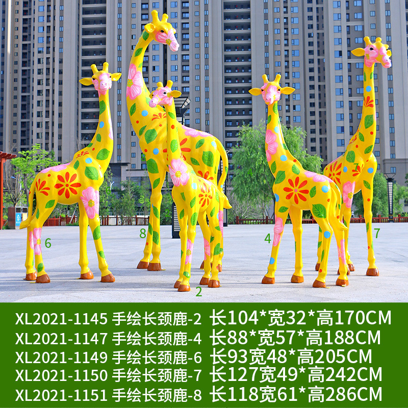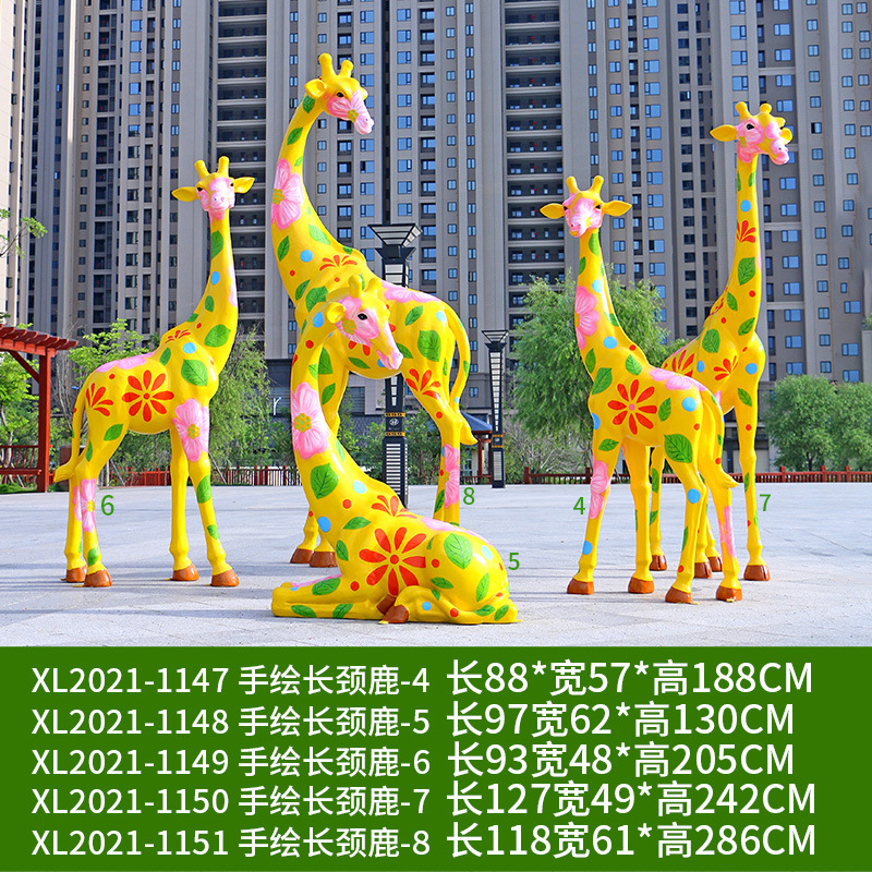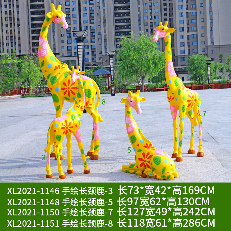 만화 기린 모델 대형 장식품 유리 섬유 강화 플라스틱 시뮬레이션 동물 조각 야외 안뜰 정원 조경 판매 부서