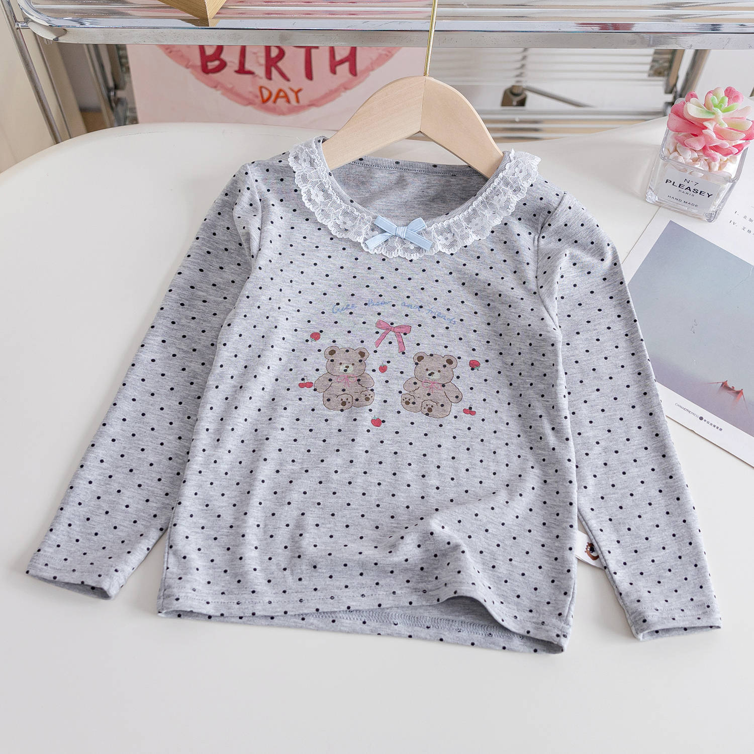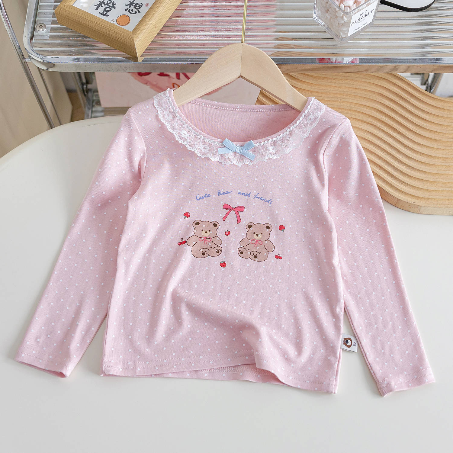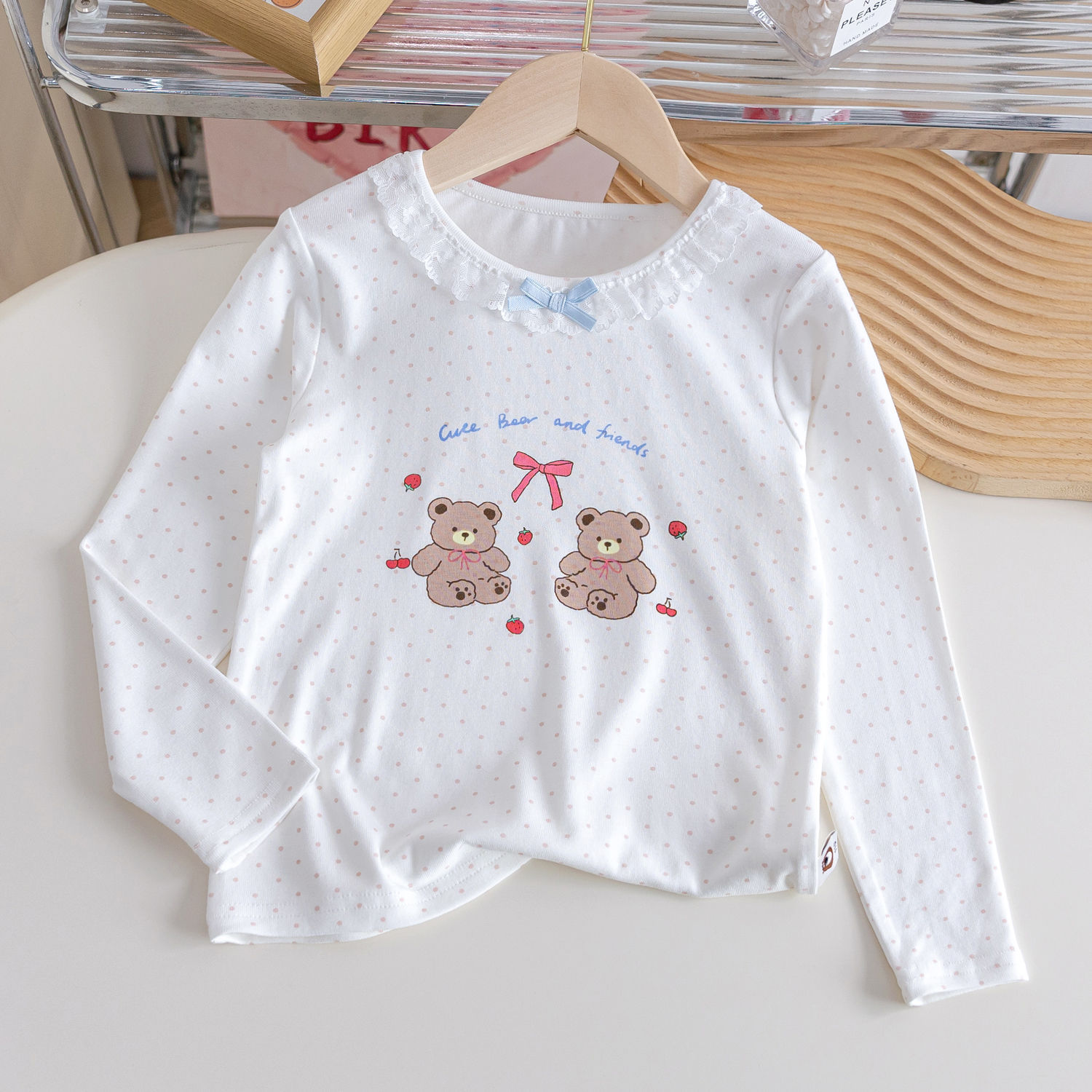 소녀 봄 티셔츠 2025 새로운 도착 서양 스타일 봄과 가을 유행 올매치 어린 소녀 귀여운 곰 탑