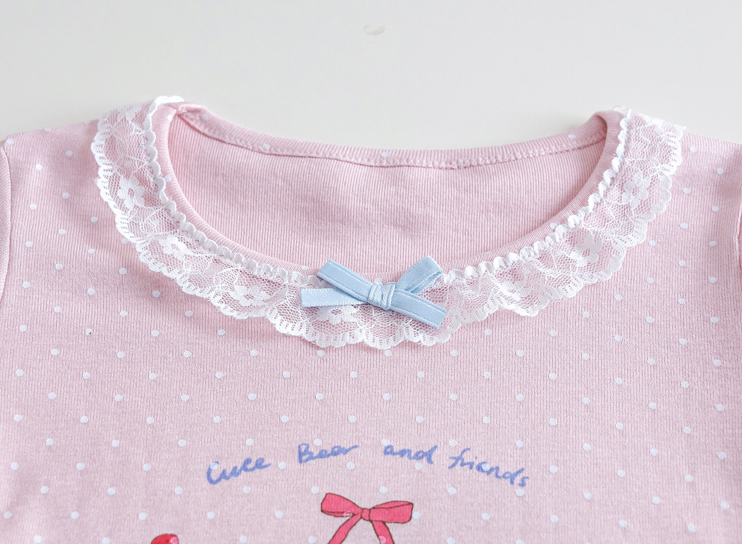 소녀 봄 티셔츠 2025 새로운 도착 서양 스타일 봄과 가을 유행 올매치 어린 소녀 귀여운 곰 탑스토어 가기