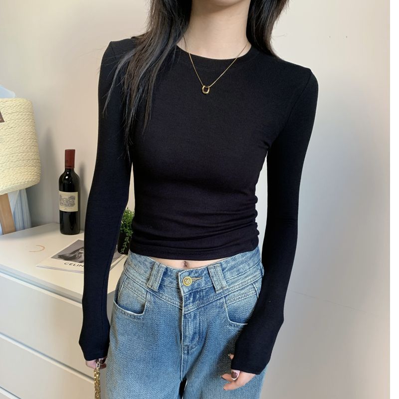 정사이즈 아메리칸 숄더 셔츠 긴팔 티셔츠 여성용 2025 년 봄과 가을 내베이스 슬림핏 올매치 탑스토어 가기