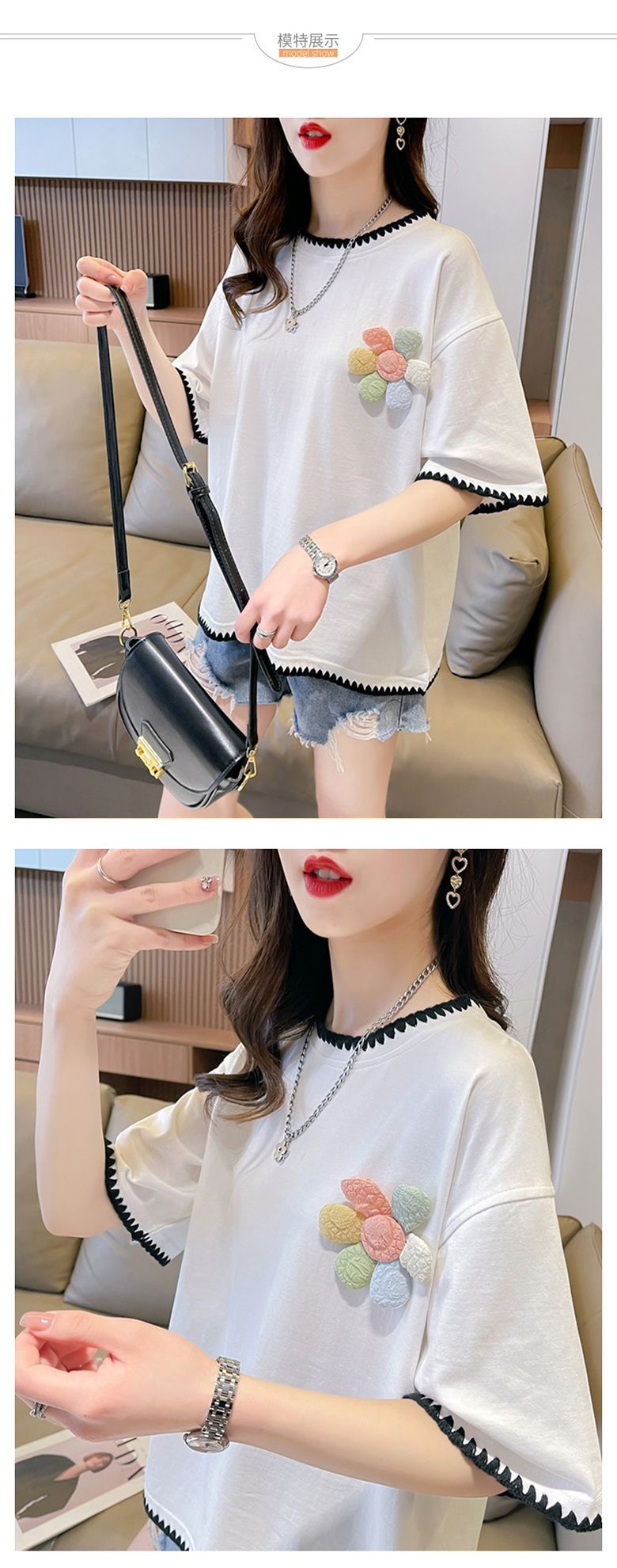 프랑스 스타일 샤넬 스타일 반소매 티셔츠 여성 여름 느슨한 한국 스타일 서양식 반소매 셔츠스토어 가기